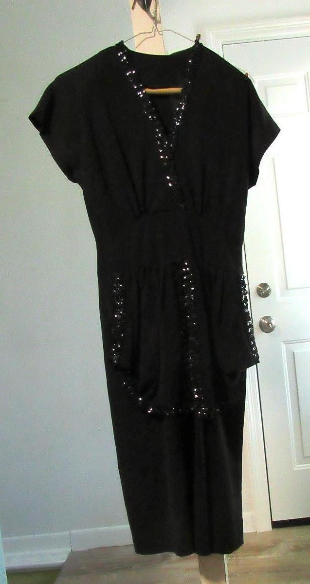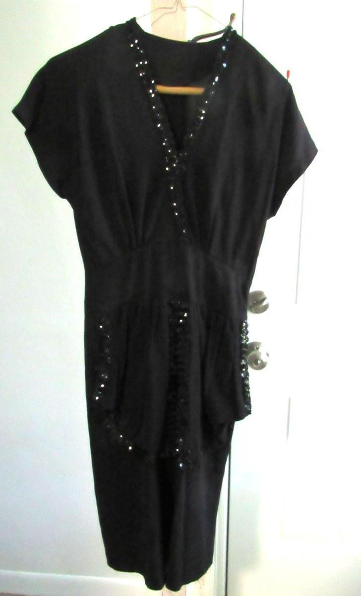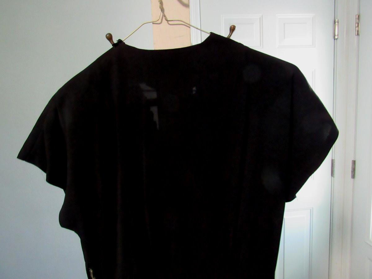 Very hard to photograph this. It seems so hard to get good images of black clothes! Anyway, it is in nice shape, good zipper, the only thing I noticed is the hem needs to be done -it's not hammed. It is a small size, but again, no labels, I have no idea what size or who made it. Please email with any questions. Shipping is available on this lot with additional shipping and handling fees. Please see our terms for details.
