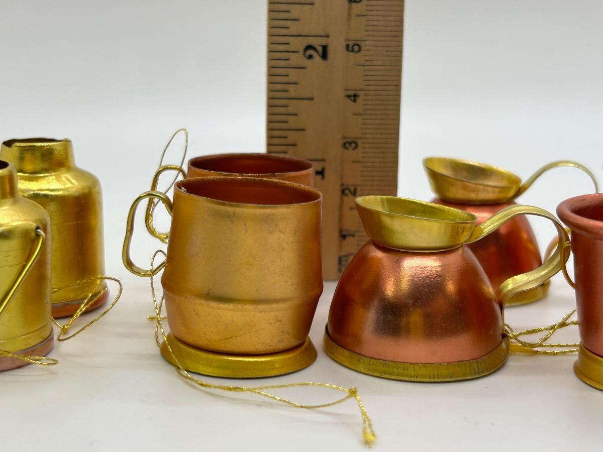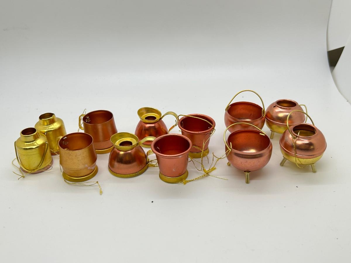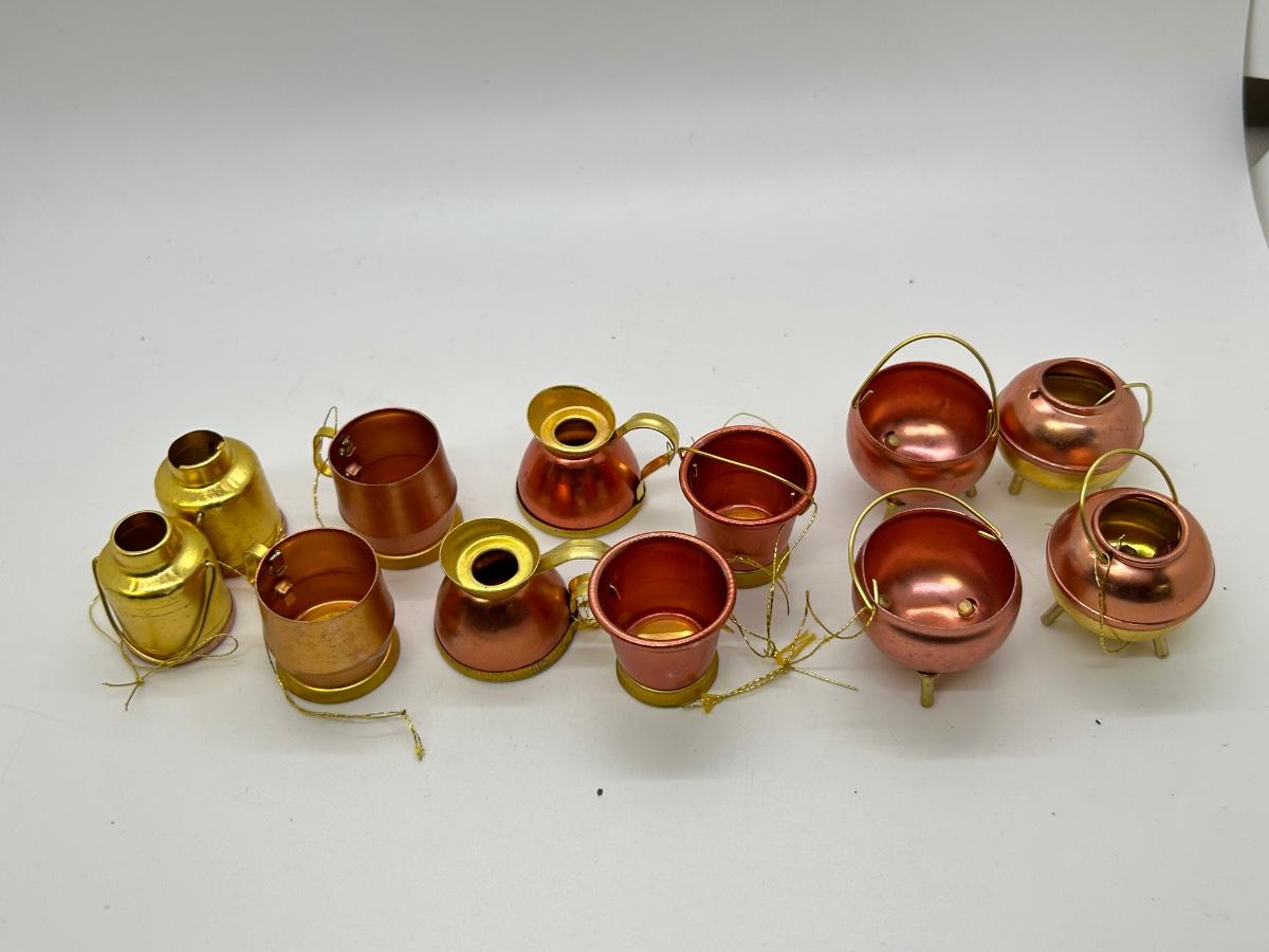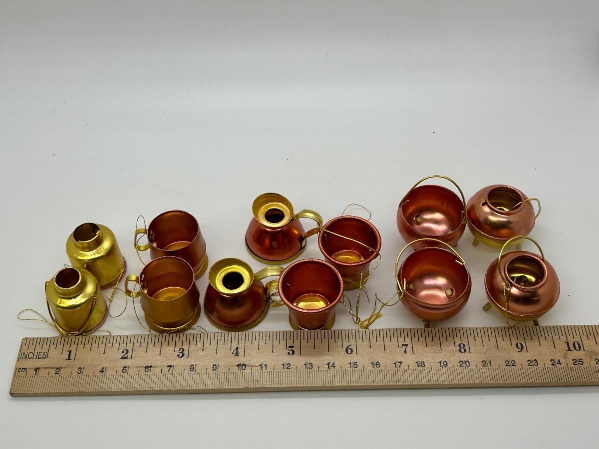 Miniature Copper and Brass Buckets Cauldrons Pots Ornaments Figurines for Display or Crafts. Lot of 12, two of each miniature. About 1" size.