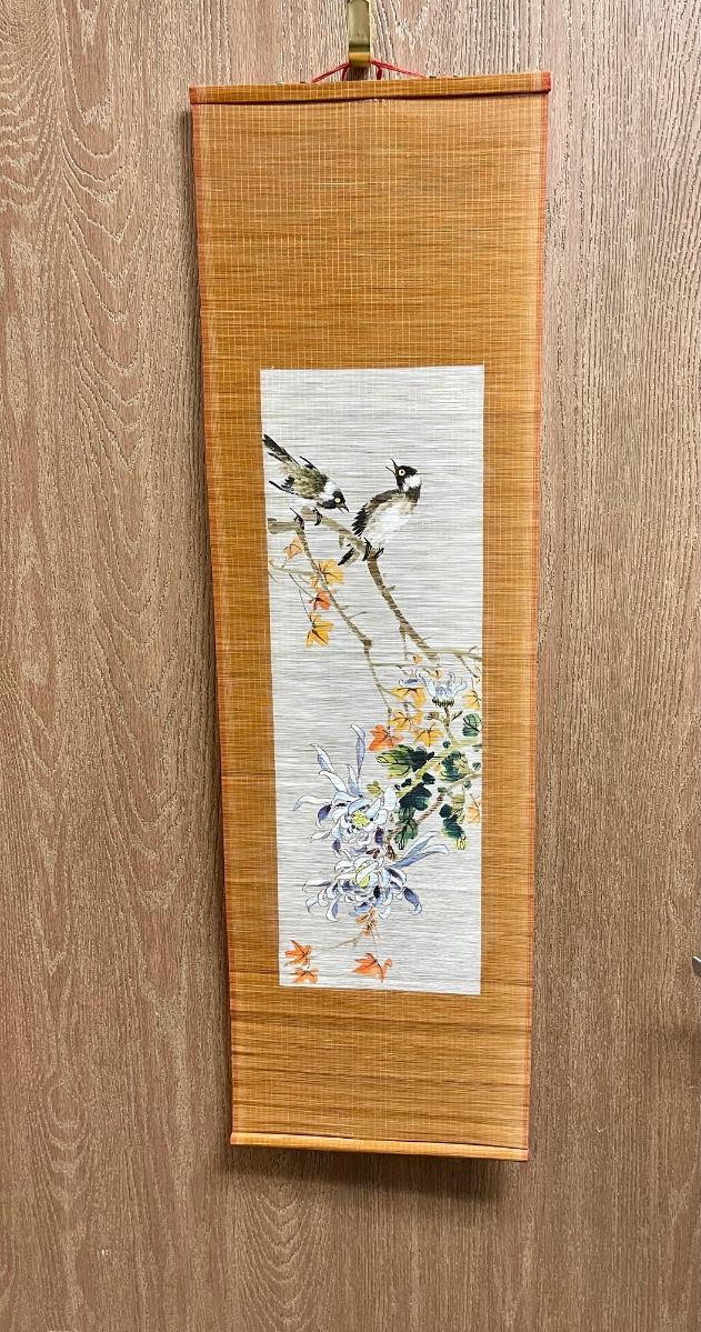 Vintage Japanese Kakejiku Scroll Painting flowers birds