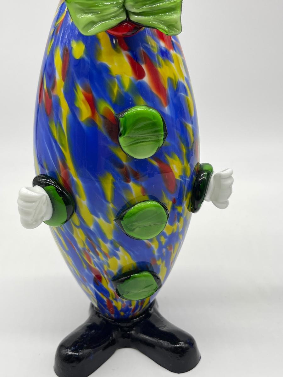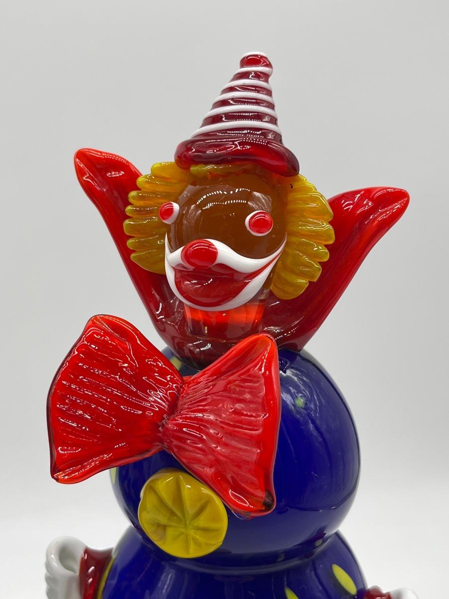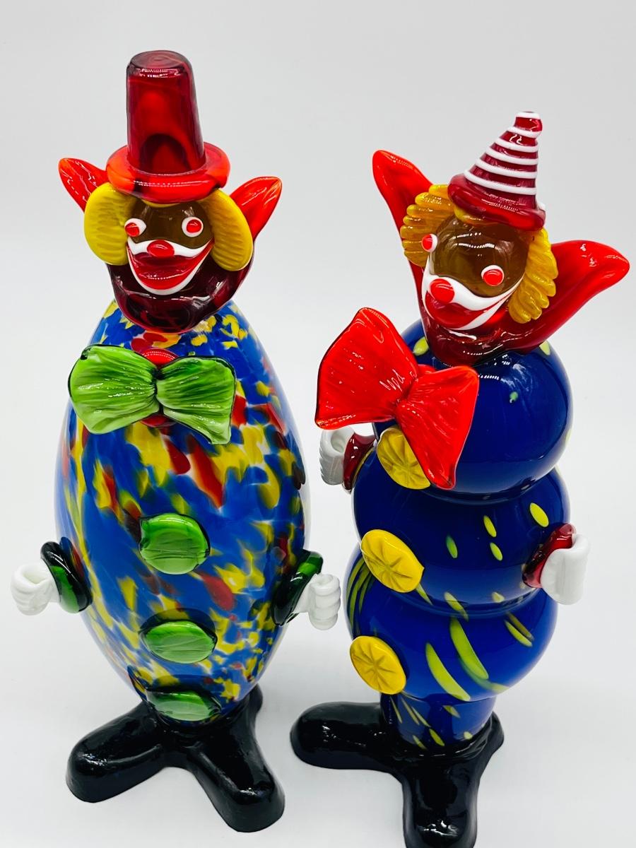 Italian Murano ~ Pair ~ Hand Blown Large Glass Clown Figurines