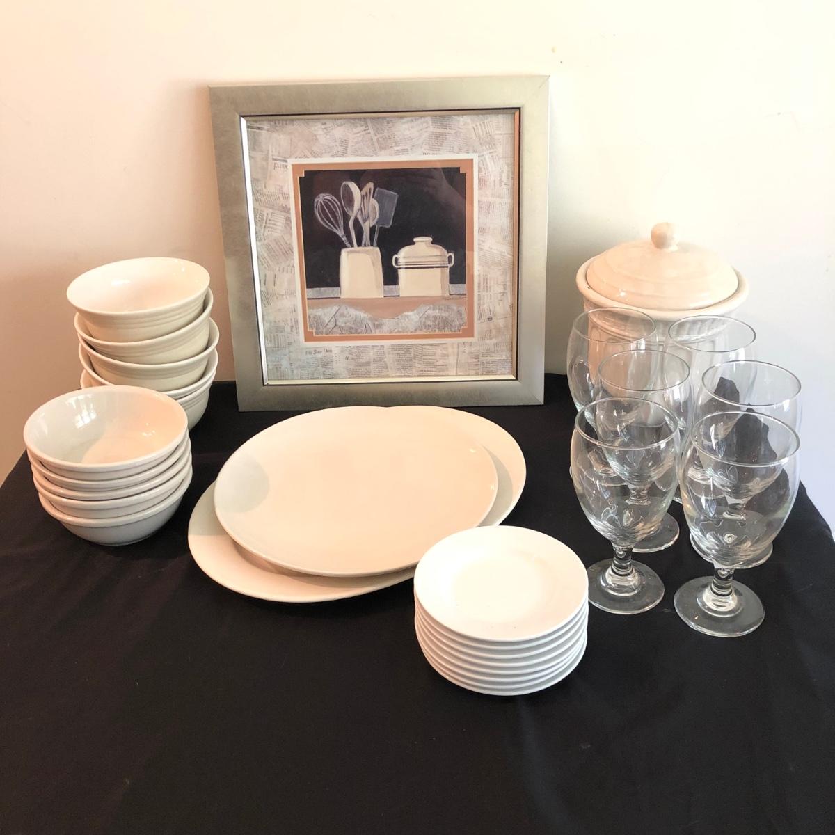 Sonoma, Pfaltzgraff & More Dishware Plus Glass Goblets & Framed Print (K-JF)
