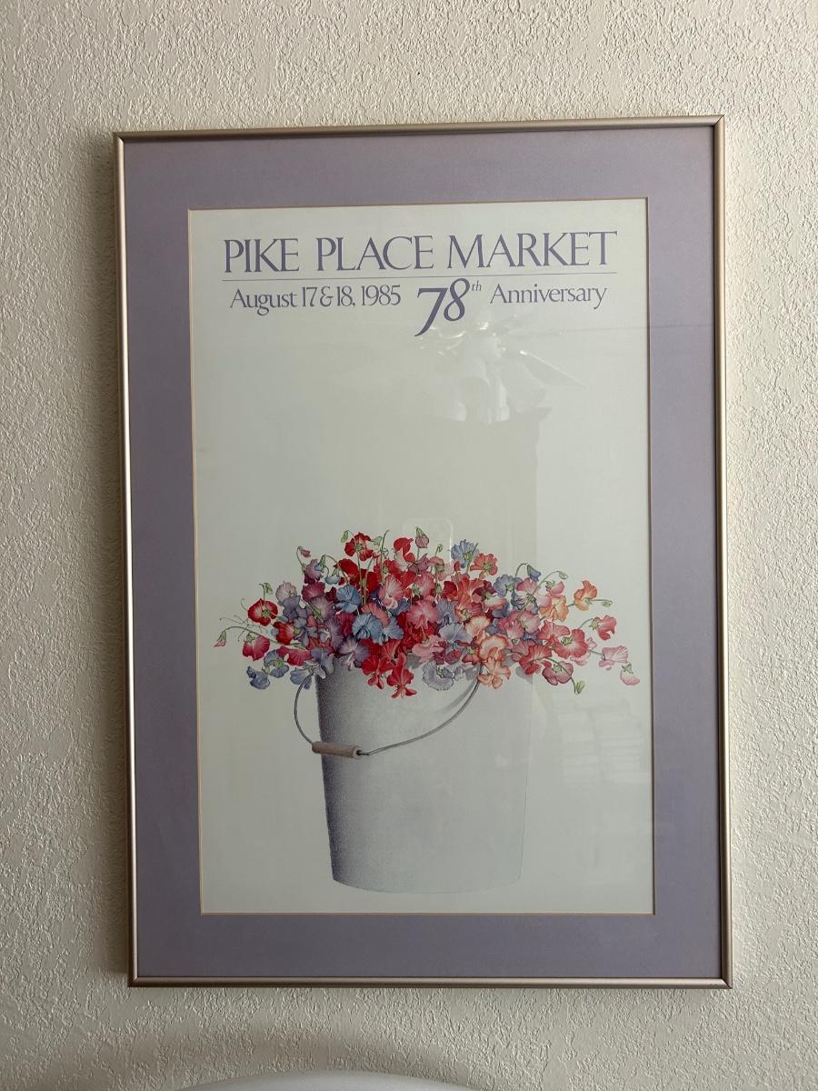 Pike Place Market 1985 78th Anniversary Framed Art. In good condition.
