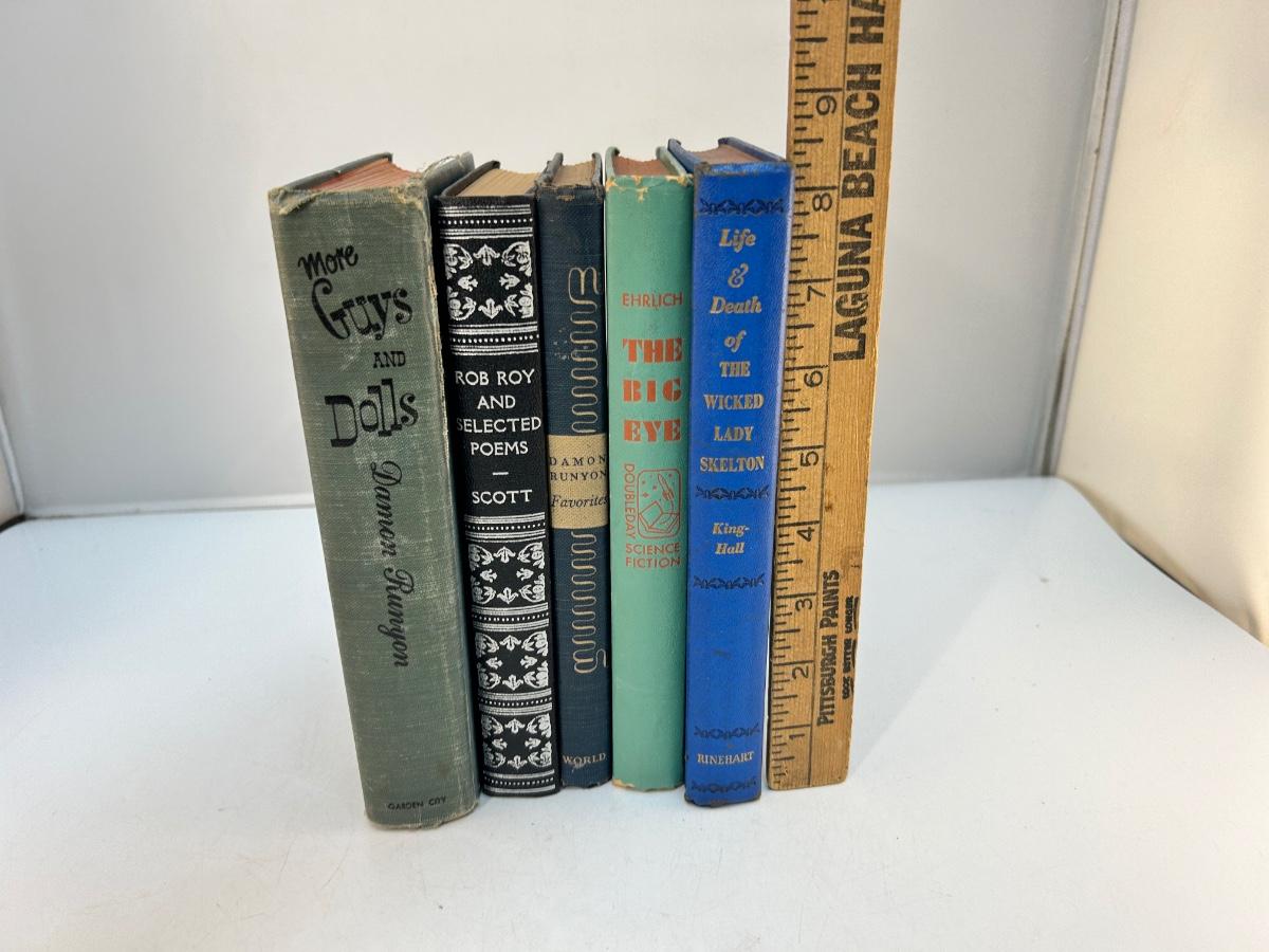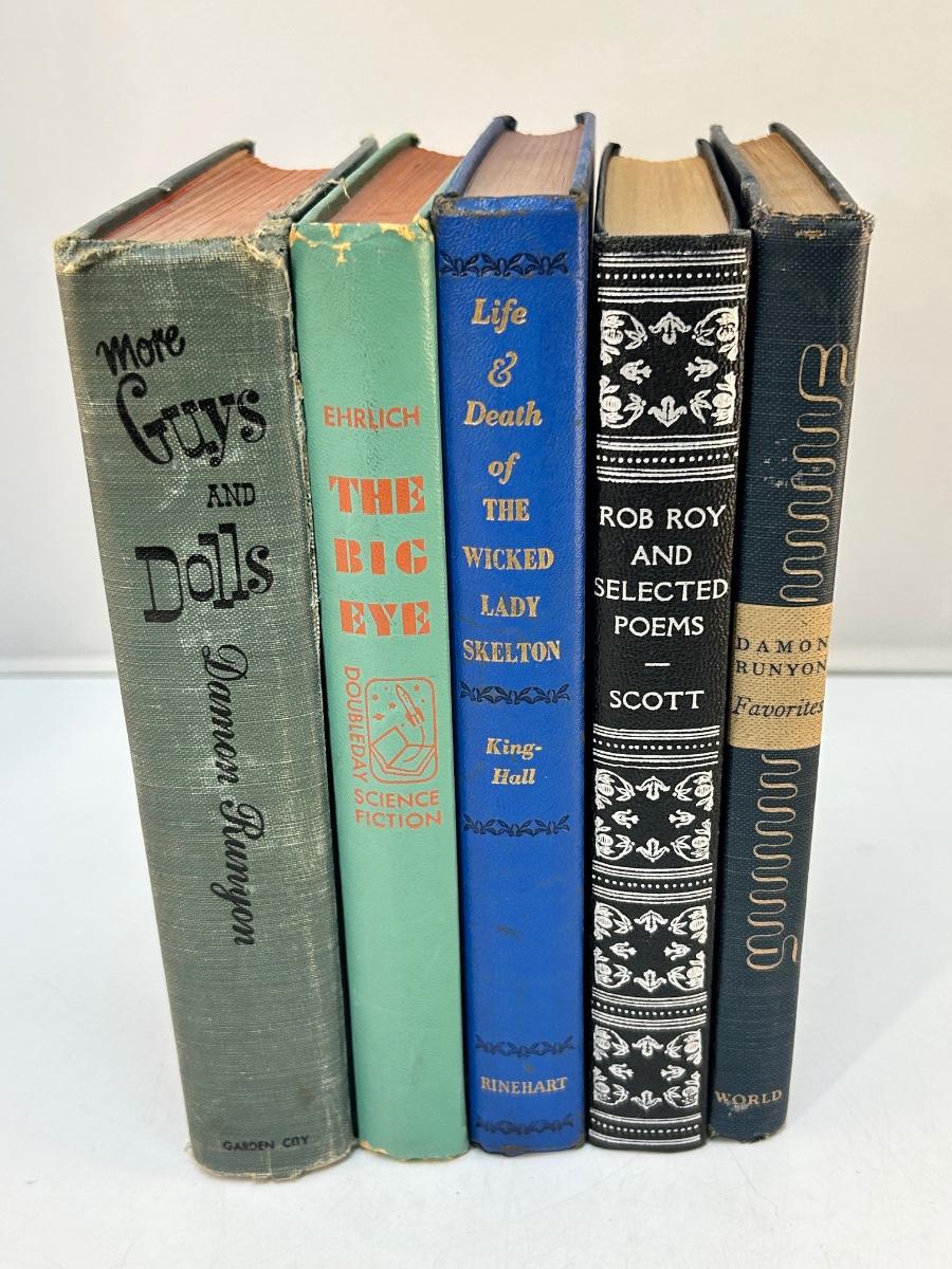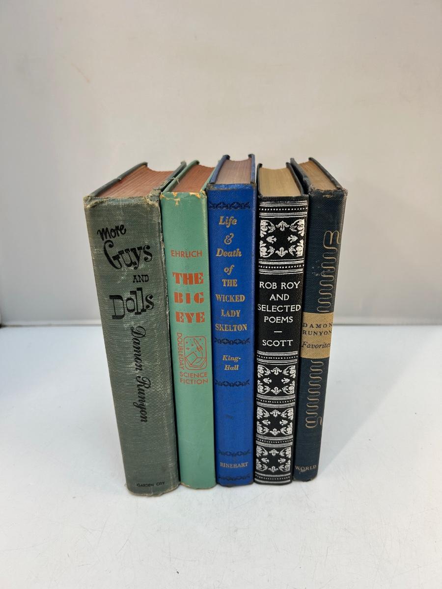 Lot of 5 Vintage Hardback Books Poems Sci-Fi Runyon. In vintage condition, some wear & tear. Display well.