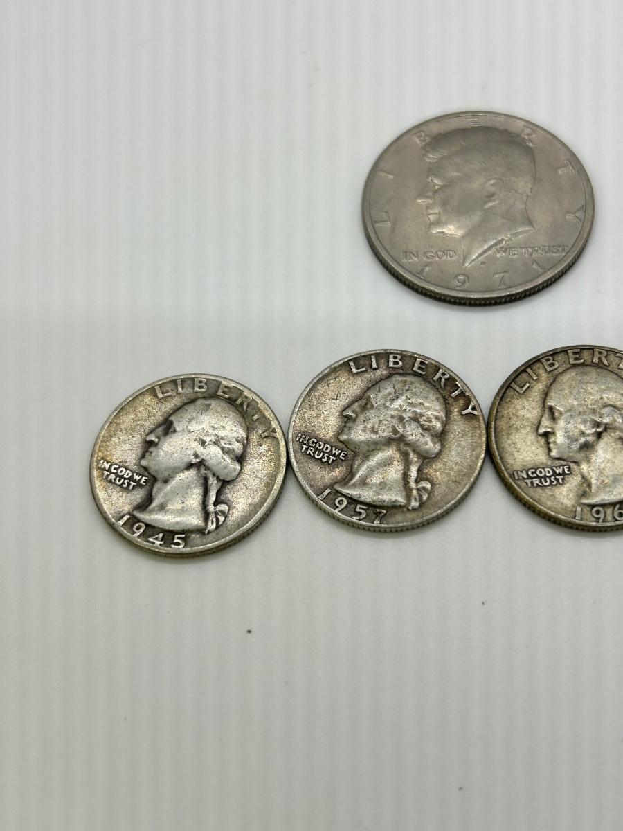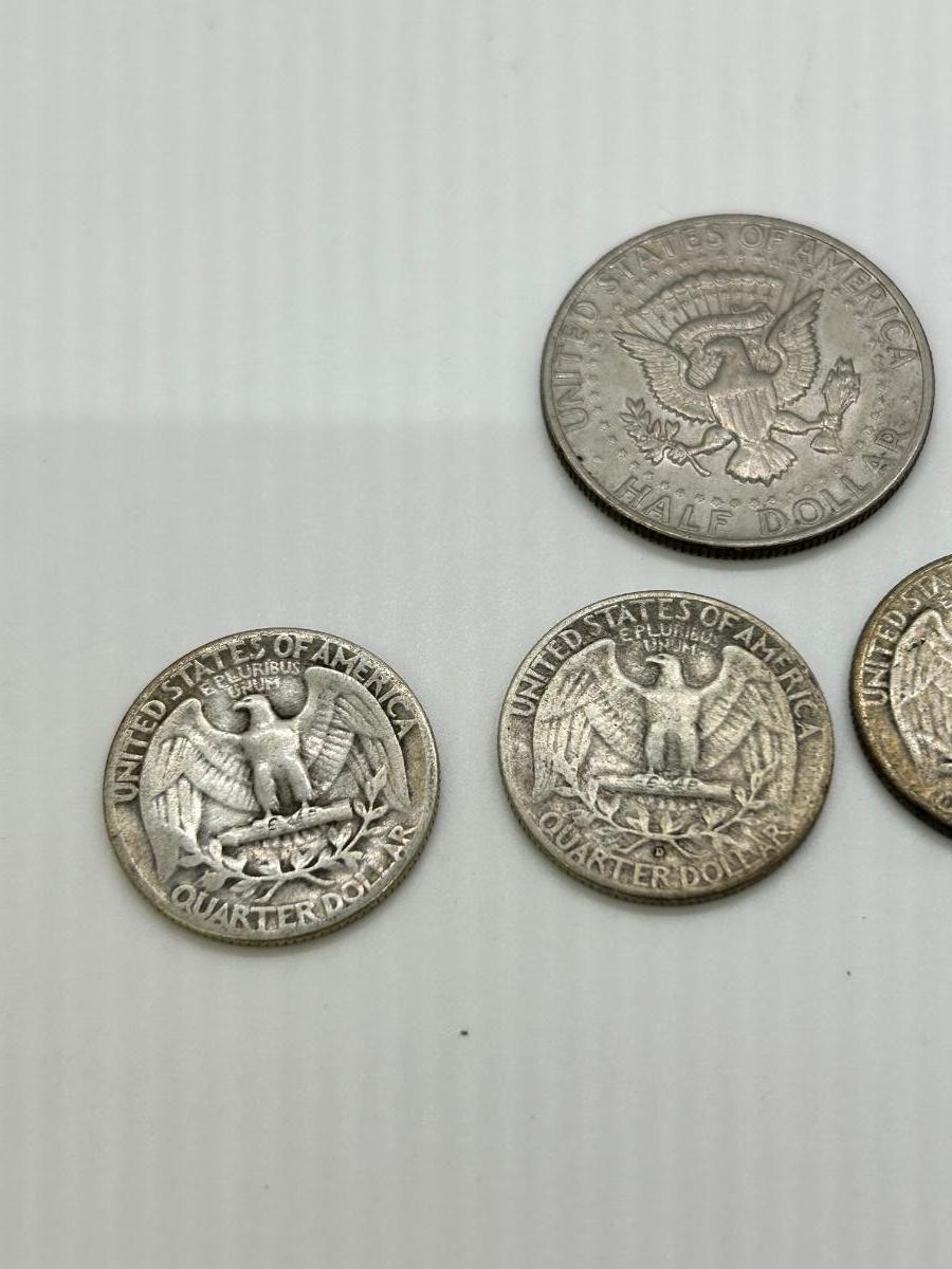 Lot of 4 US Quarters and a Kennedy Half Dollar Circulated Coin Money. See photos for condition and years.