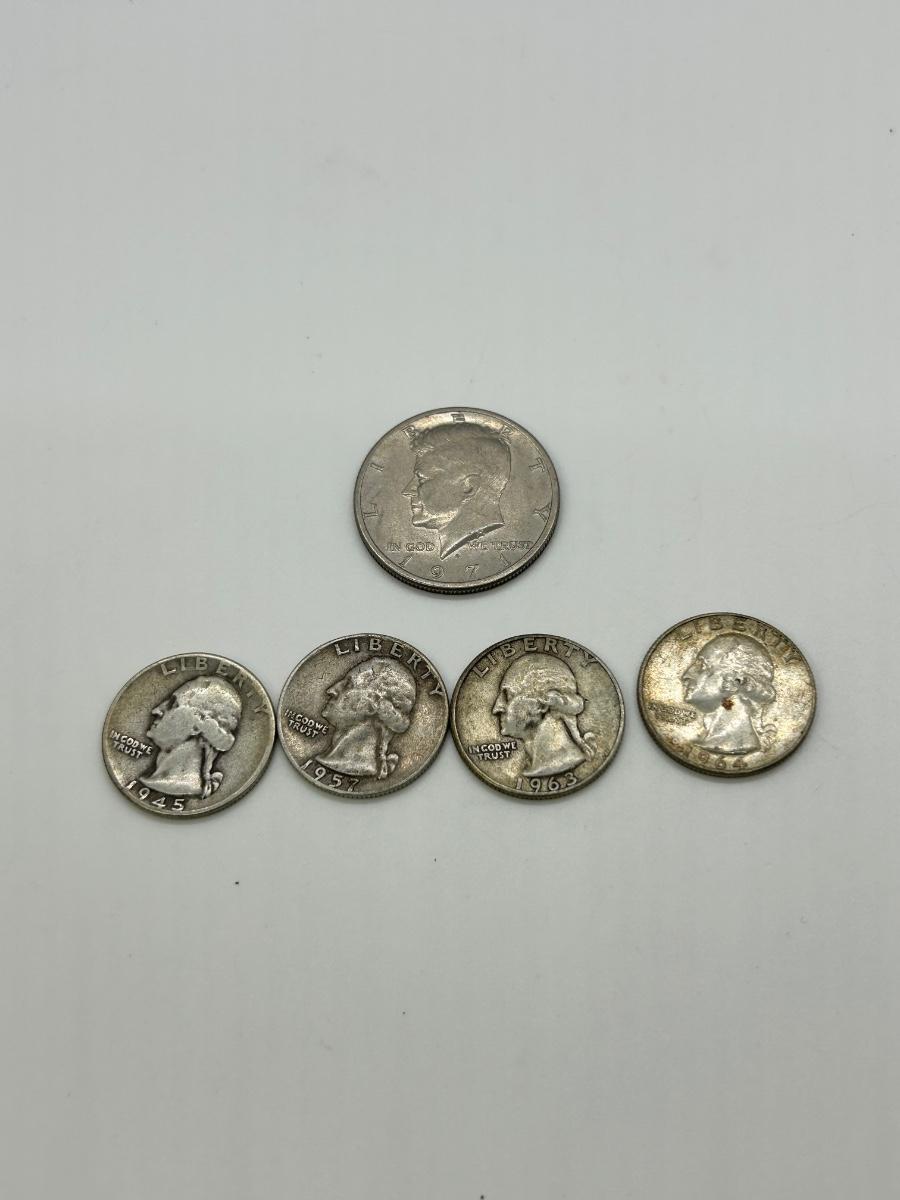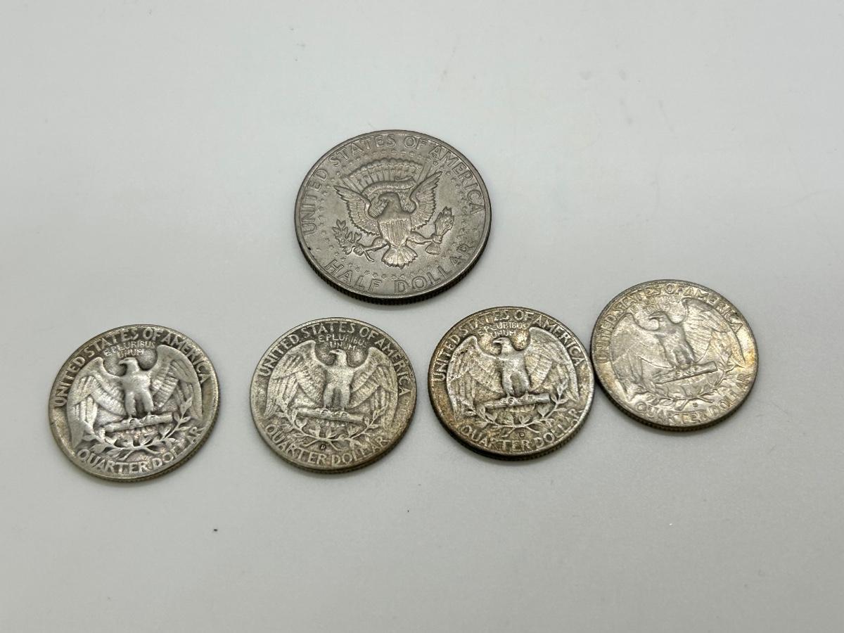 Lot of 4 US Quarters and a Kennedy Half Dollar Circulated Coin Money