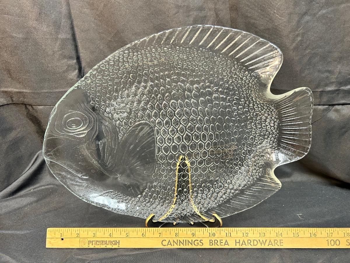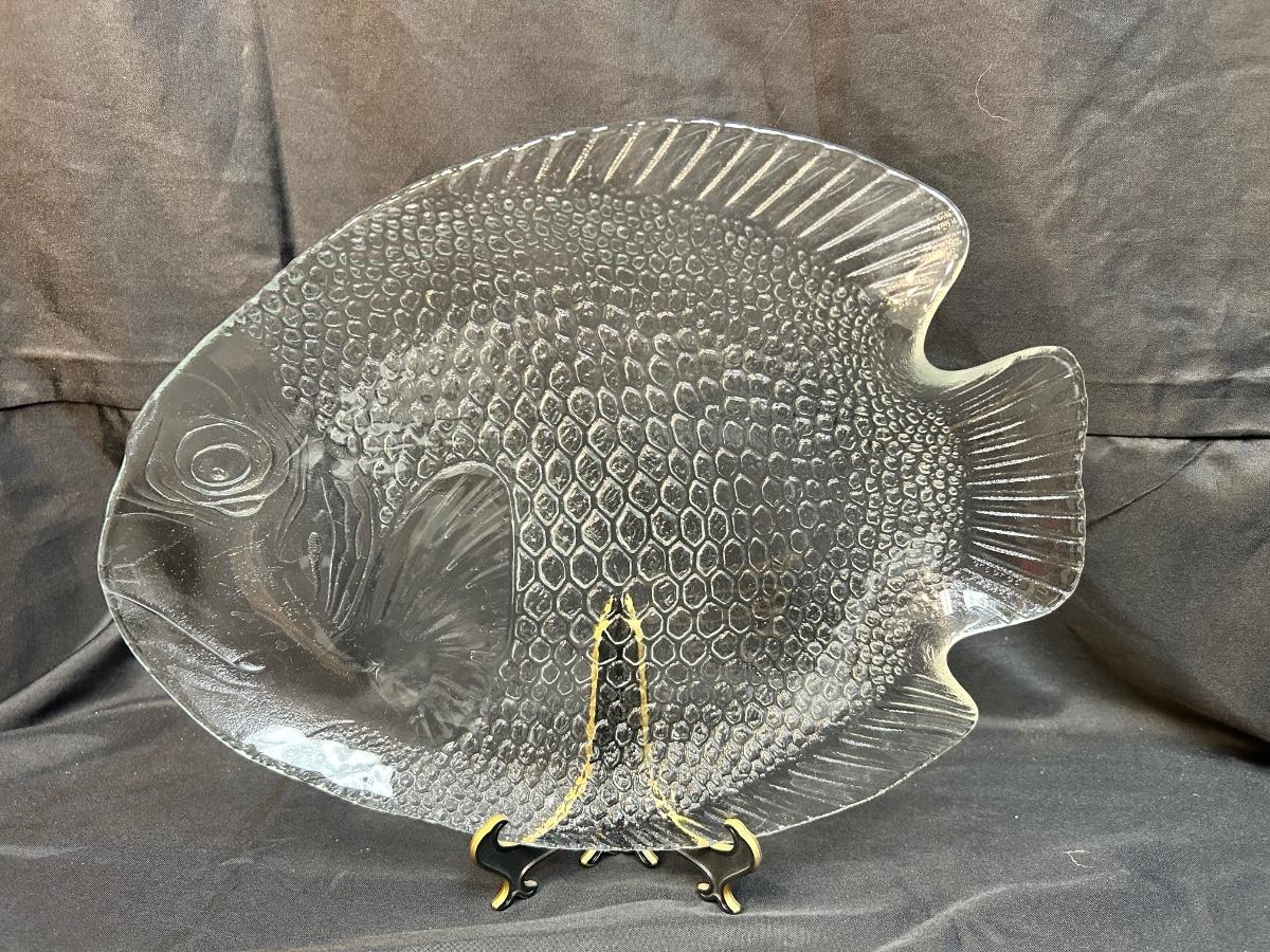 Large Embossed Fish Pattern Serving Plate Platter. In good condition.