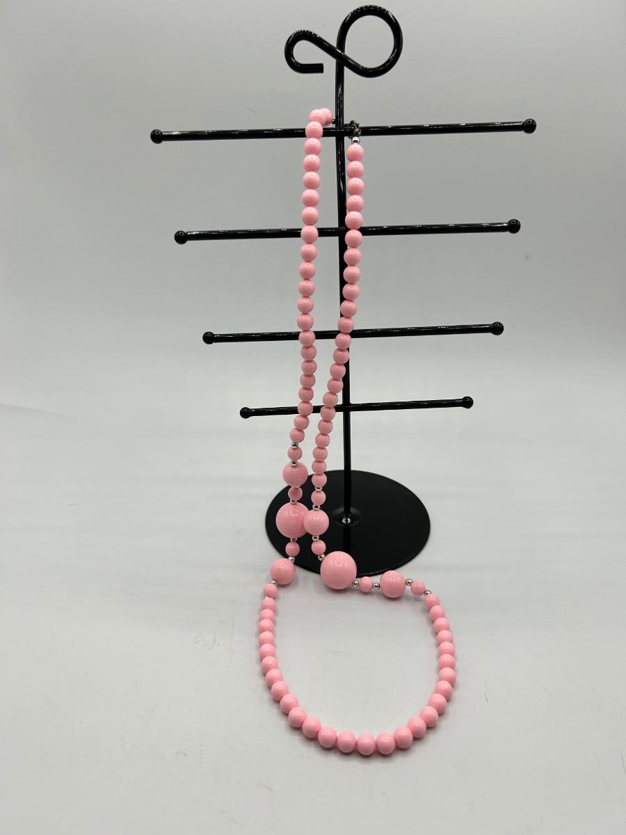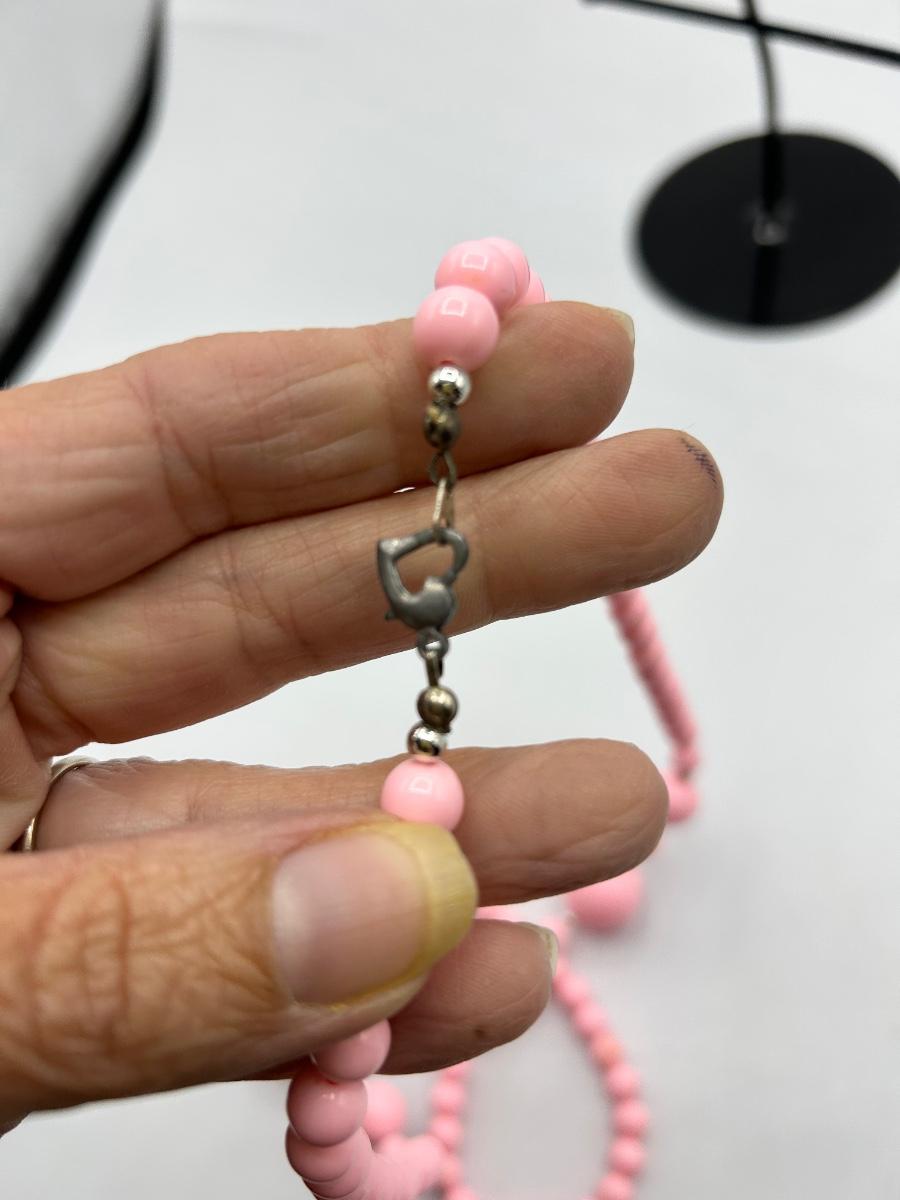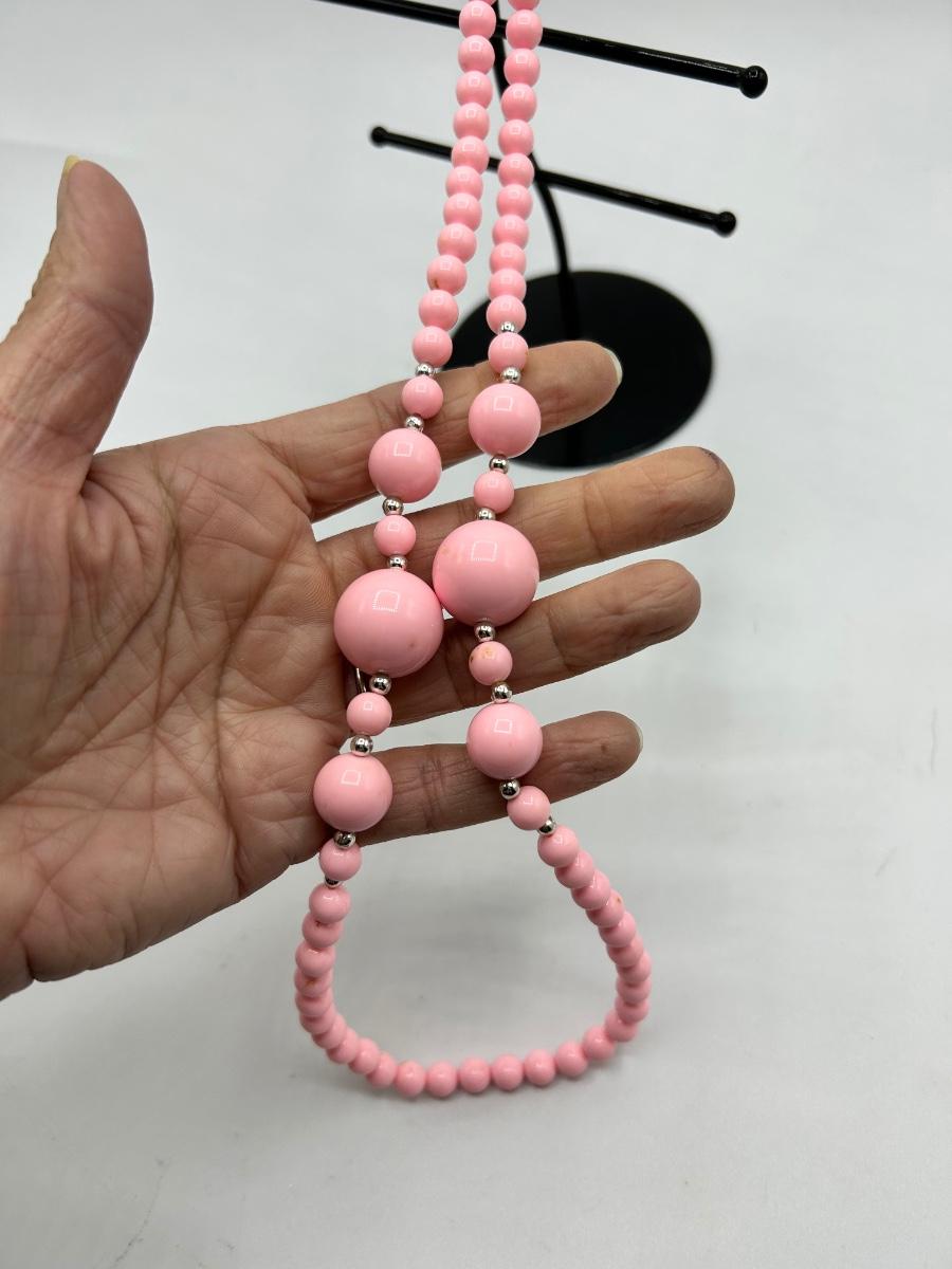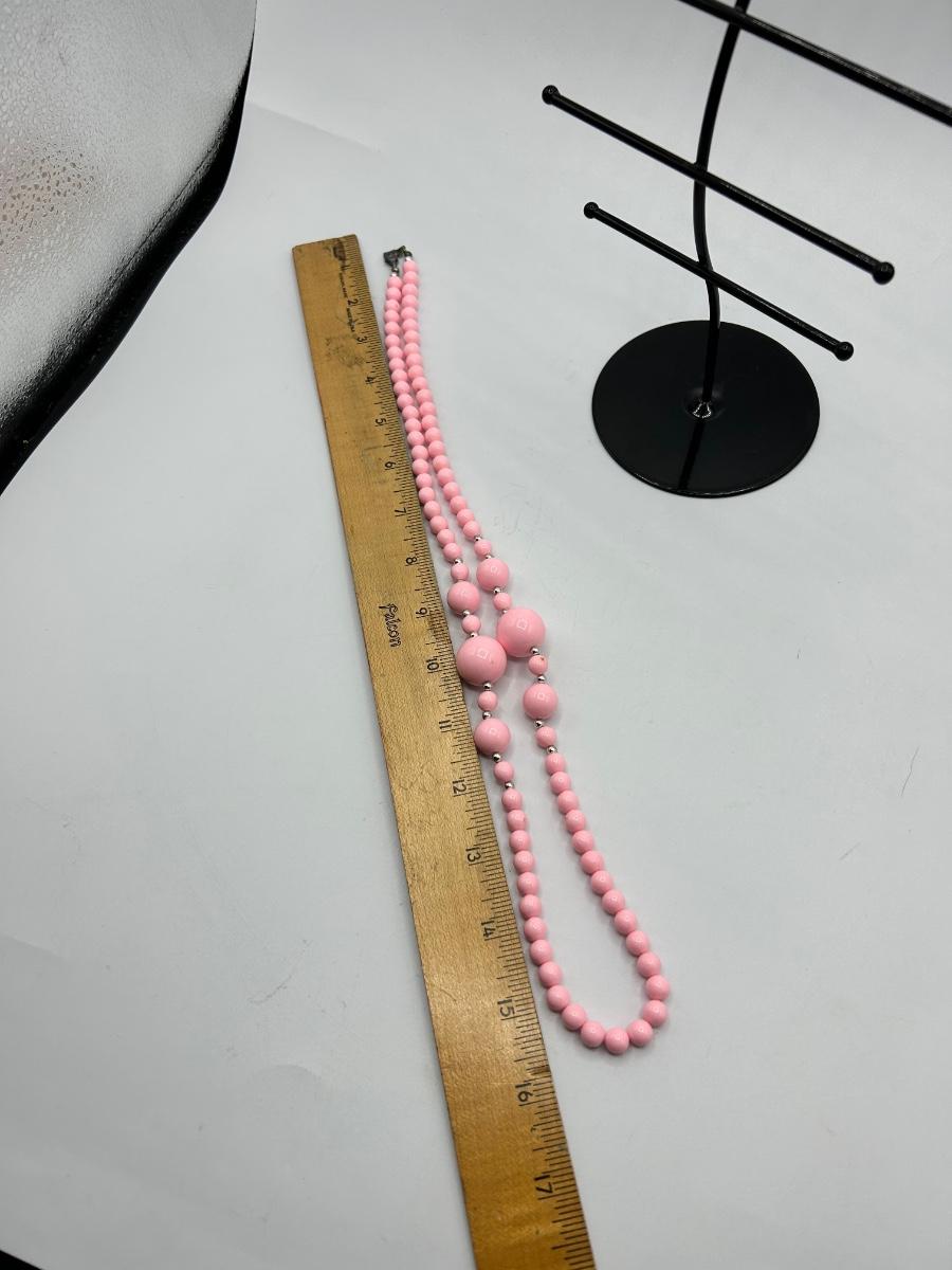 Vintage Plastic Pale Pink Beaded Necklace. In good condition. Long, over 12" length.