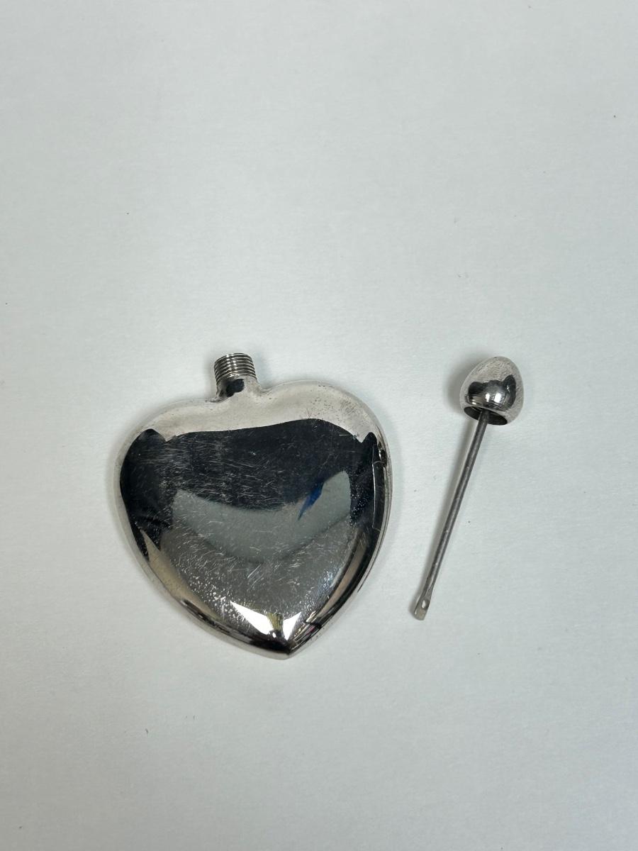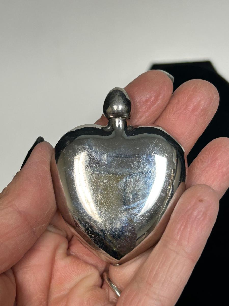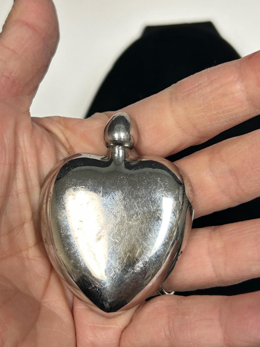 Vintage Antique Victorian Heart Shaped Purse Pocket Perfume Atomizer Bottle Silver Plate