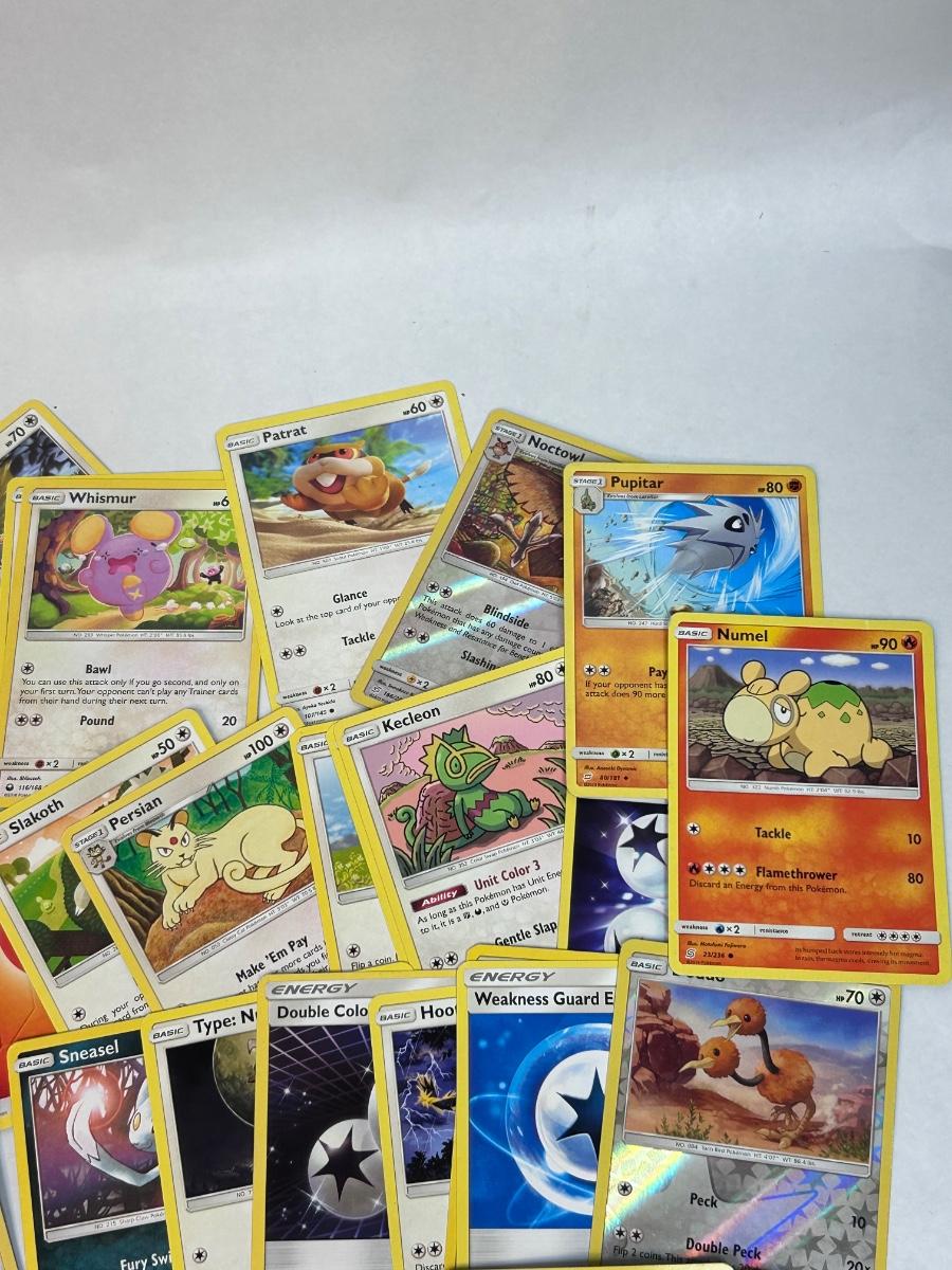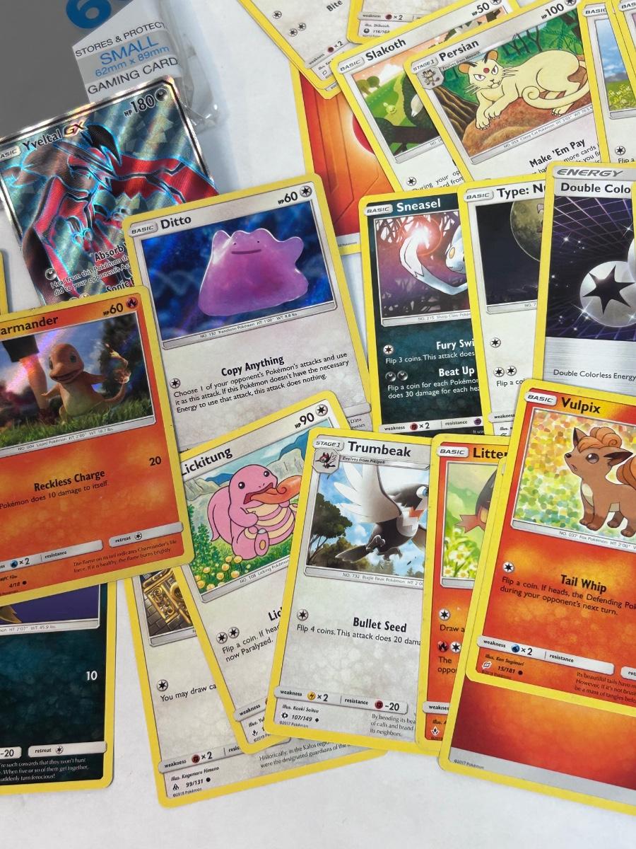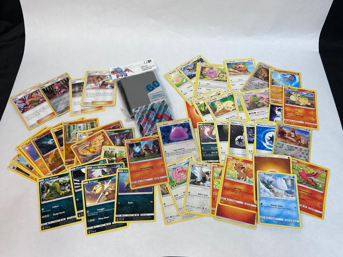 Mixed Lot of Loose POKEMON Card with Bonus Card Sleeves. Cards are from 2017-2019. In good open condition.