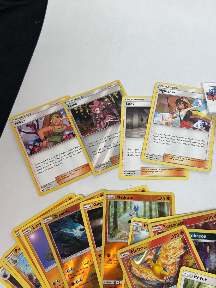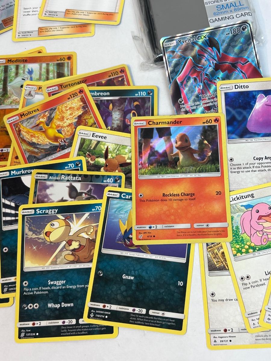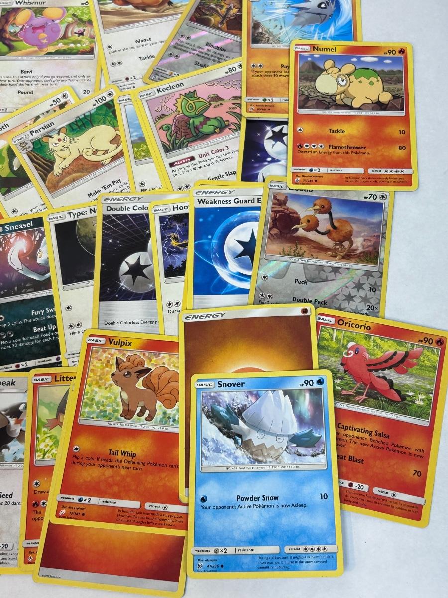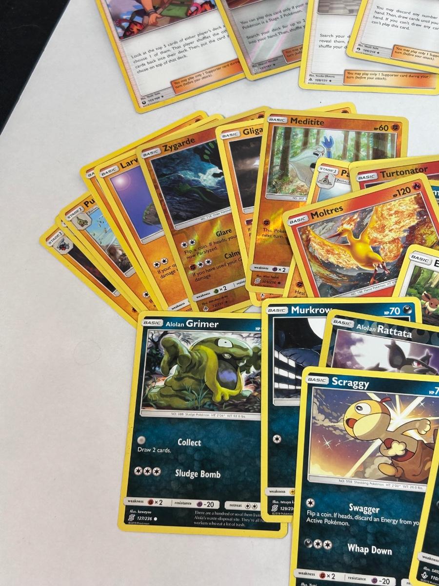 Mixed Lot of Loose POKEMON Card with Bonus Card Sleeves. Cards are from 2017-2019. In good open condition.
