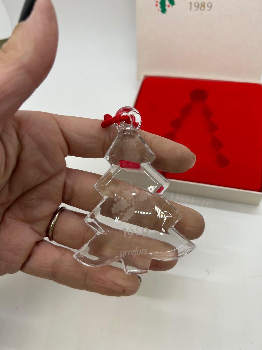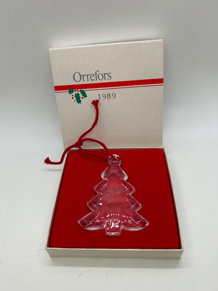 Vintage Orrefors 1989 Art Glass Tree Ornament with Original Box