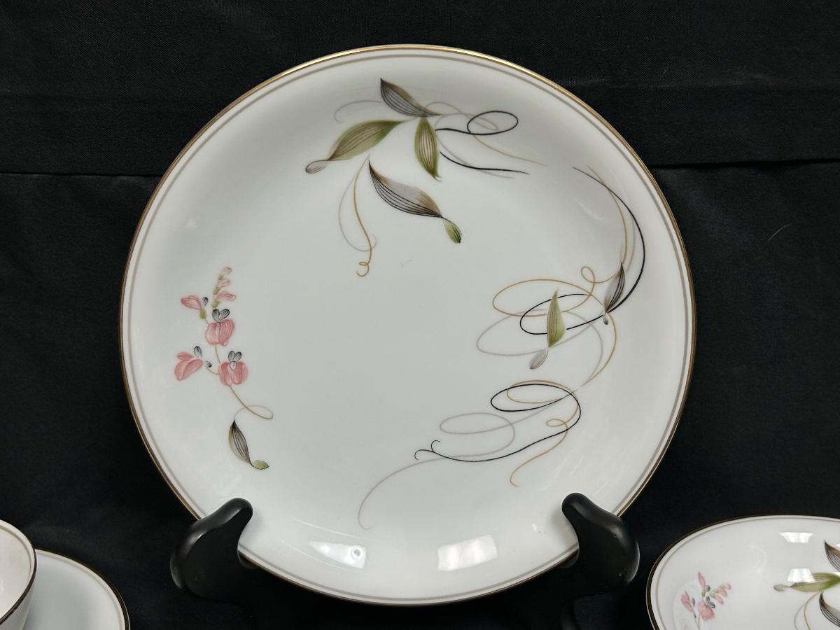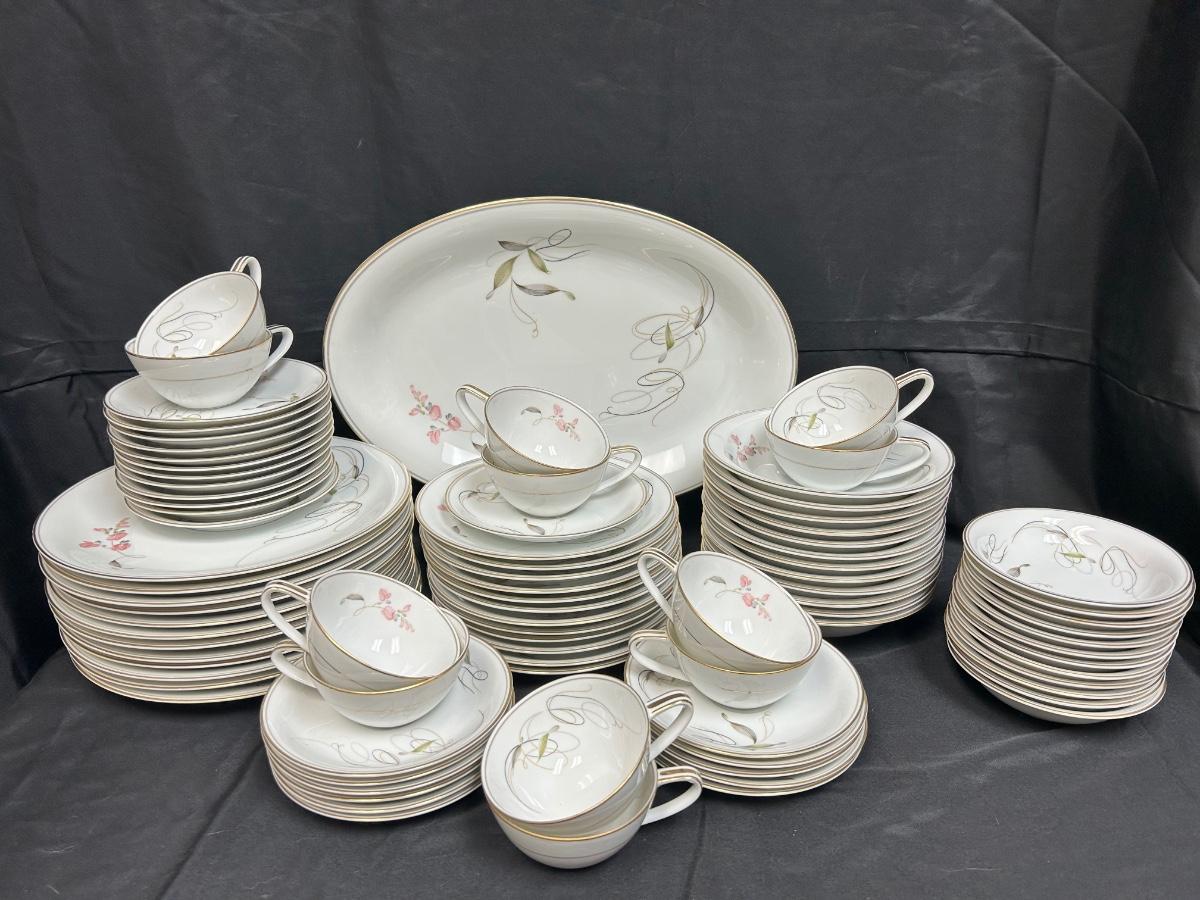 Vintage RC Royal China Noritake Japan Service for 12 China Set with Serving Pieces Pink Flower Black Swirl