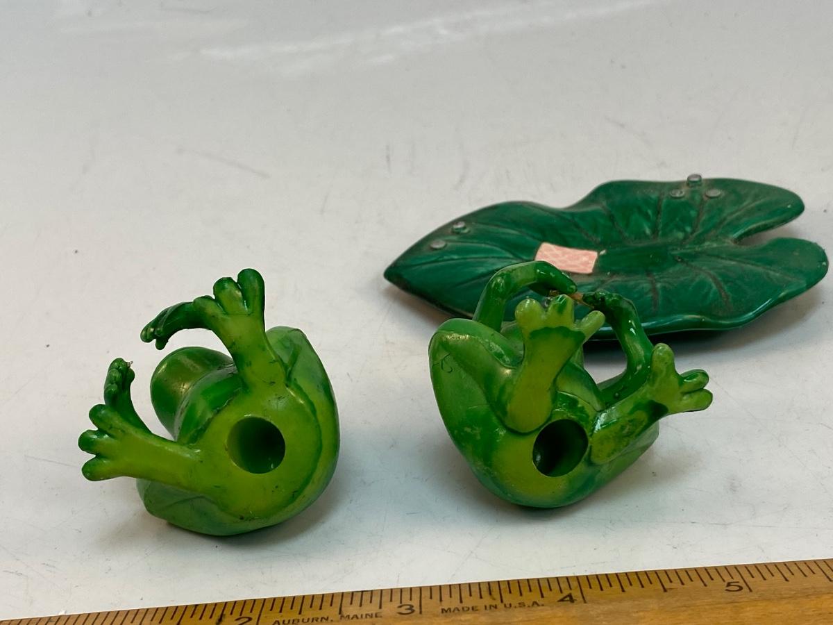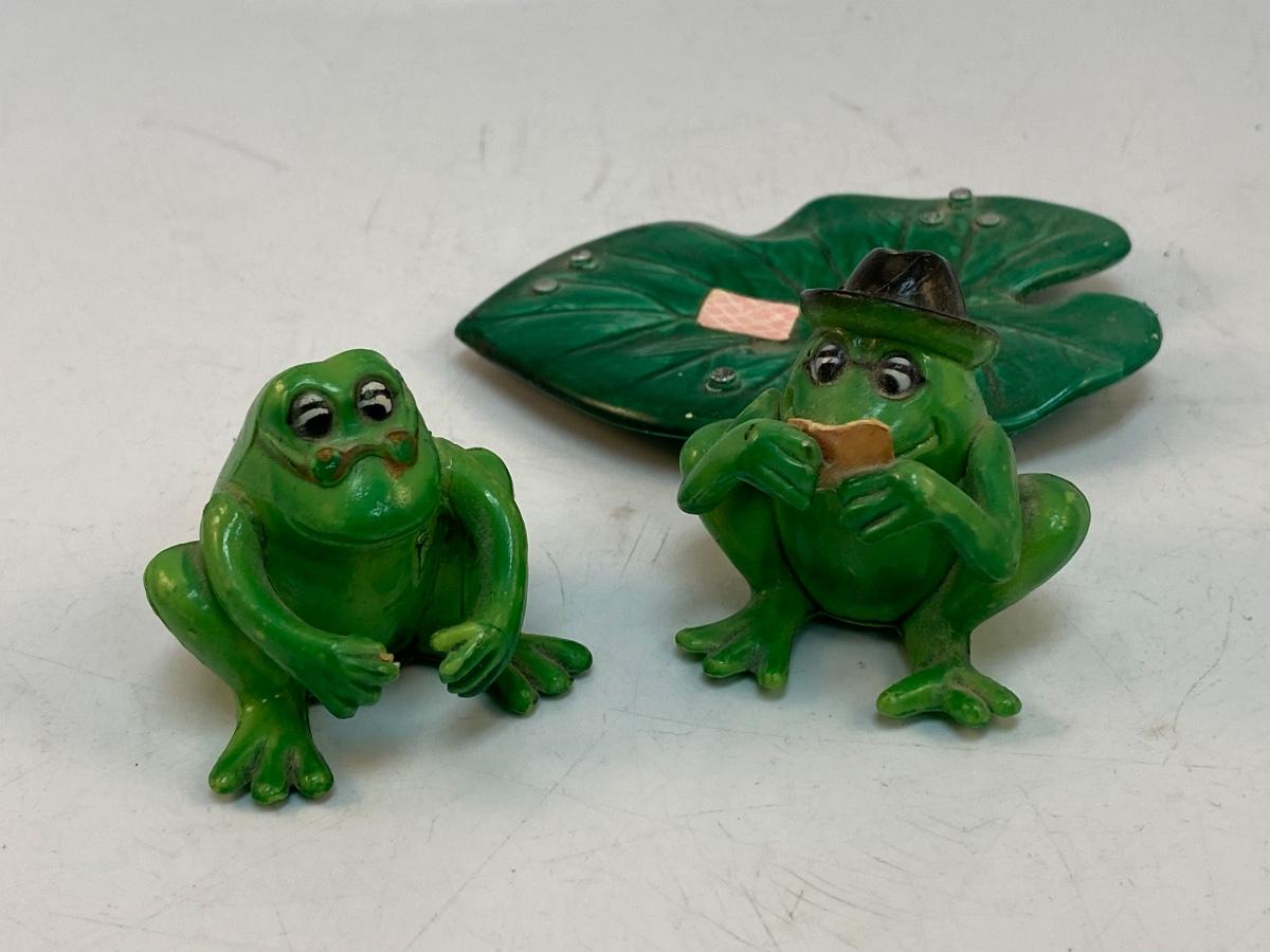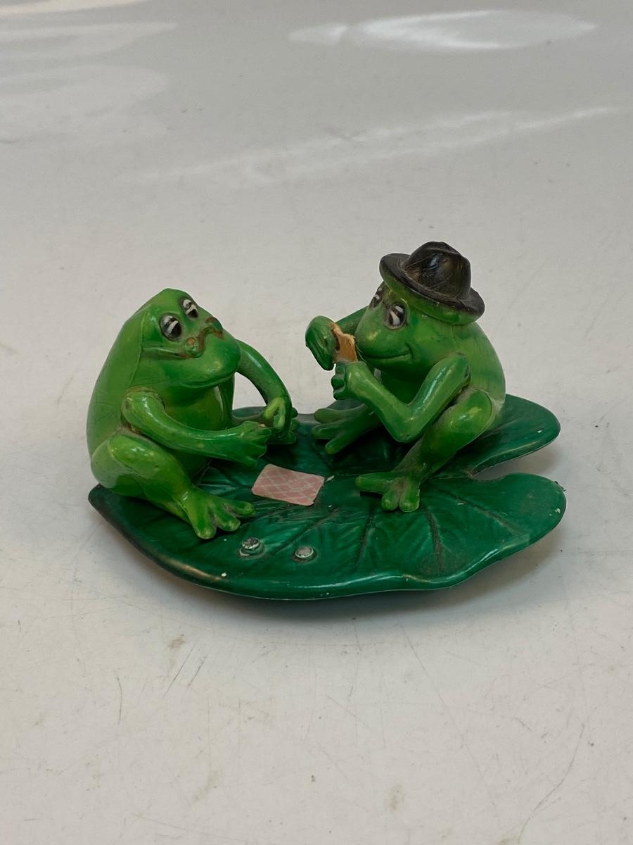 Vintage Card Poker Playing Frogs on Lily Pad. In vintage condition. Made of hard plastic material.