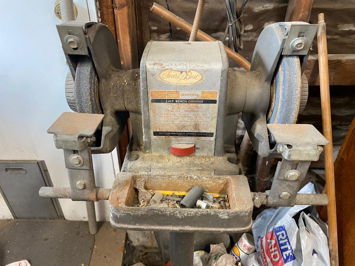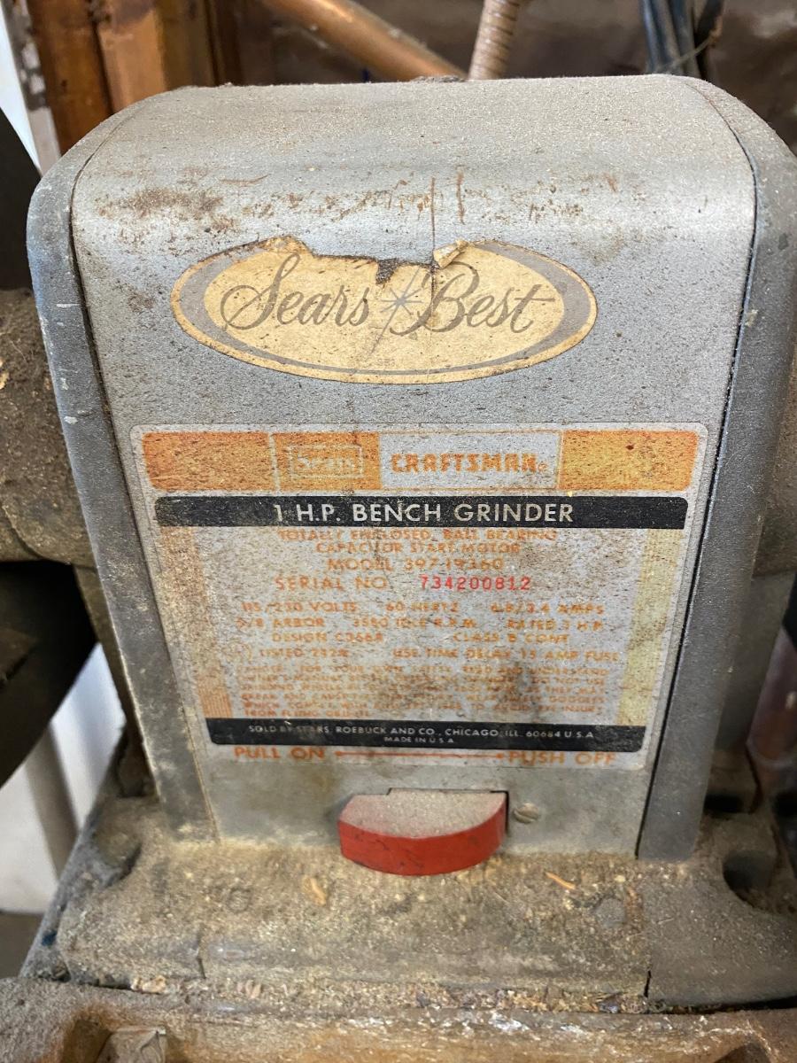 Vintage Sears Craftsman 1 HP Dual Grinder Polisher Wheel on Stand. Works. PICK UP IN CYPRESS ON 6/3.