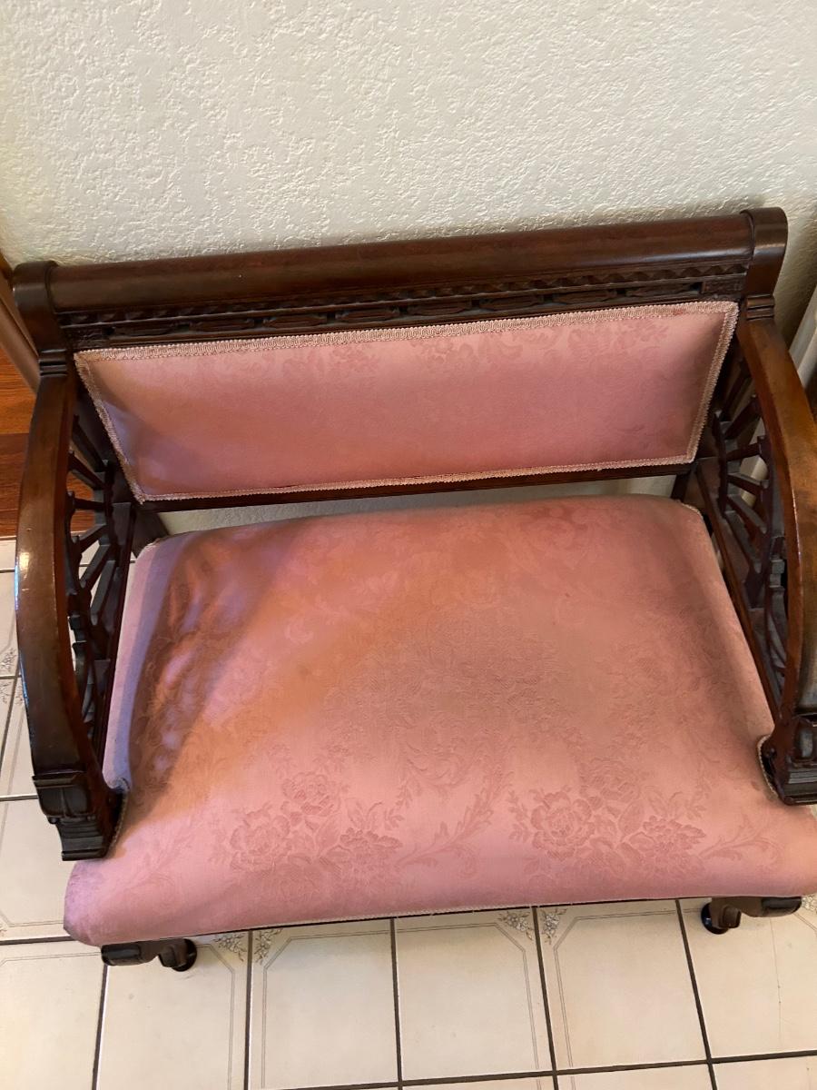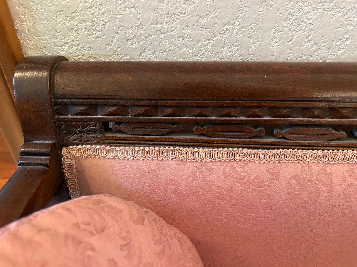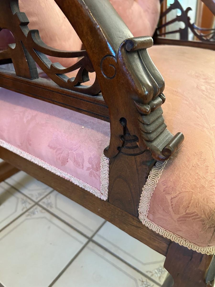 Vintage Antique Victorian Pink Upholstery Wide Seat Chair Figural Arms