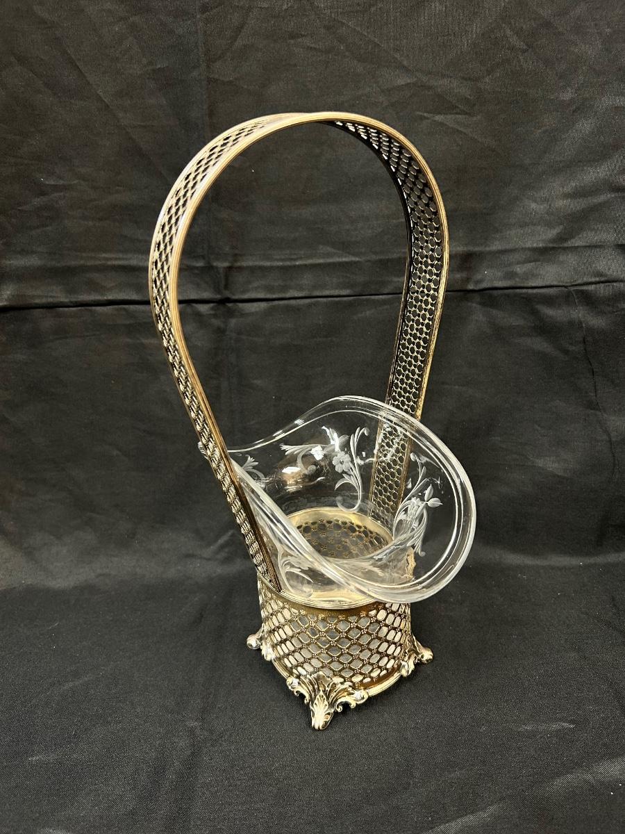 Vintage Spaulding & Co Sterling Silver Bridal Basket with Glass Insert