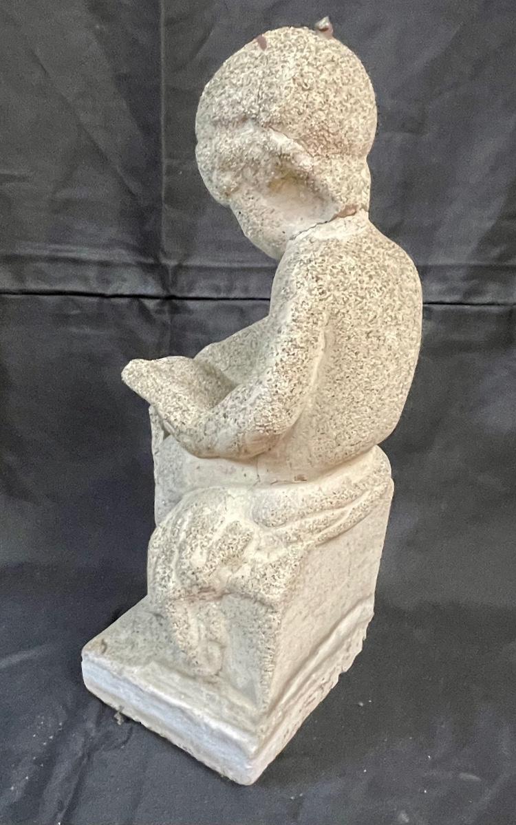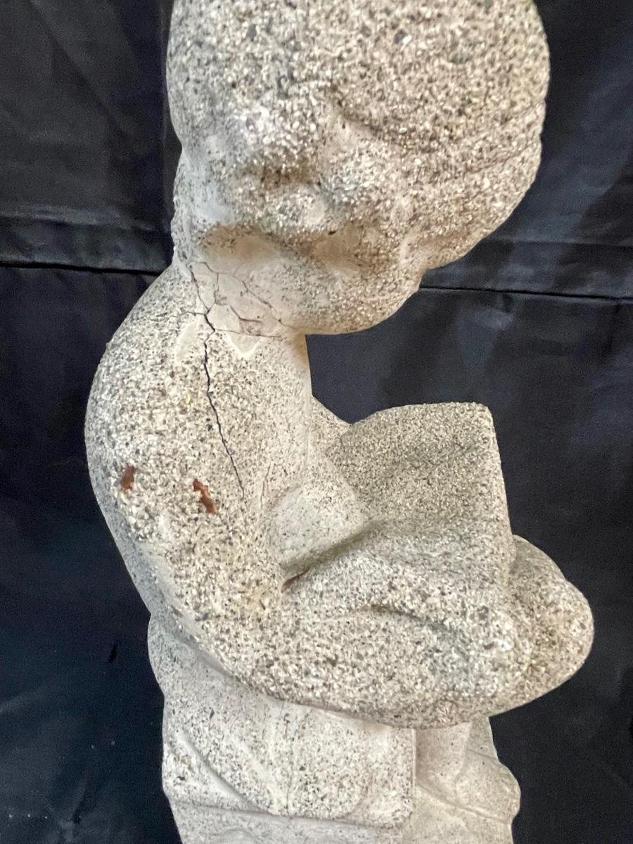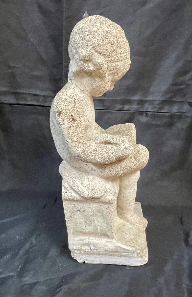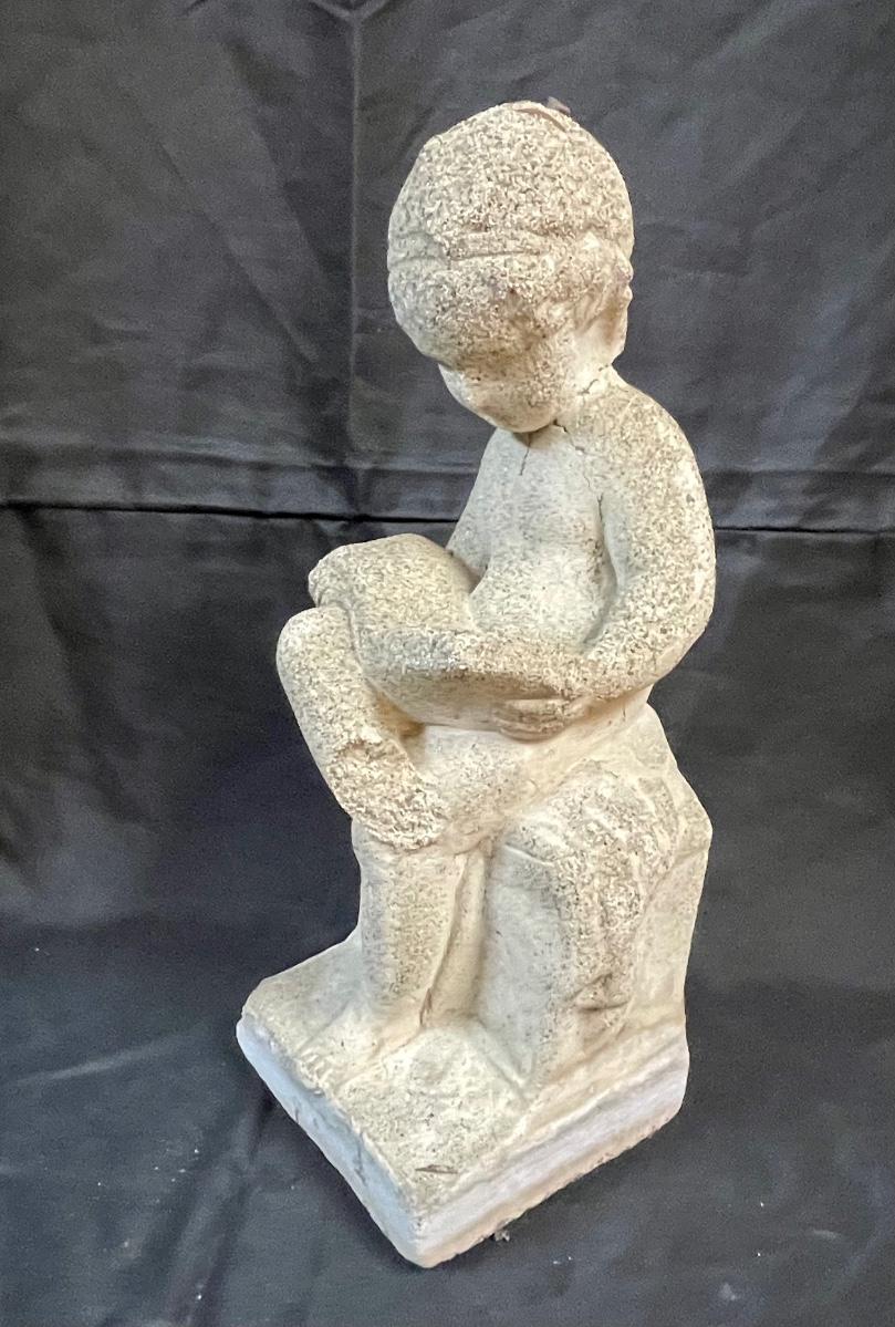 Stone Garden Art Child Reading Statue. In good, weathered condition. About 15" size.