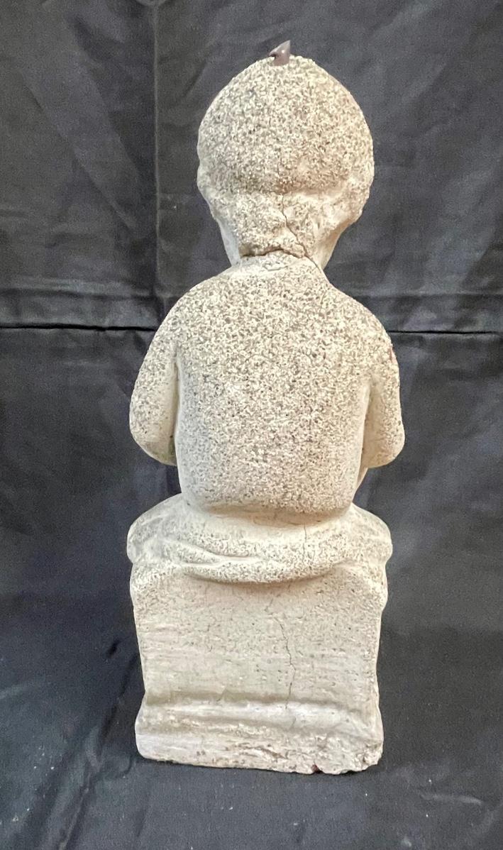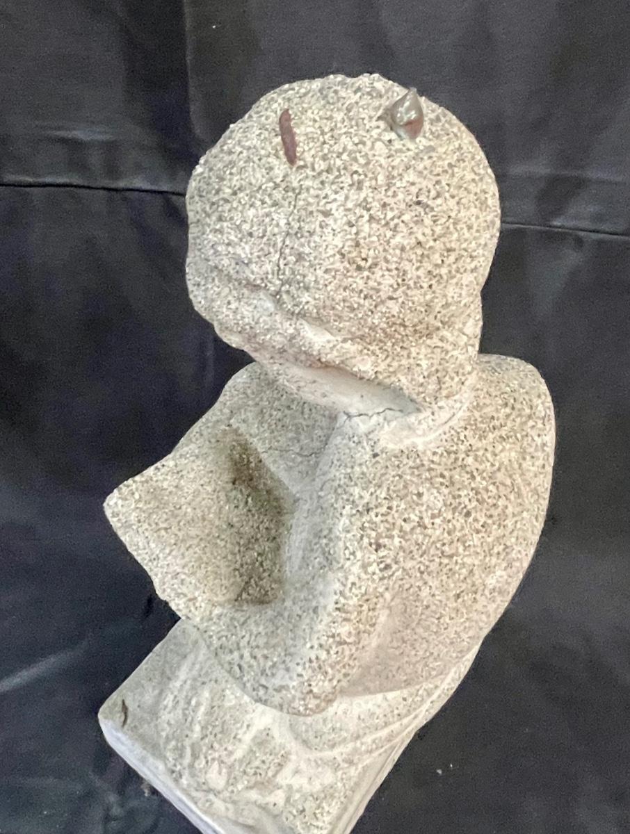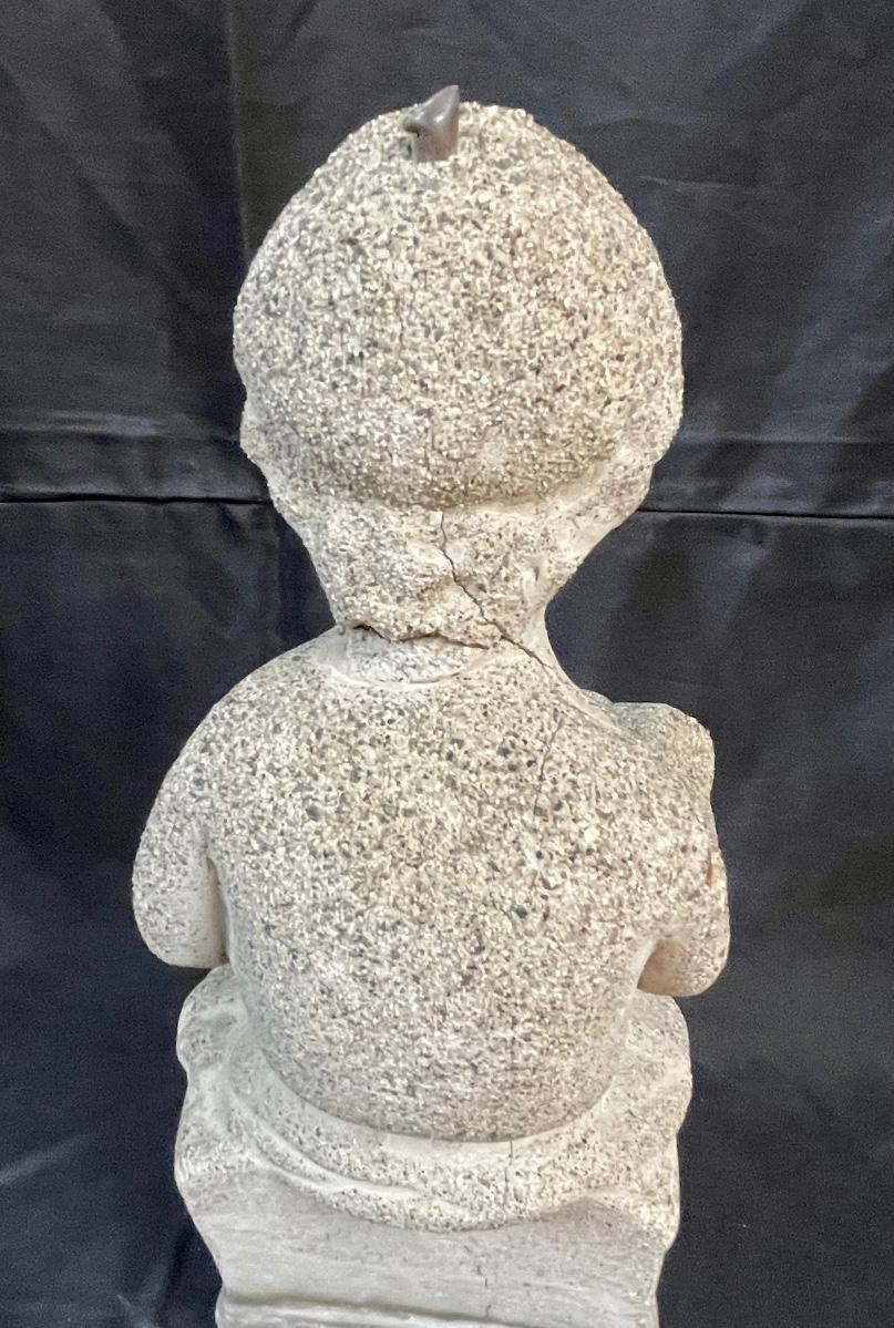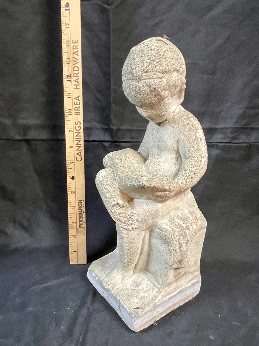 Stone Garden Art Child Reading Statue. In good, weathered condition. About 15" size.