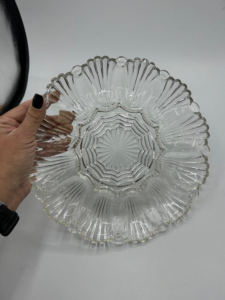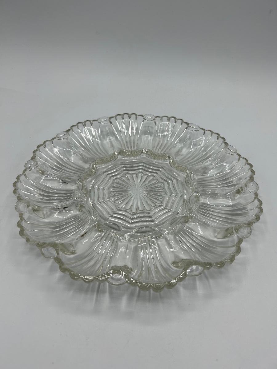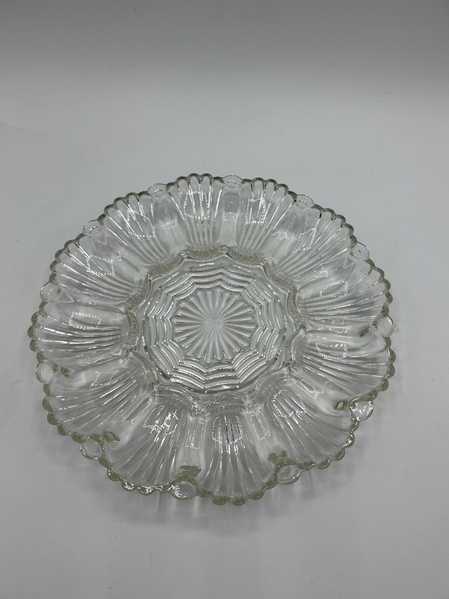 Vintage Clear Pressed Glass Deviled Egg Plate Platter. In good condition. No chips noticed.