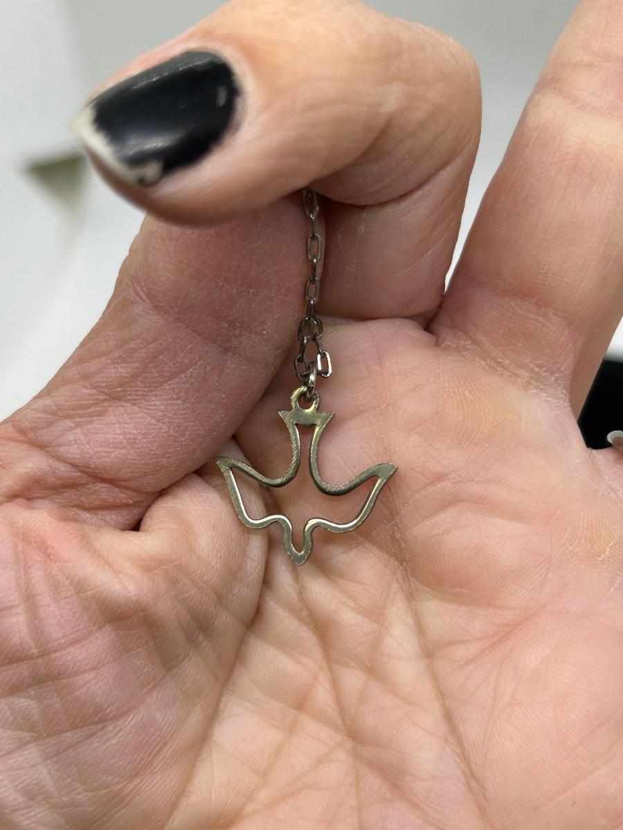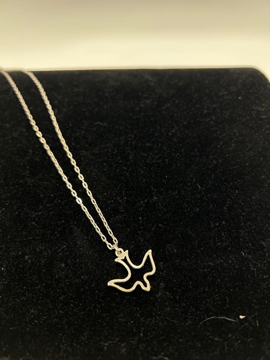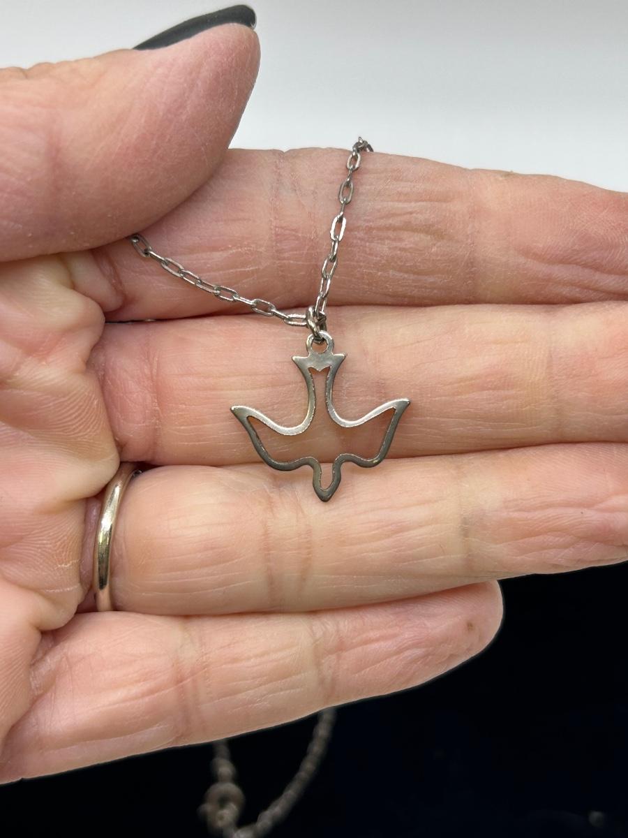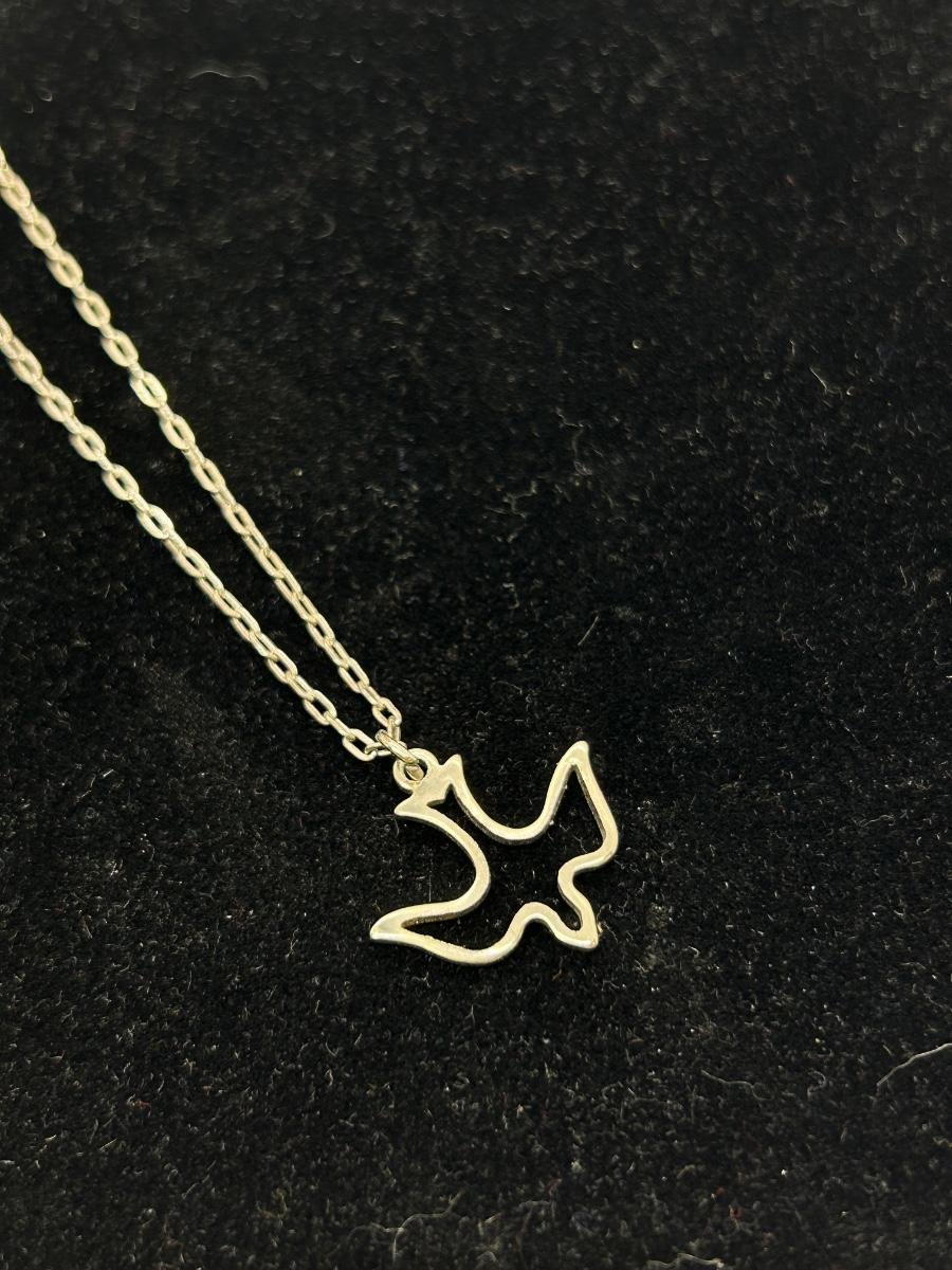 Vintage Silver Tone Dove Bird Silhouette Cut Out Pendant Necklace