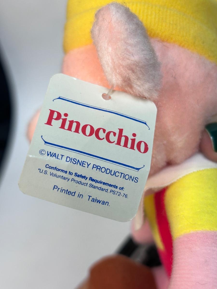 Walt Disney's Animated Film Classic Pinocchio Plush Stuffed Doll. In good condition. Hang tag still attached. From the mid 1980s.
