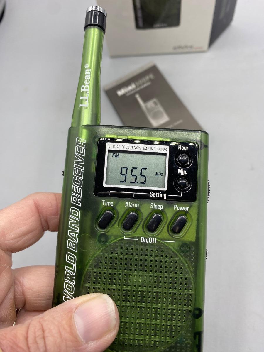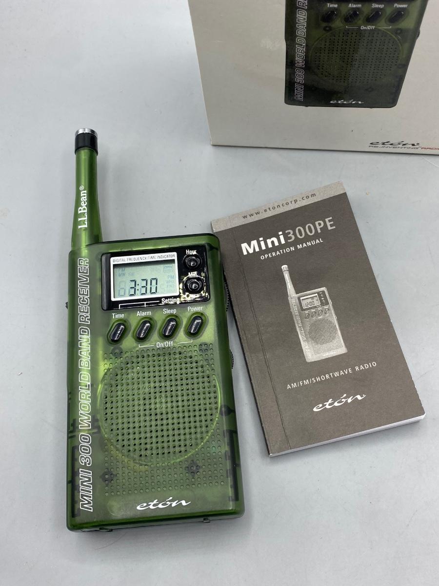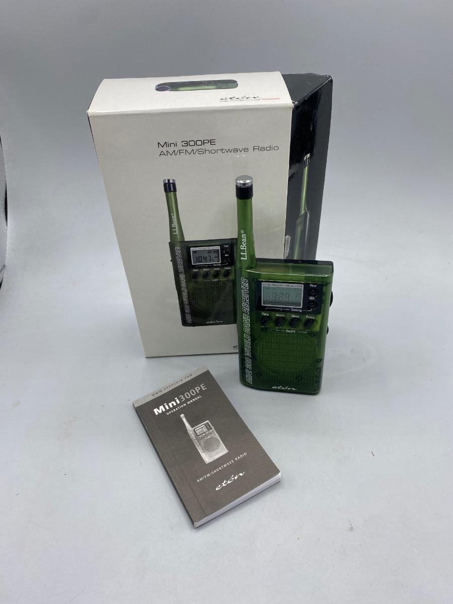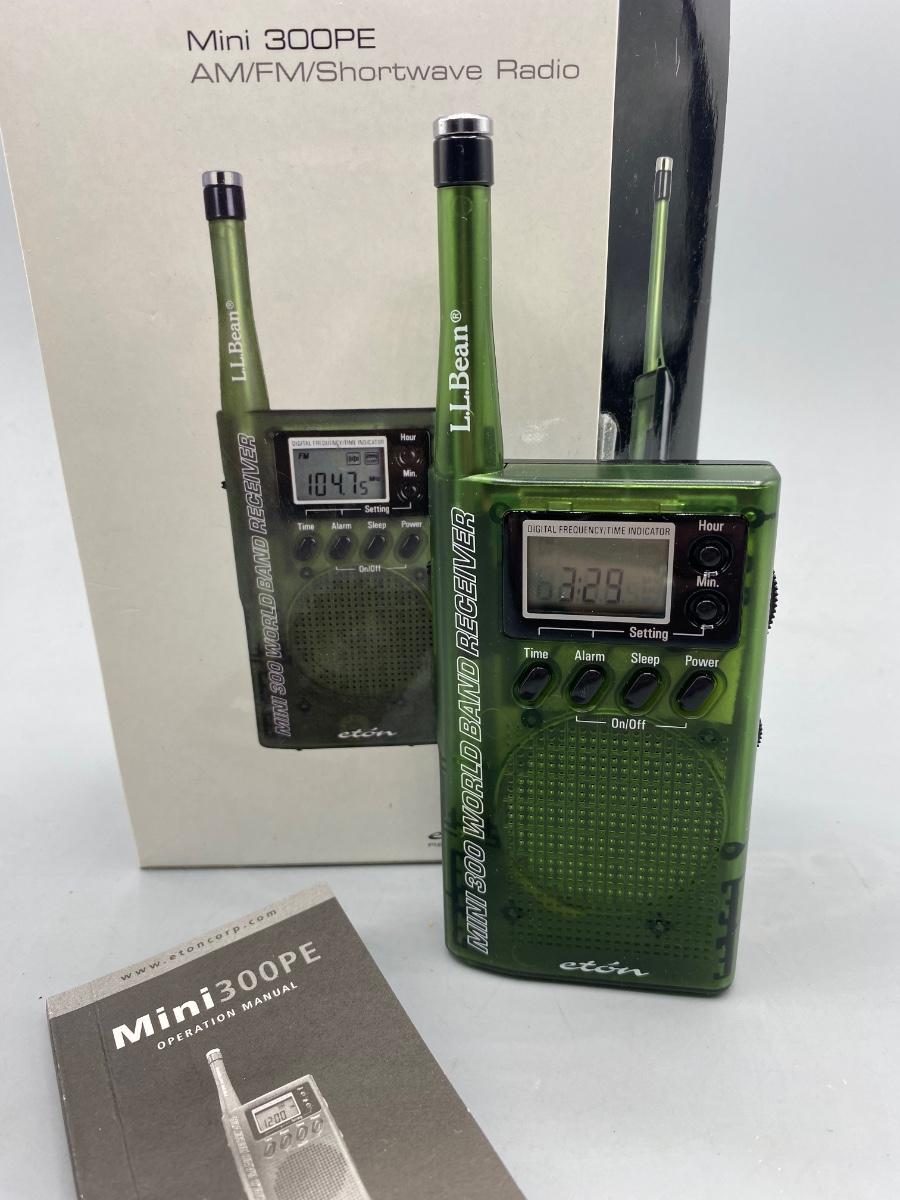 Green LL Bean Mini 300PE World Band Receiver AM FM Shortwave Radio. Works. Comes with manual and in original box.