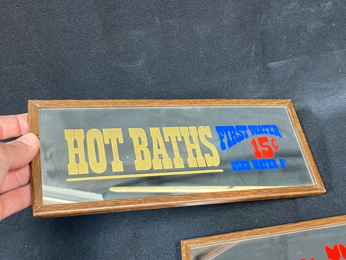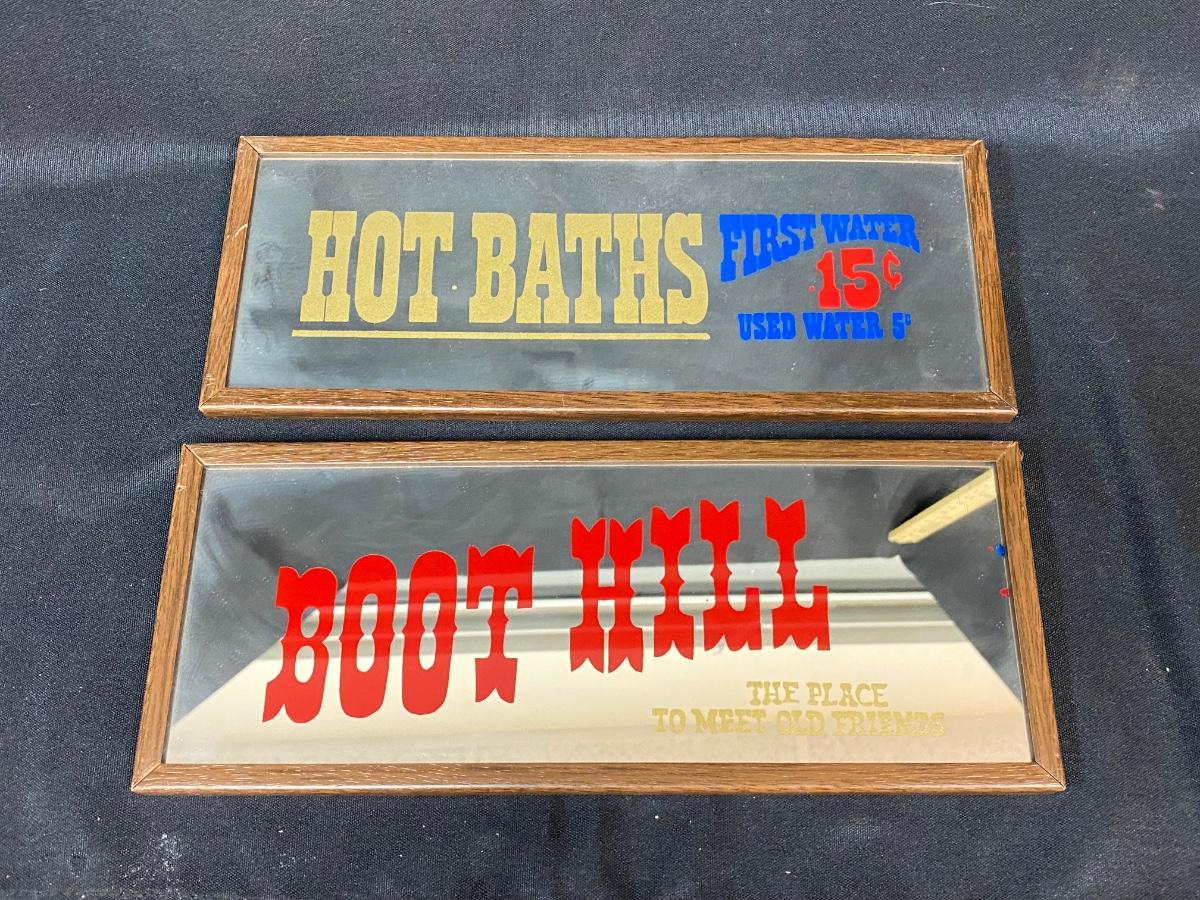 Pair of Vintage Americana Novelty Mirrored Wall Signs Bar Game Room Man Cave Decor. In good condition, just dusty.