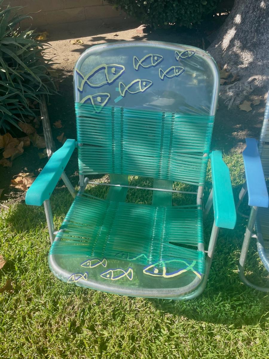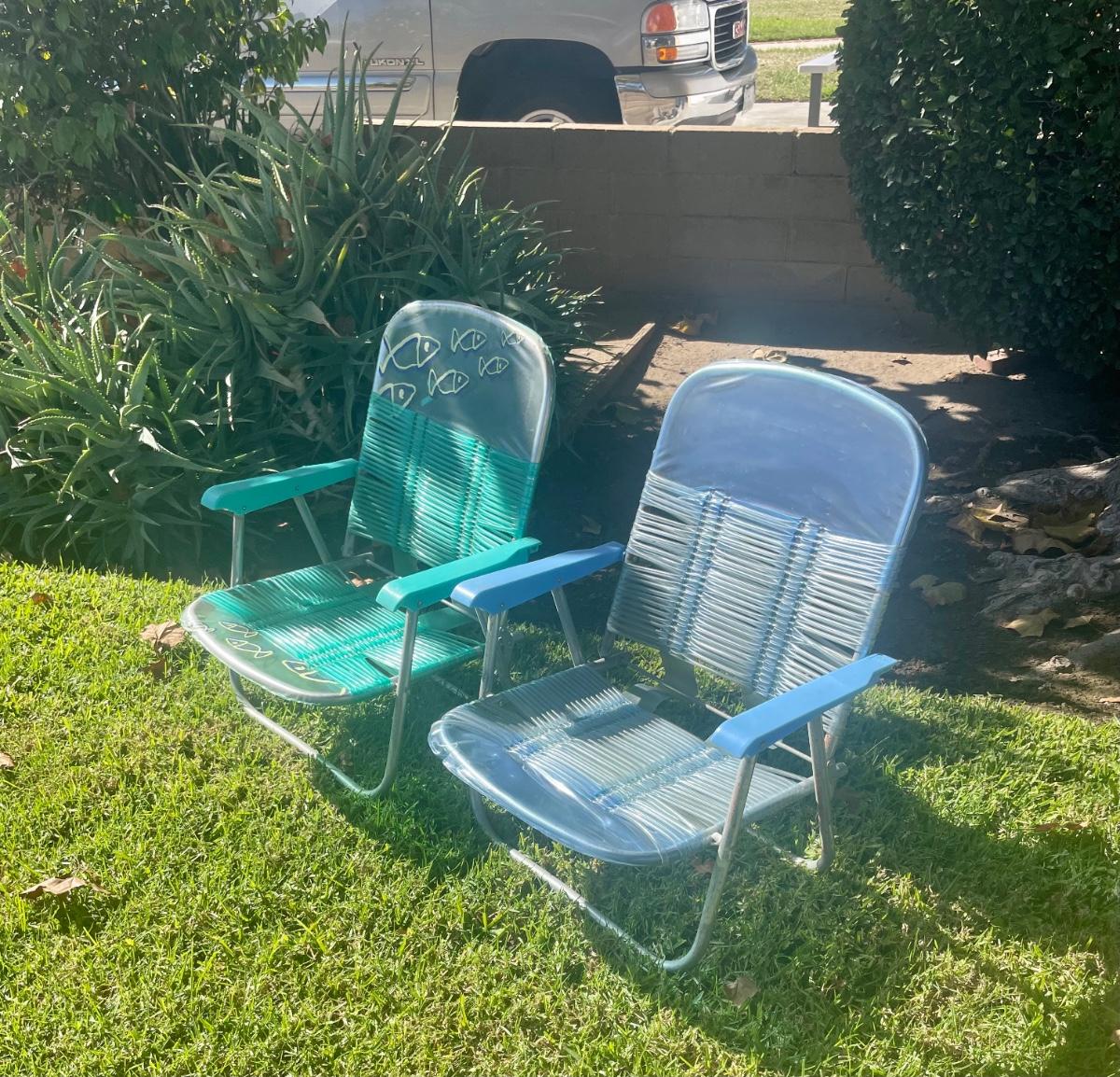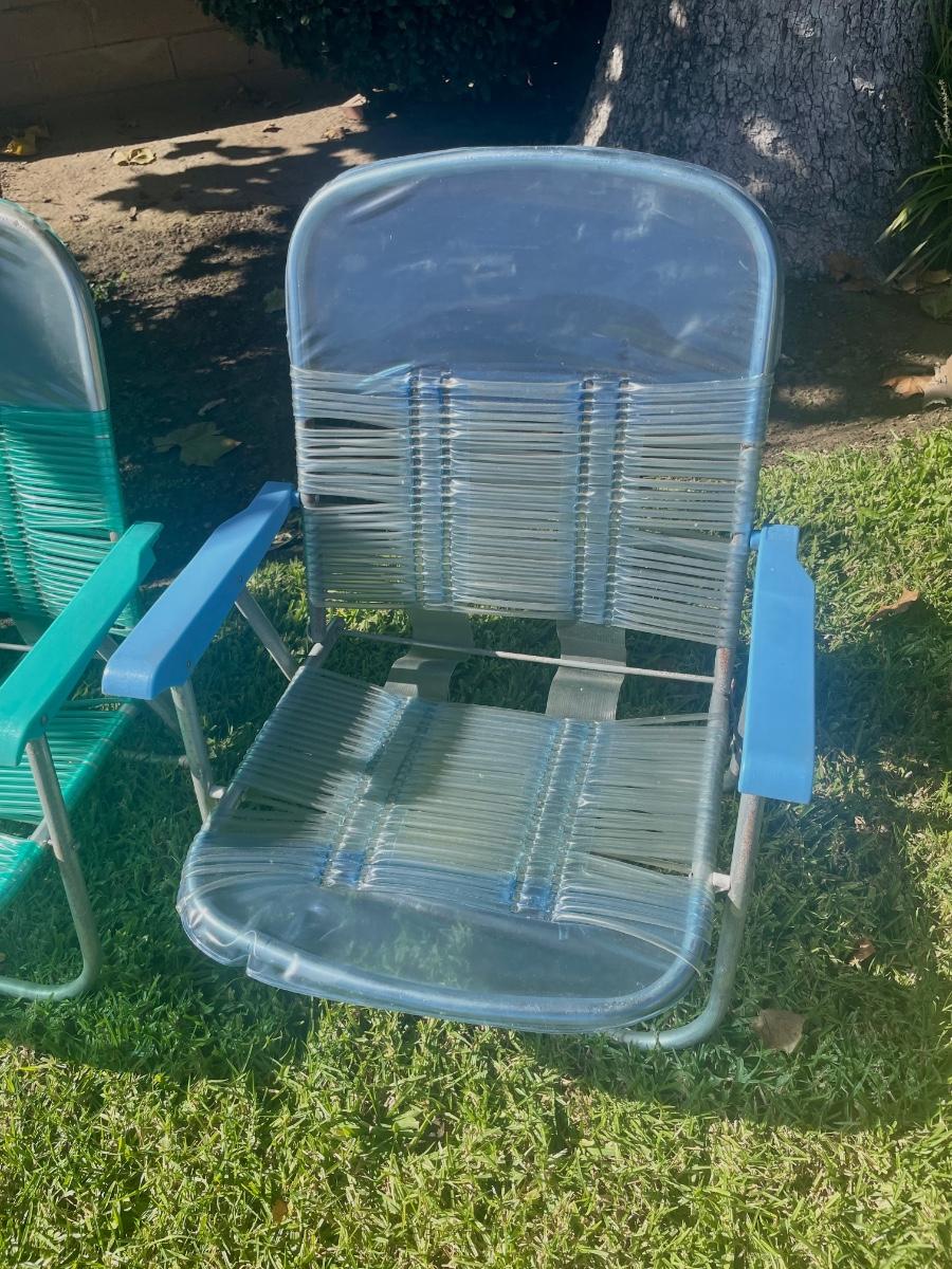 Retro Vintage Vinyl Plastic Beach Pool Folding Chairs. Vintage condition.