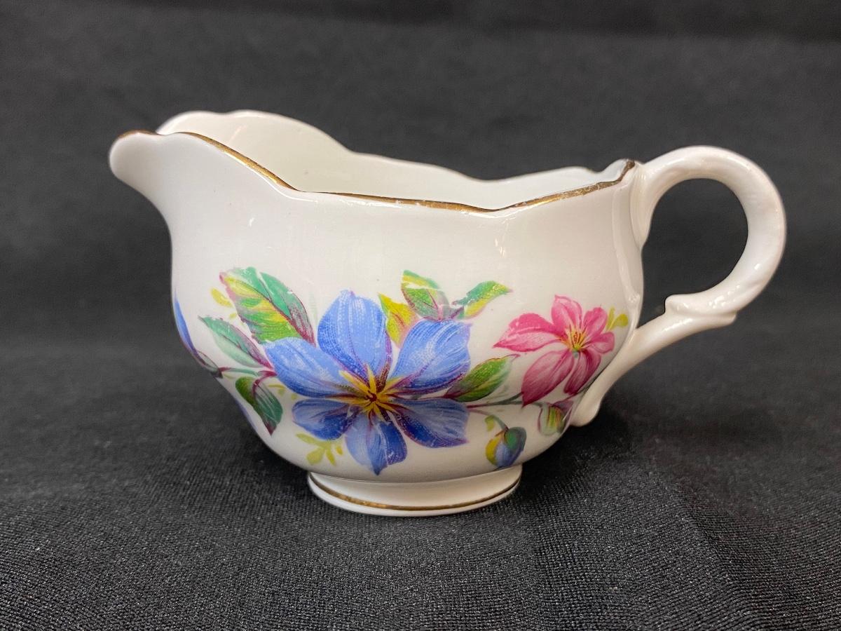 Vintage Melba Bone China Blue & Pink Floral Cream Pitcher