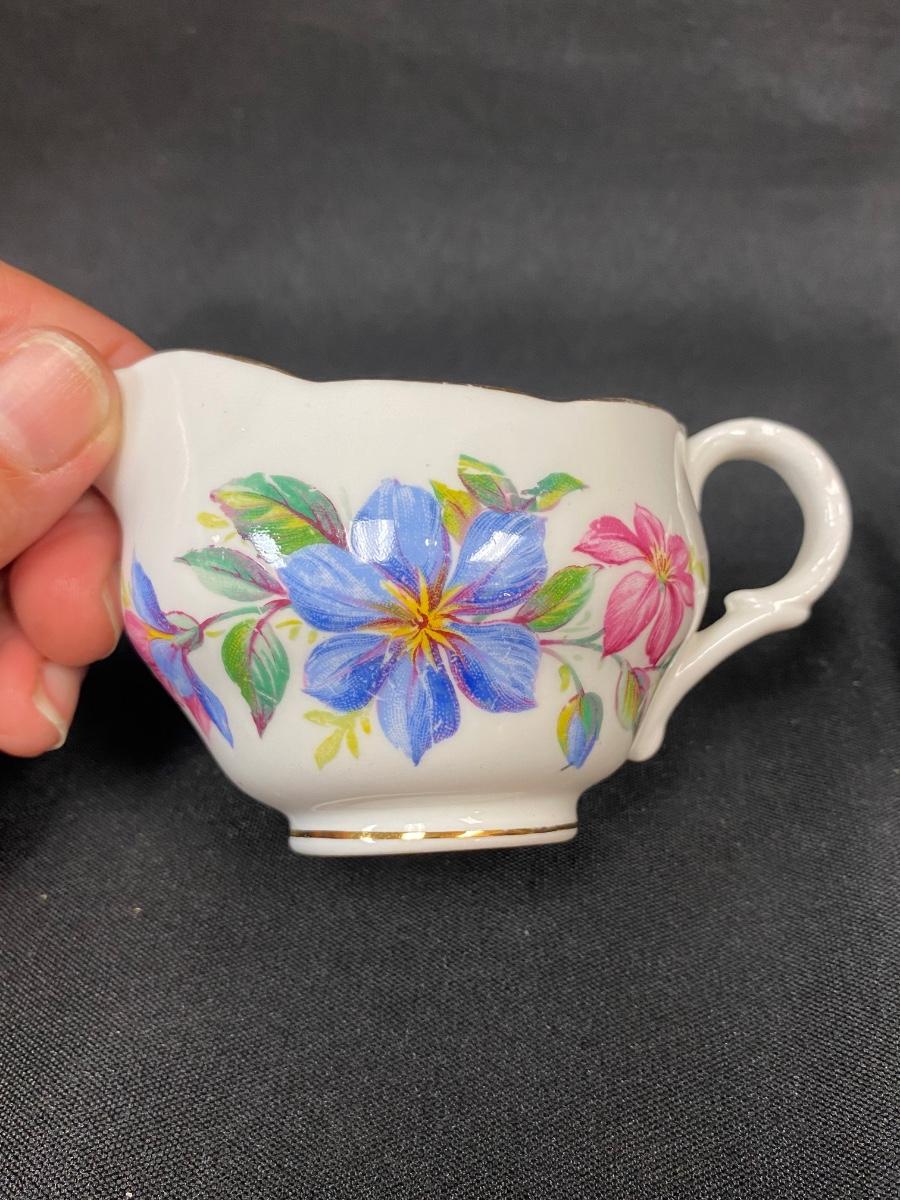 Vintage Melba Bone China Blue & Pink Floral Cream Pitcher. In good condition, some light wear.
