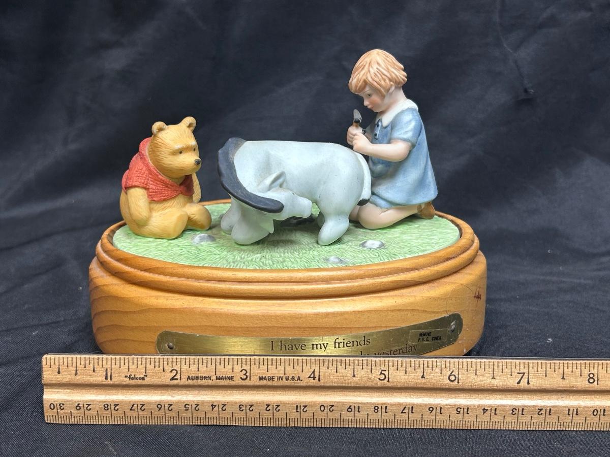 Winnie the Pooh Music Box Porcelain on Wood Base