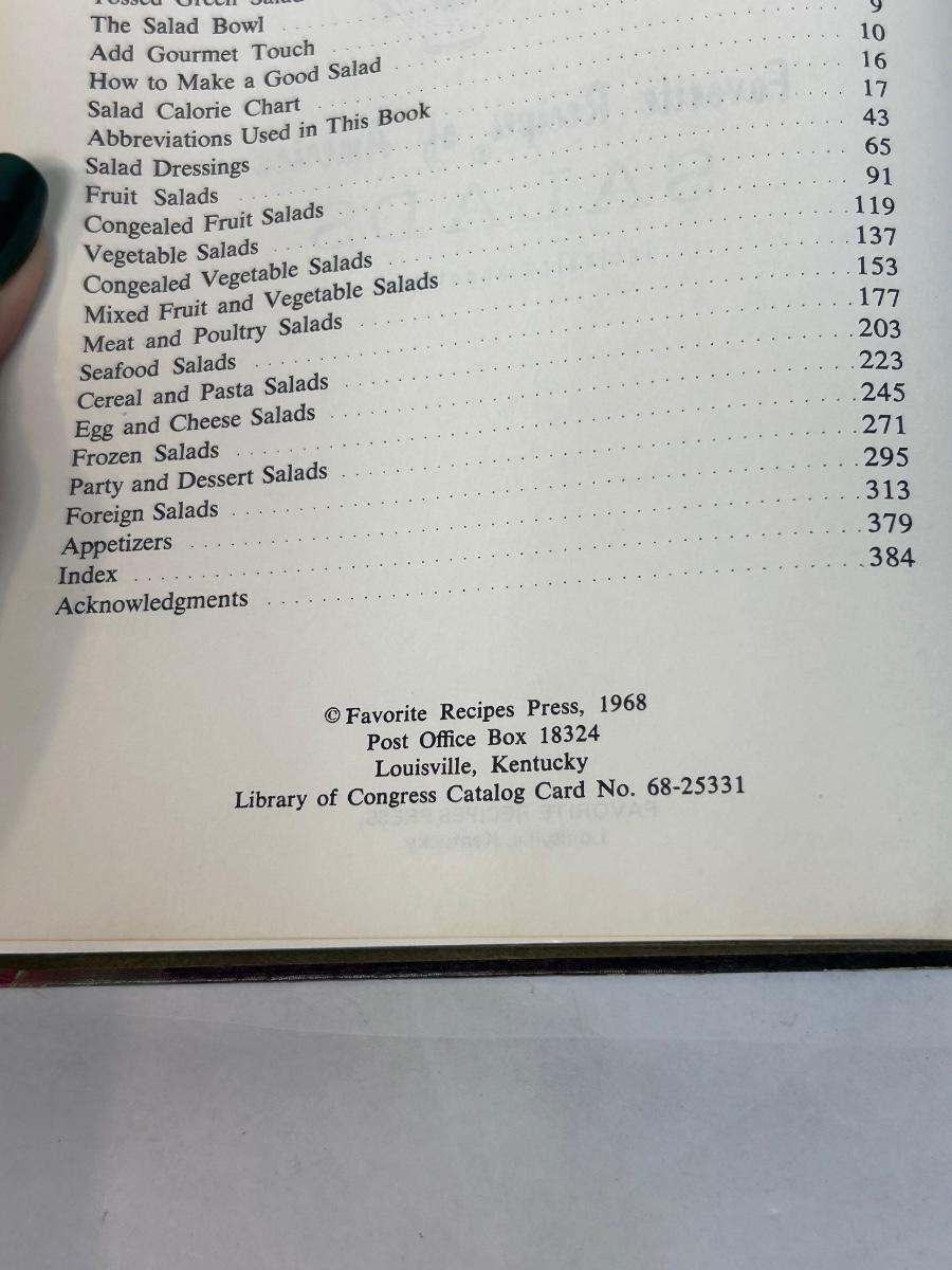 Vintage 1968 Favorite Recipes of America Salads Including Appetizers Edition. In good vintage condition. Great recipes and photos.