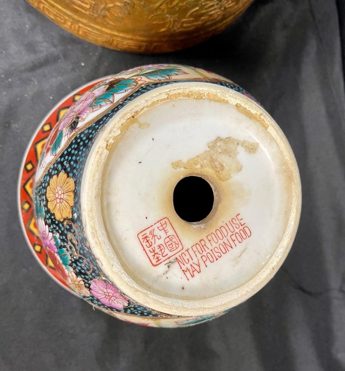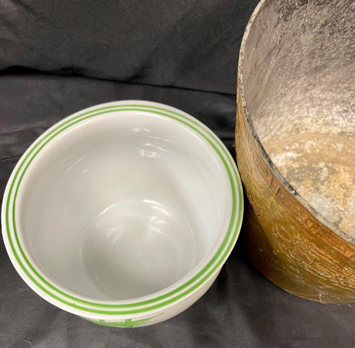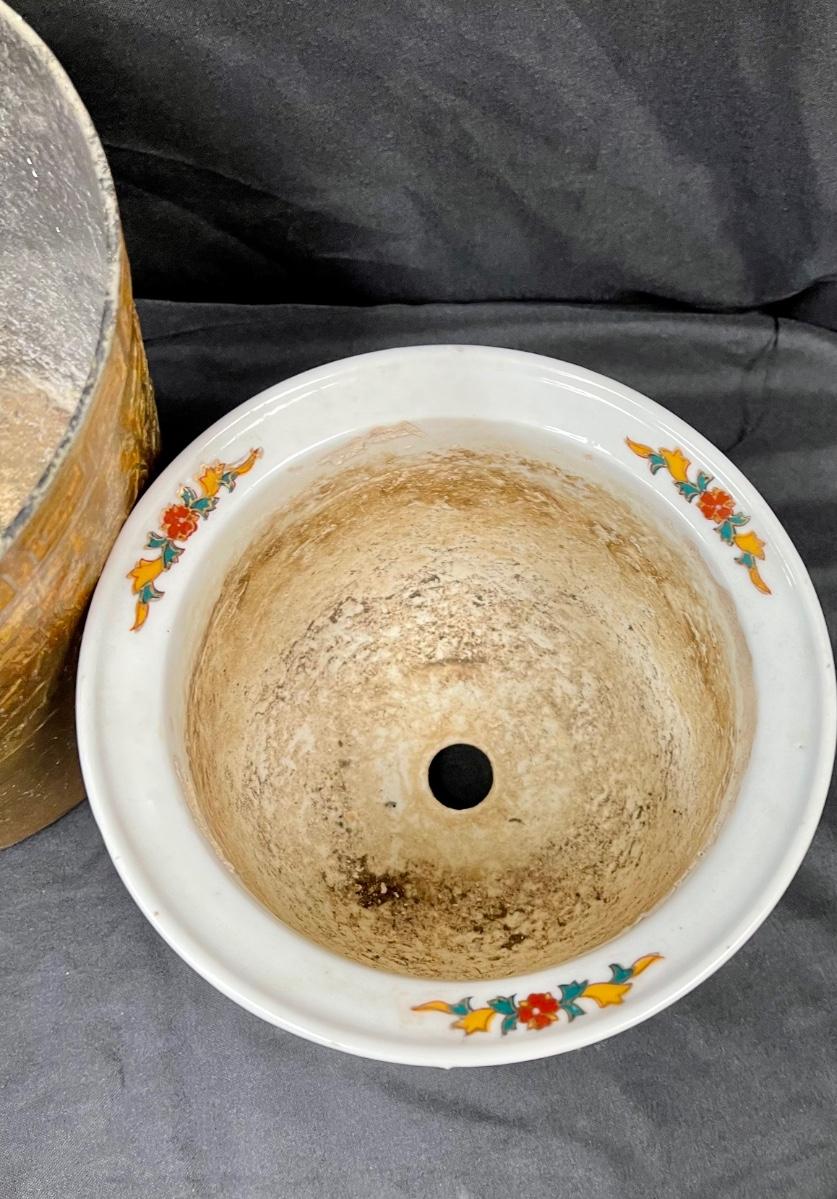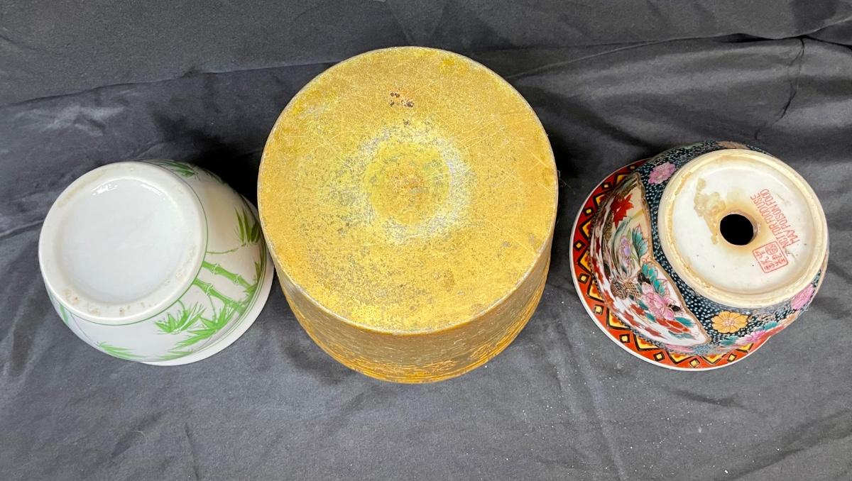 Lot of Three Previously Used Planter Pots Asian Motif Bamboo Greek Key