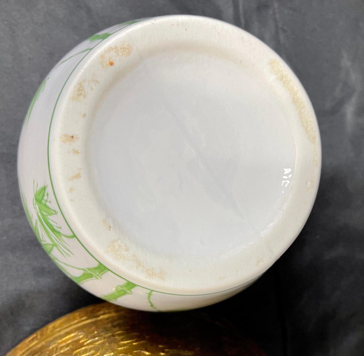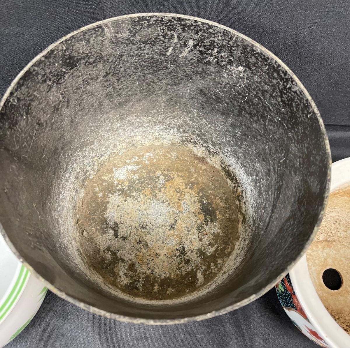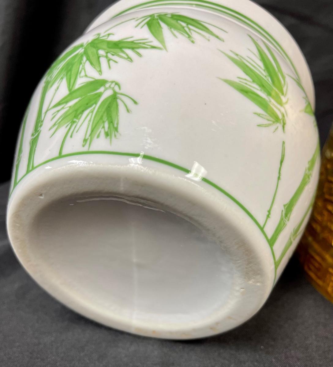 Lot of Three Previously Used Planter Pots Asian Motif Bamboo Greek Key. In used condition.