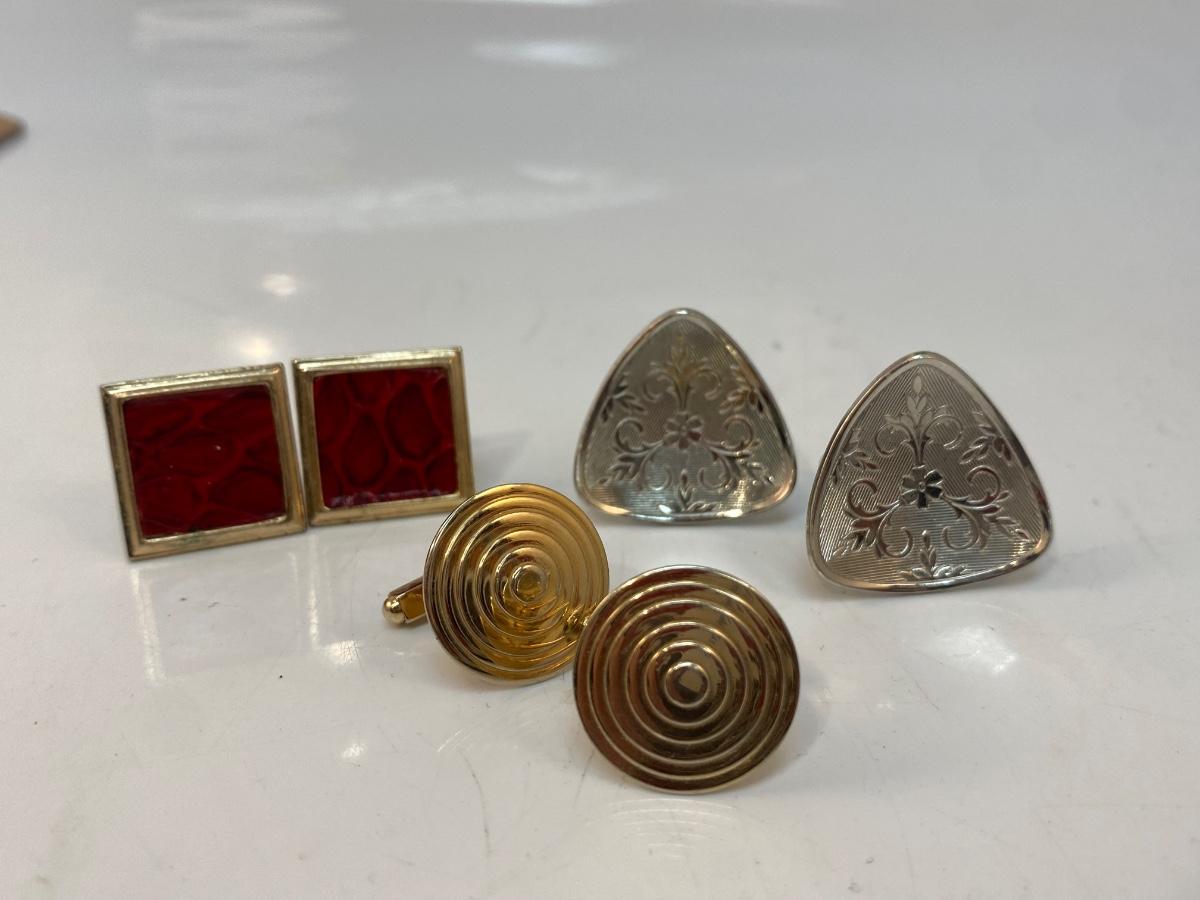 Three Sets of Vintage Unbranded Cuff Links. Each set different, in good condition.
