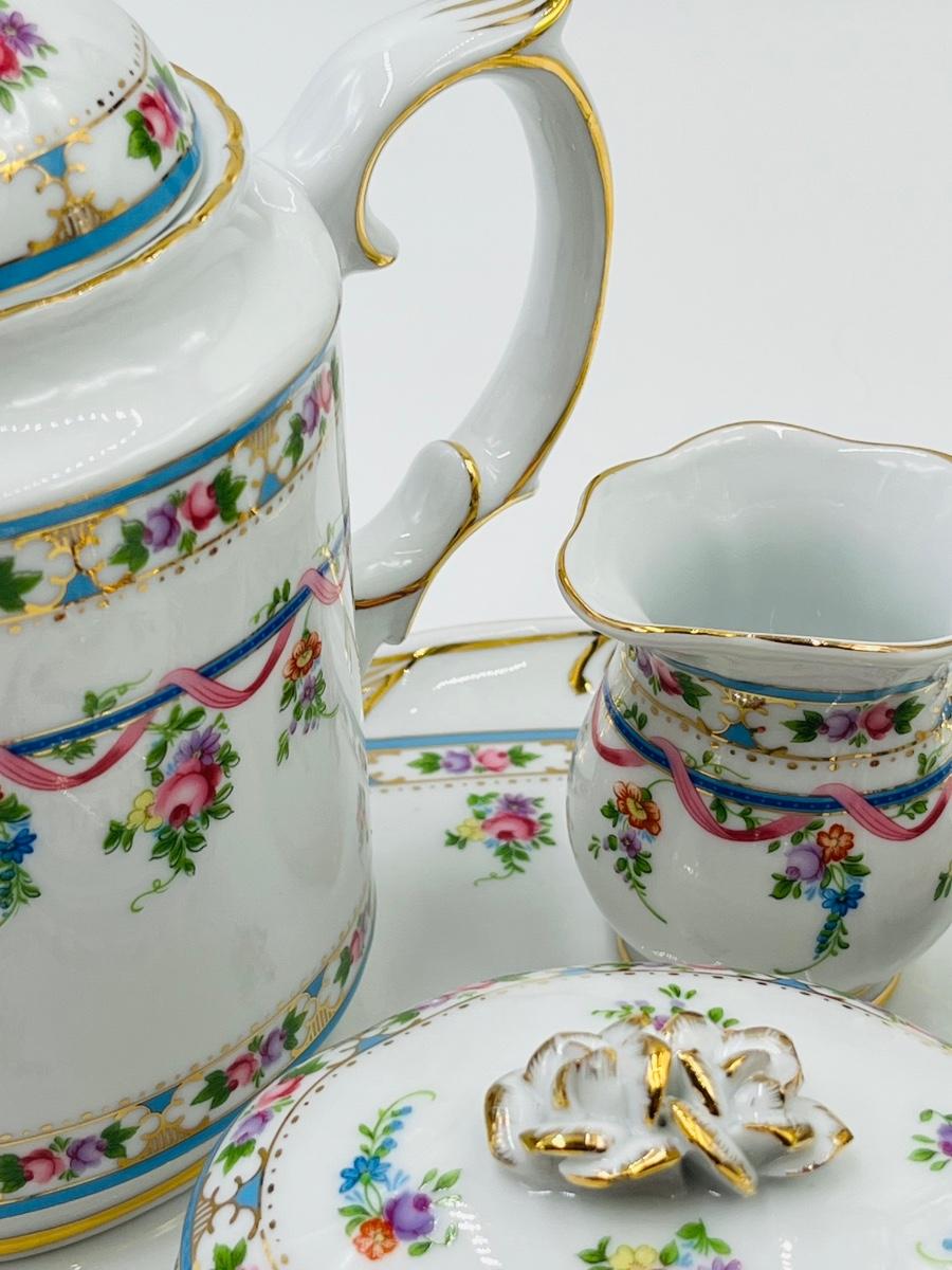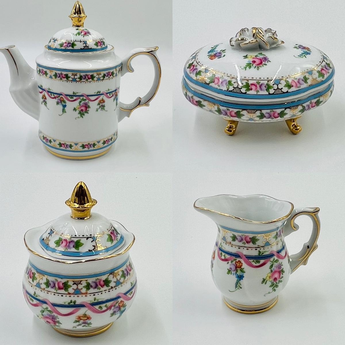 Set of Eight Piece (8) Gold Rimmed Porcelain Tea Set