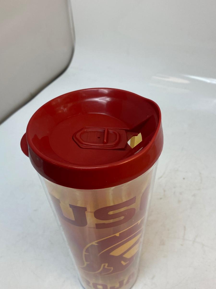 USC Trojans Plastic Insulated Travel Cup. Good previously owned condition. 22oz size.