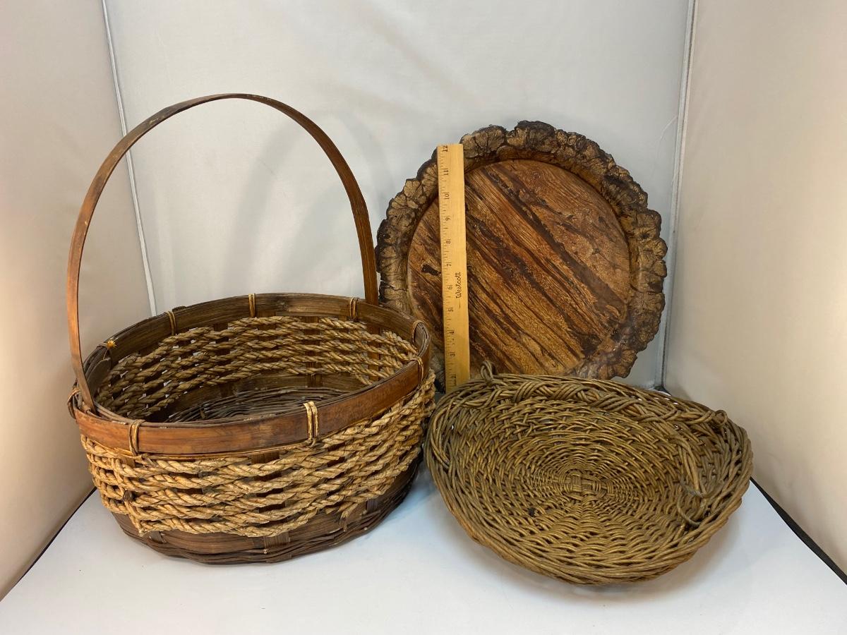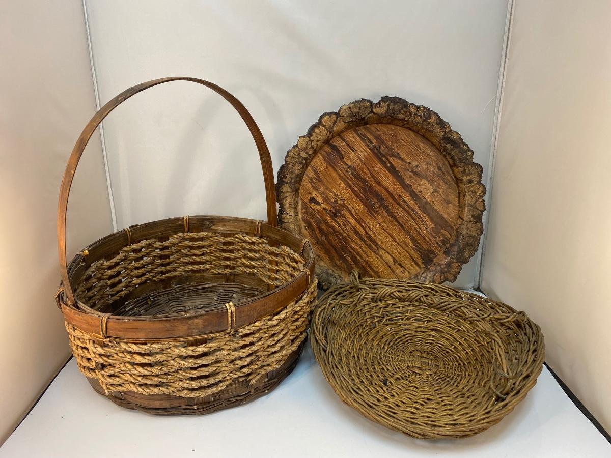 Rustic Home Decor Item Lot Baskets and Wood Stump Log Rough Edge Tray