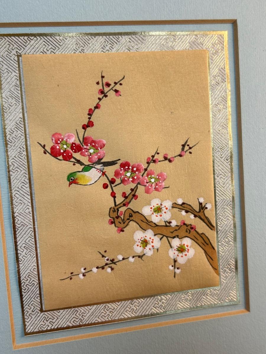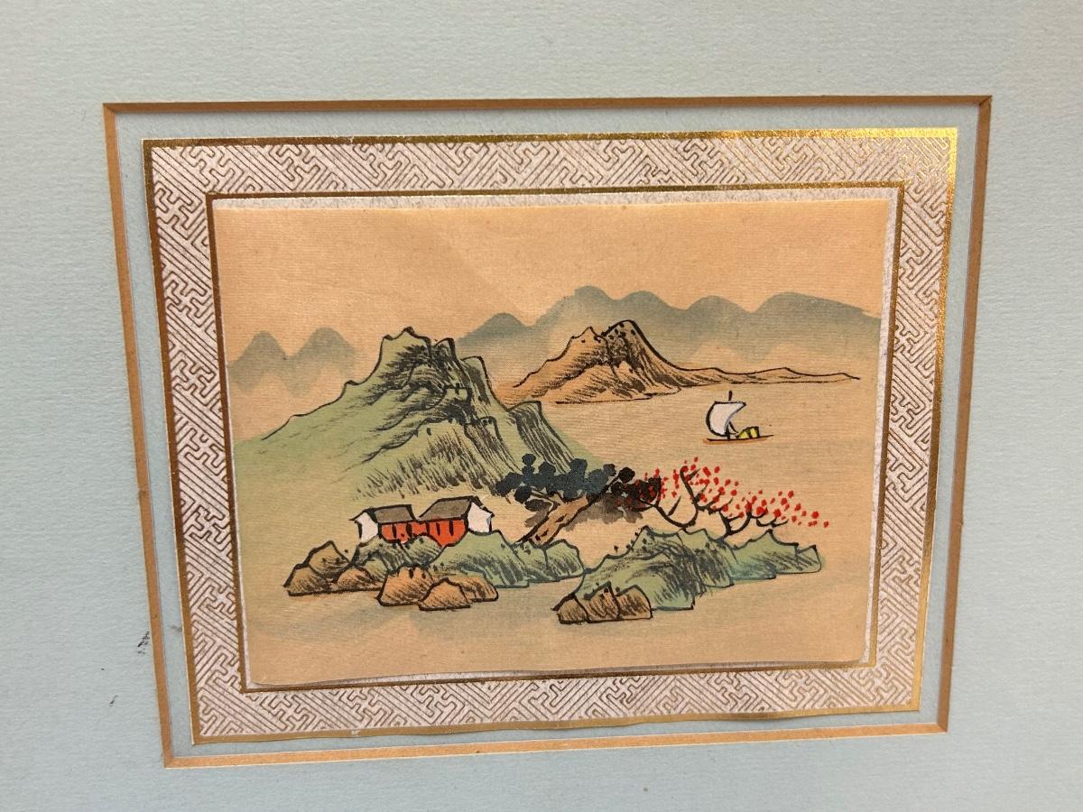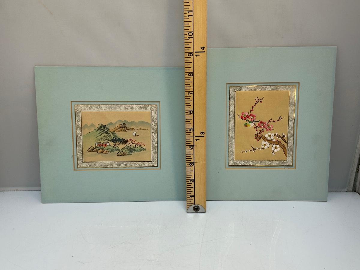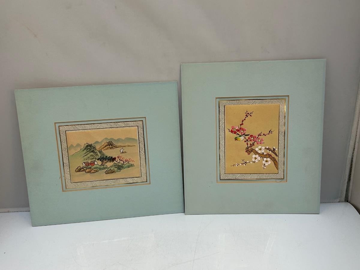 Pair of Small Hand Painted Asian Inspired Unframed Wall Art. In good condition. Actual art is small compared to the mat it is on. Unsigned.