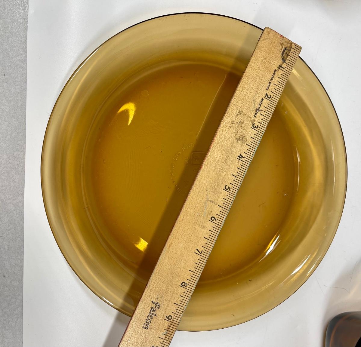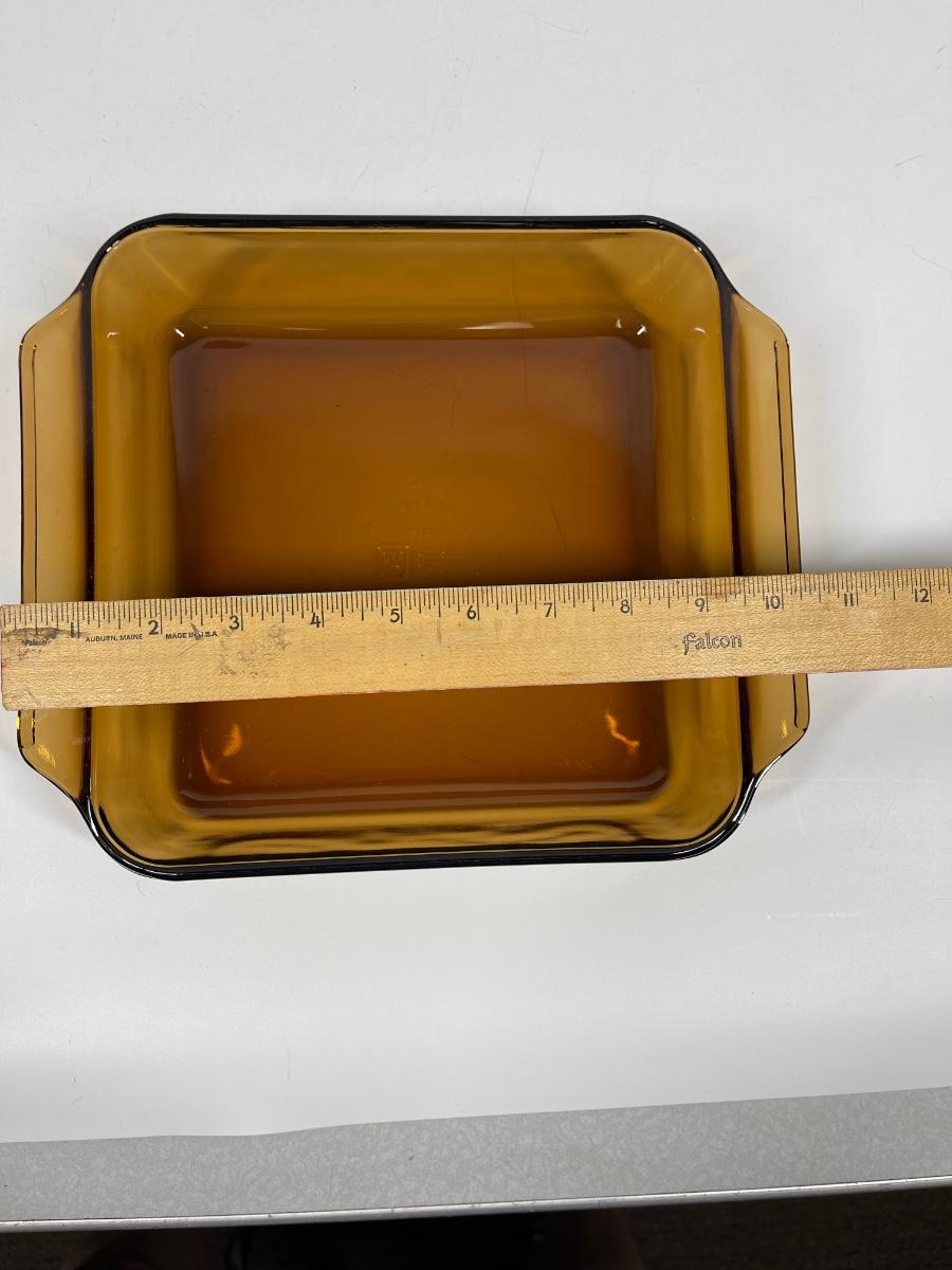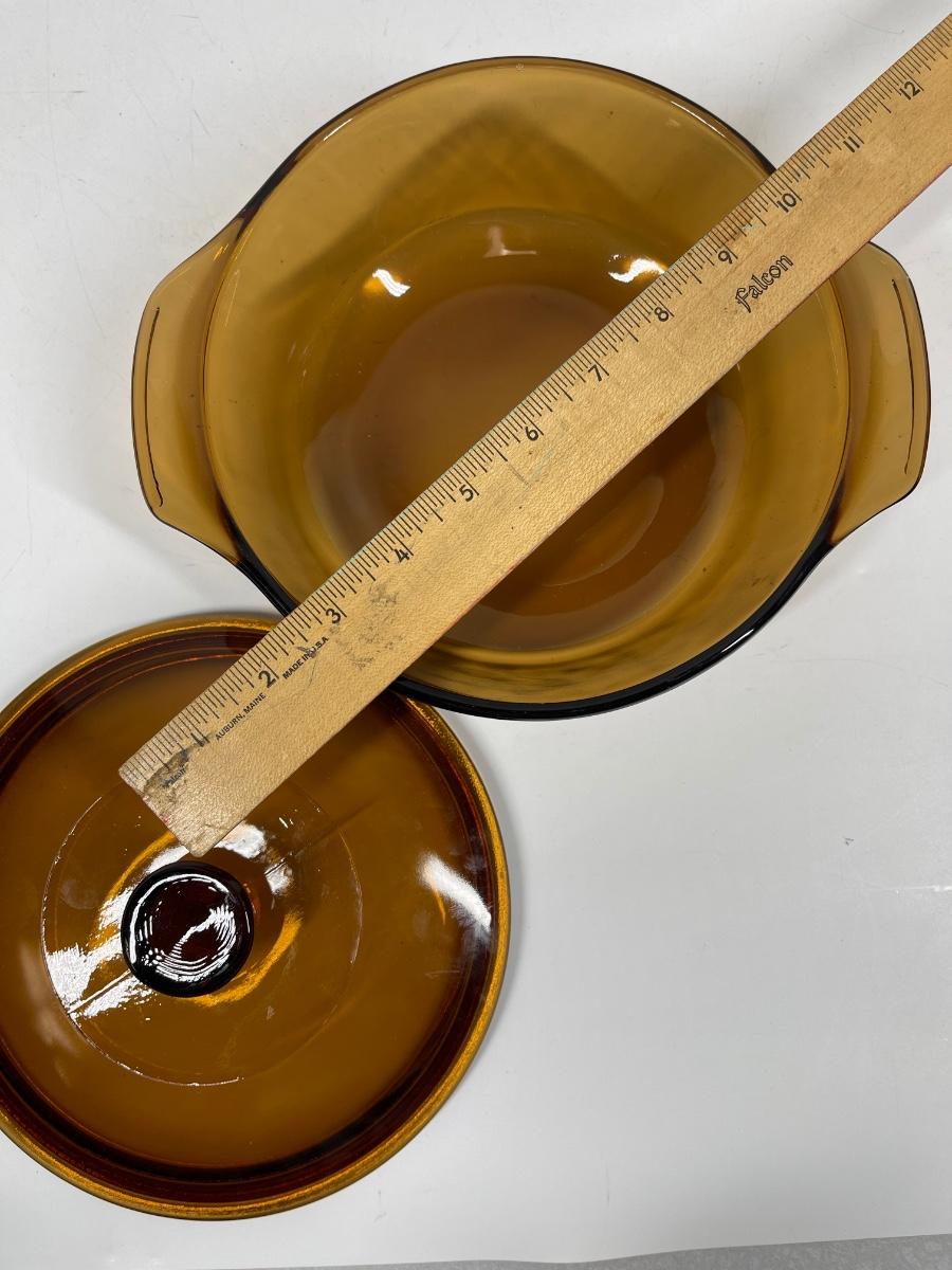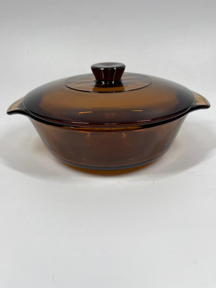 Set of Three Anchor Hocking Amber Glass Cookware Bakeware Pie Plate Loaf Pan Casserole Dish with Lid