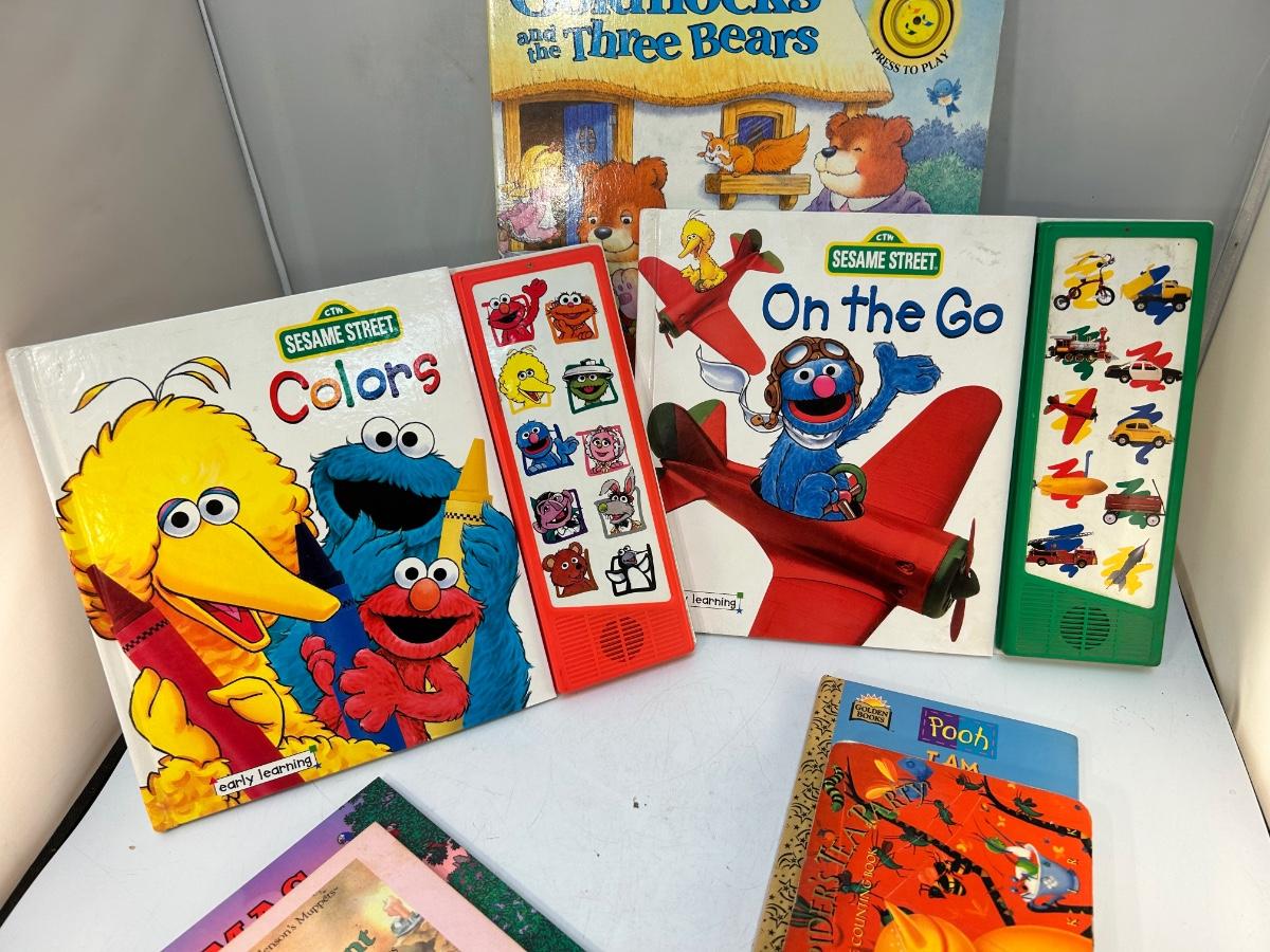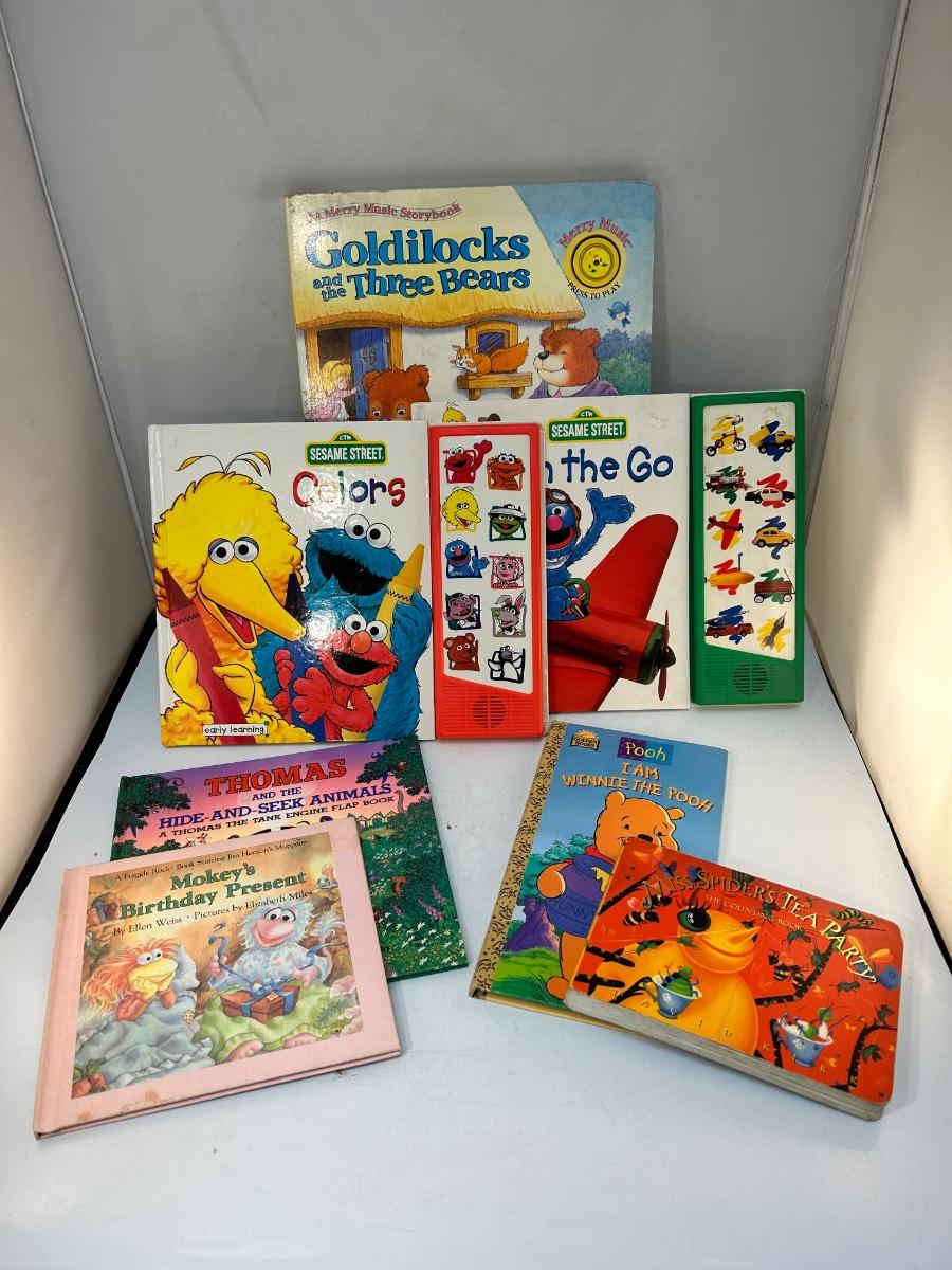 Young Reader Kids Childrens Books Sesame Street Pooh Thomas the Train. Some are board books, and some have sound. All are in previously read condition.