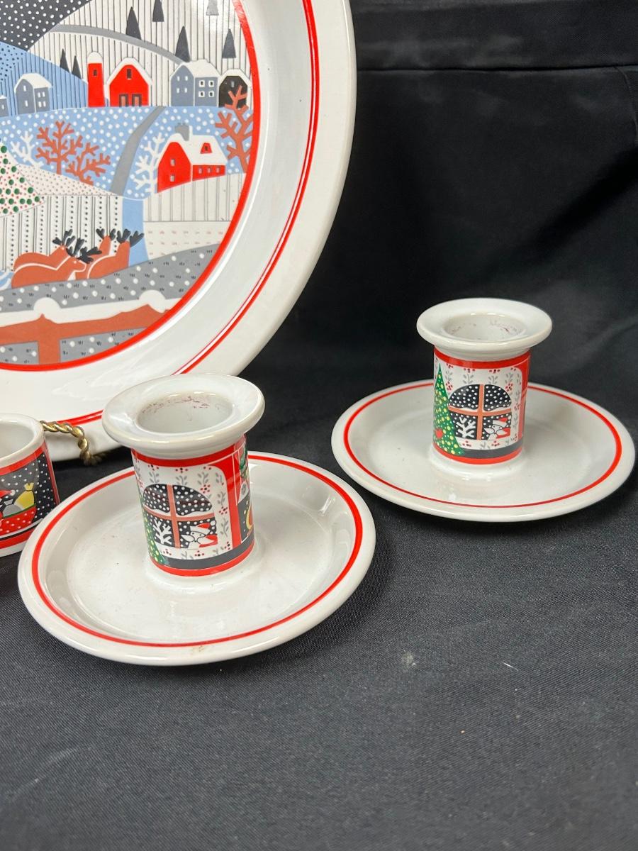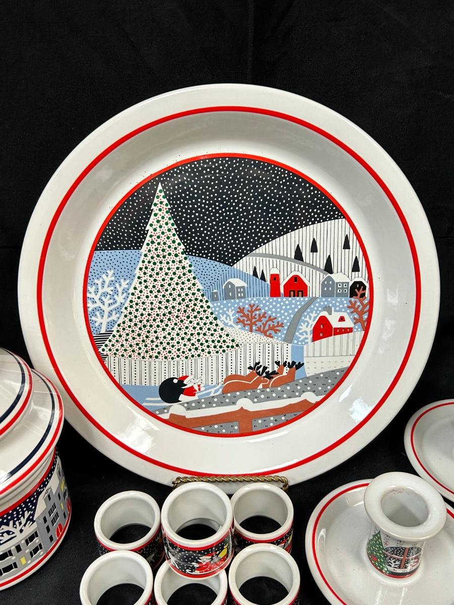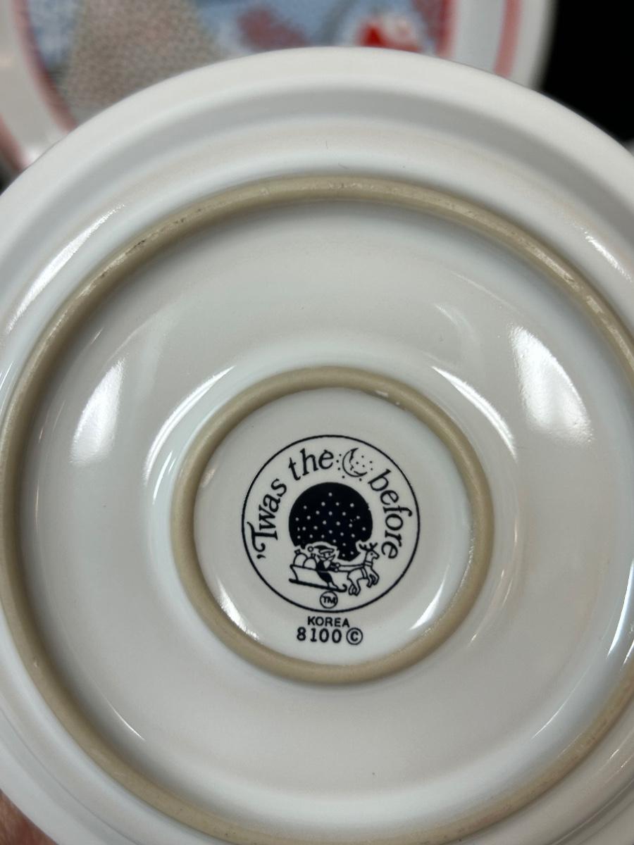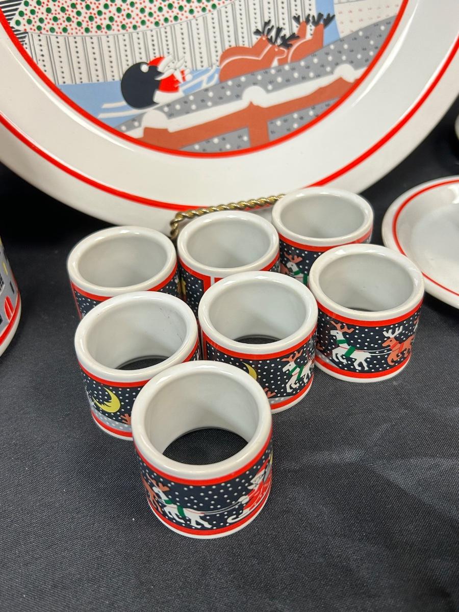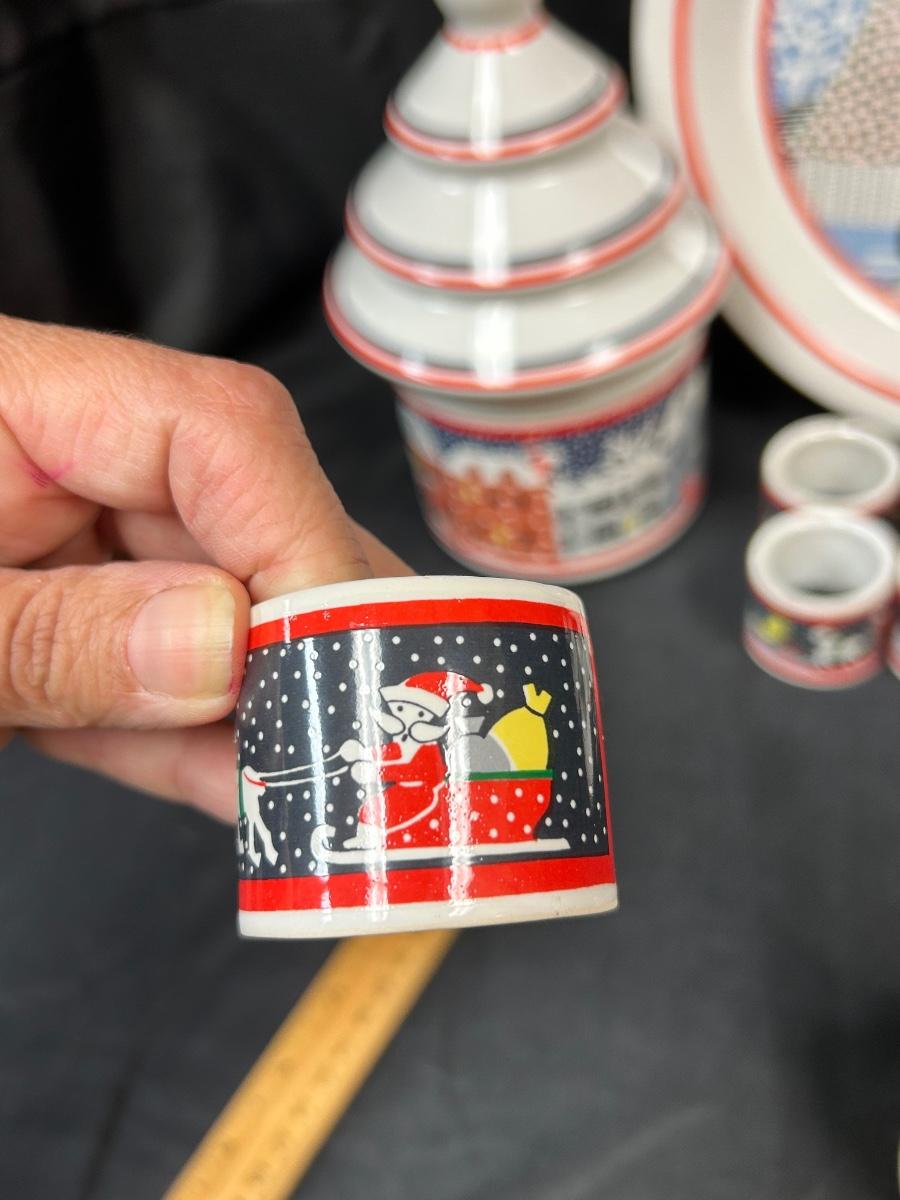 Twas the Night Before Dishware Accent Pieces Napkin Rings Bells Serving Plate Candle Holders Small Cookie Jar Korea. Great for adding to any Christmas decor and tableware. In good condition, no chips.