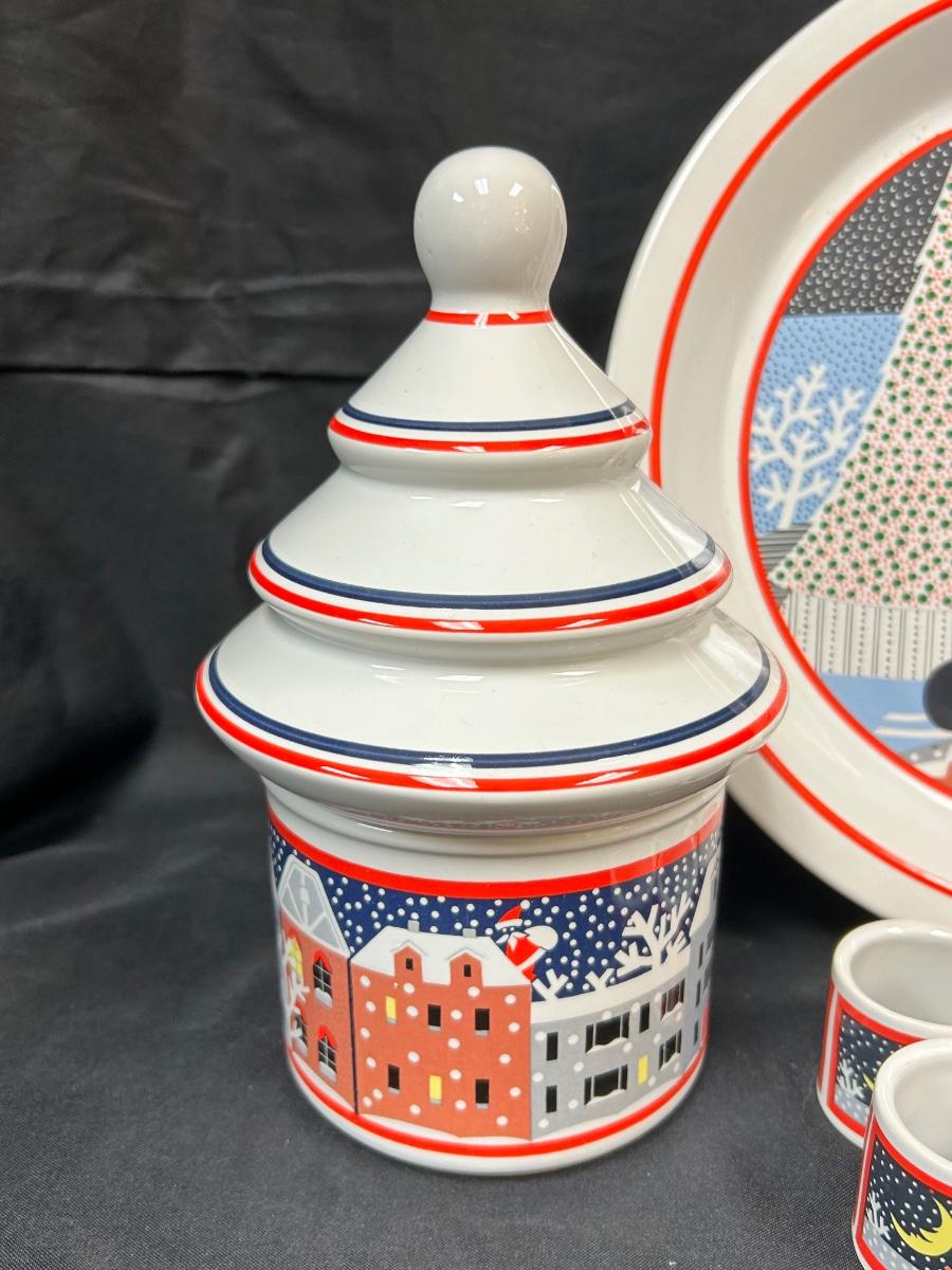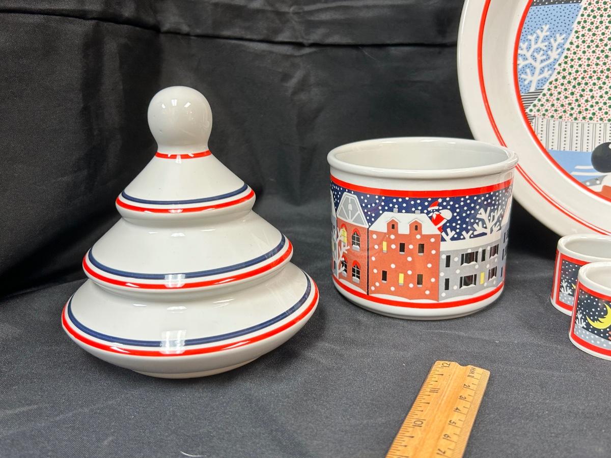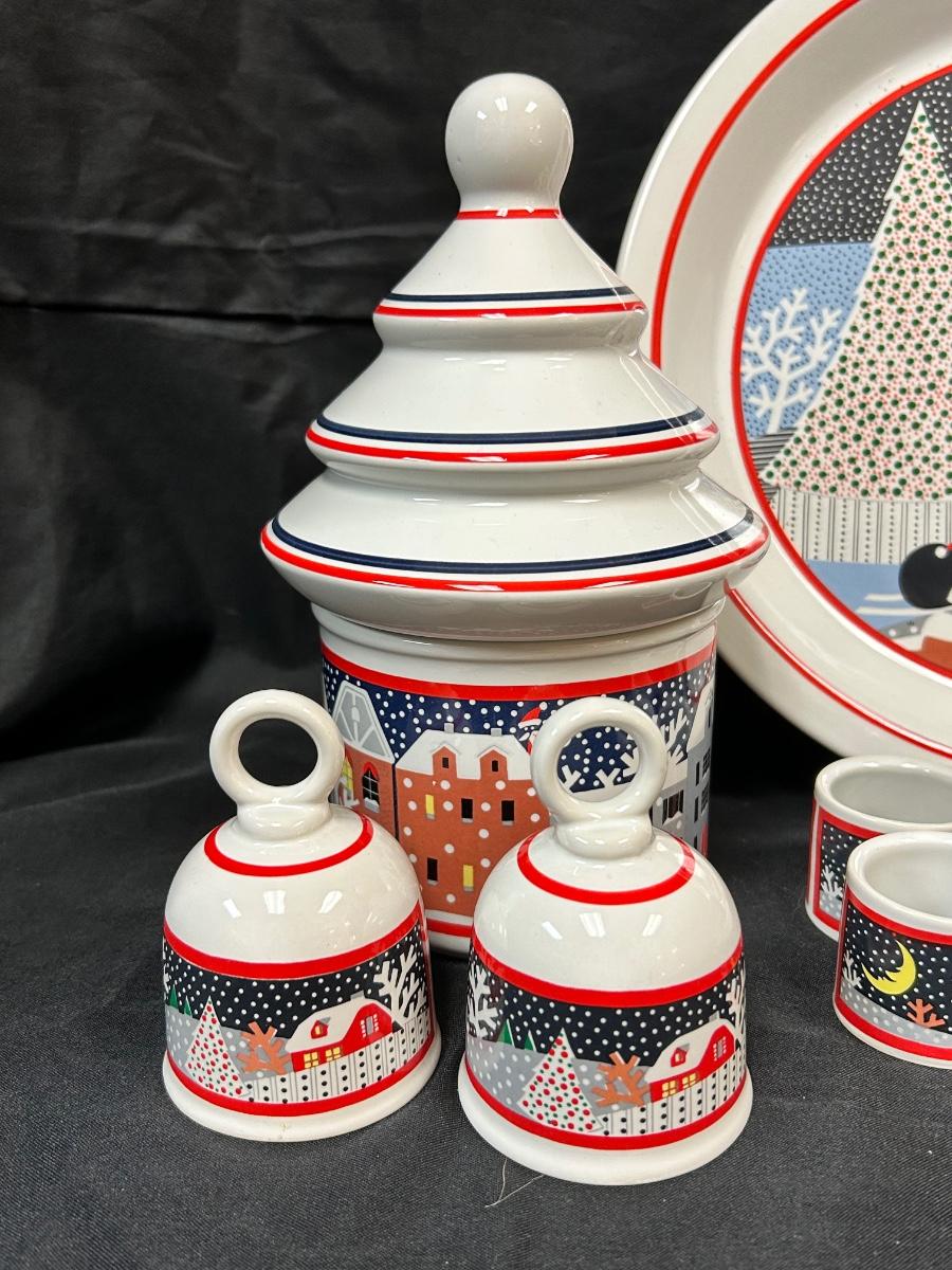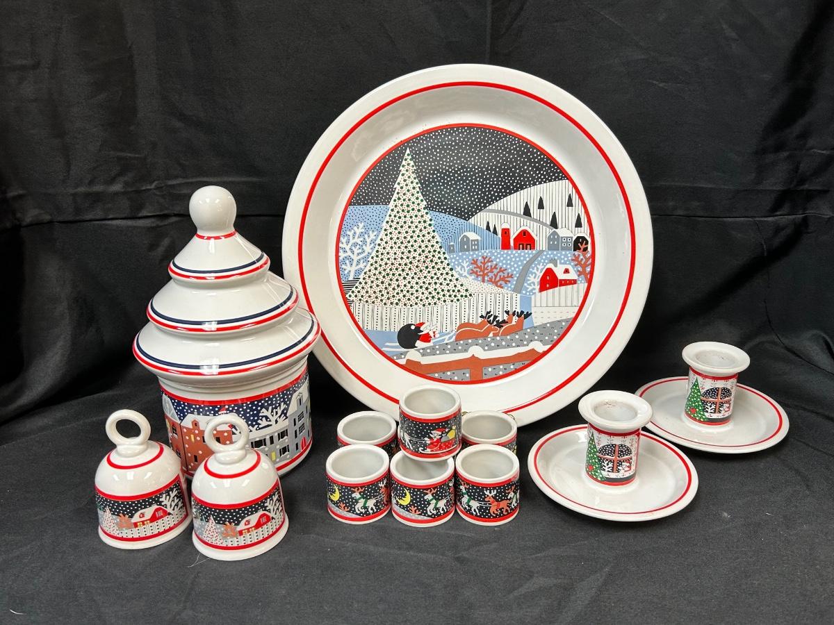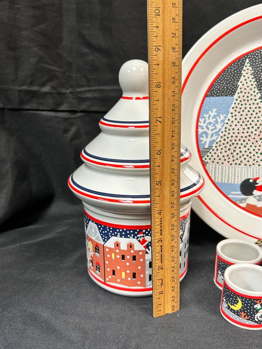 Twas the Night Before Dishware Accent Pieces Napkin Rings Bells Serving Plate Candle Holders Small Cookie Jar Korea. Great for adding to any Christmas decor and tableware. In good condition, no chips.