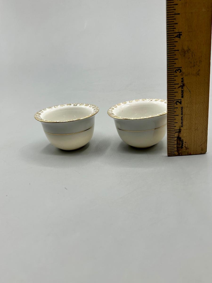 Pair of Small Vintage White with Gold Ceramic Egg Cup Handless Demitasse Teacup Bowl Czechoslovakia