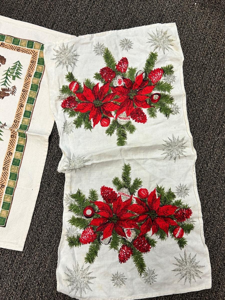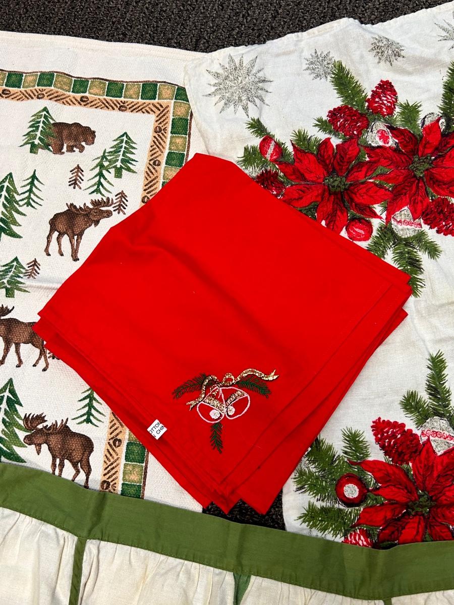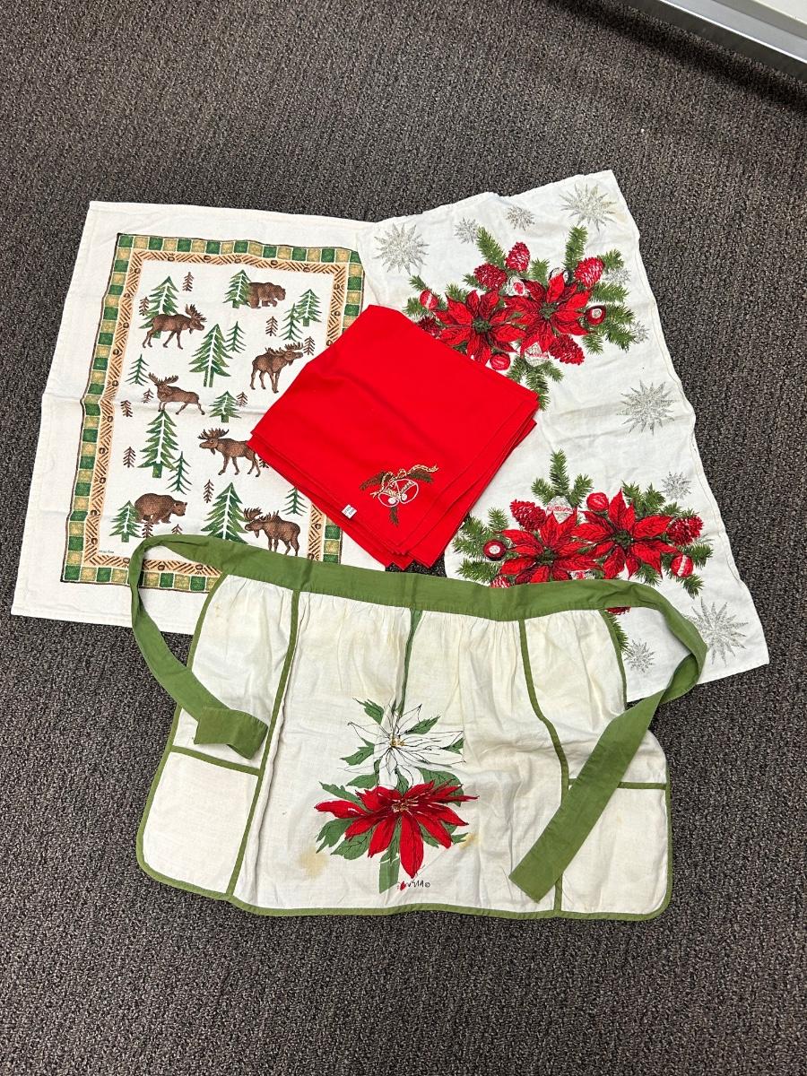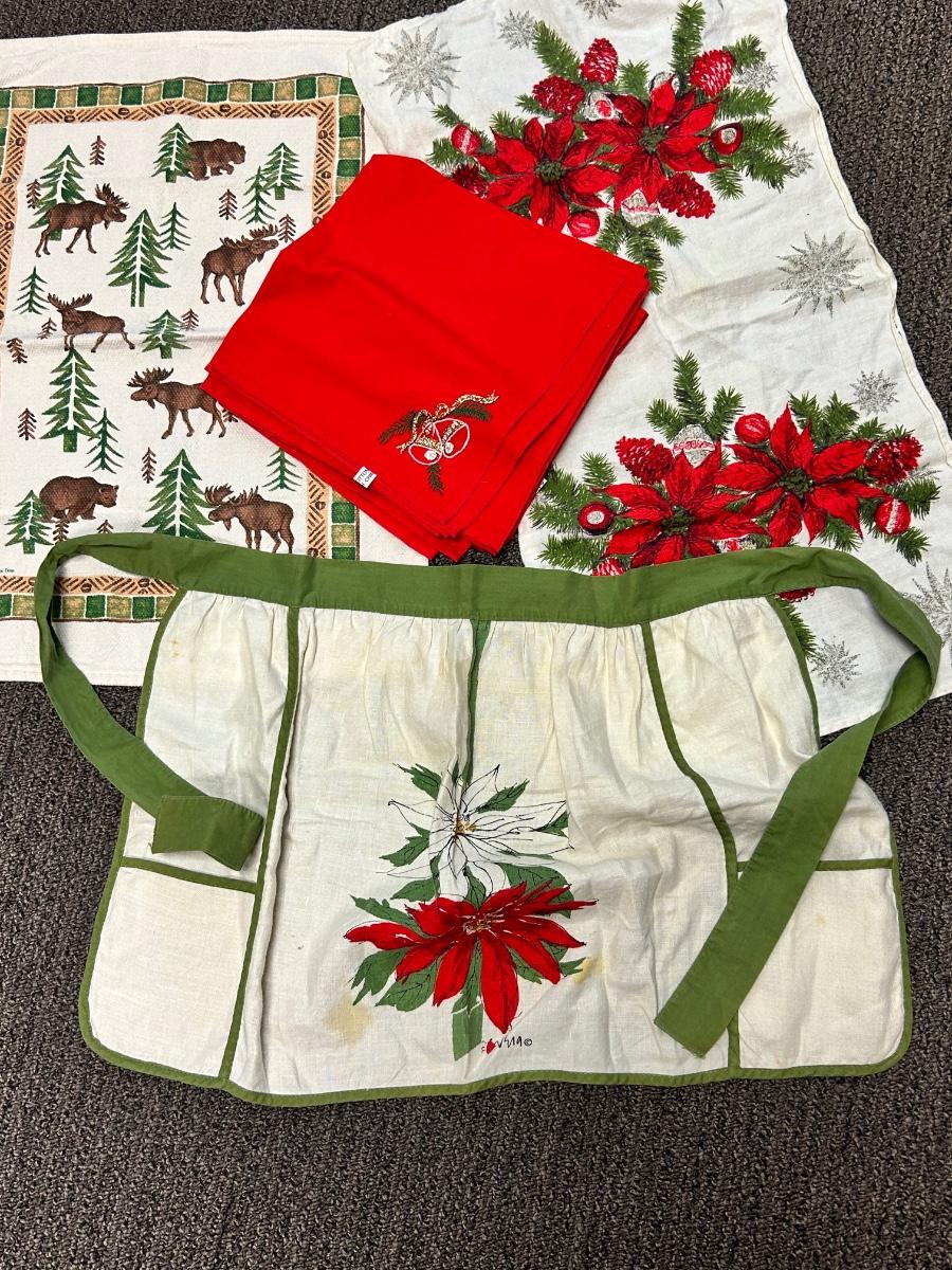 Mixed Lot of Vintage Winter Seasonal Holiday Kitchen Linen Towels Half Apron Dinner Napkins