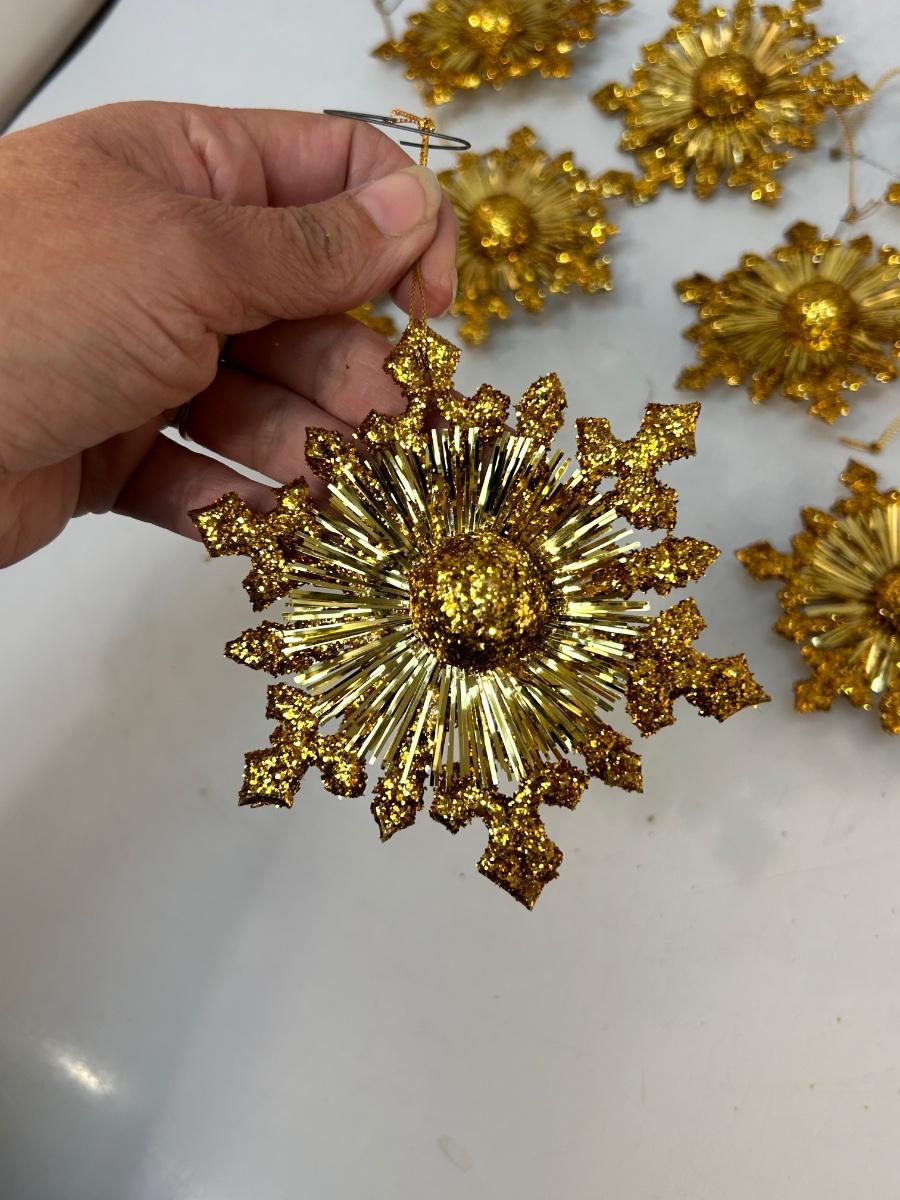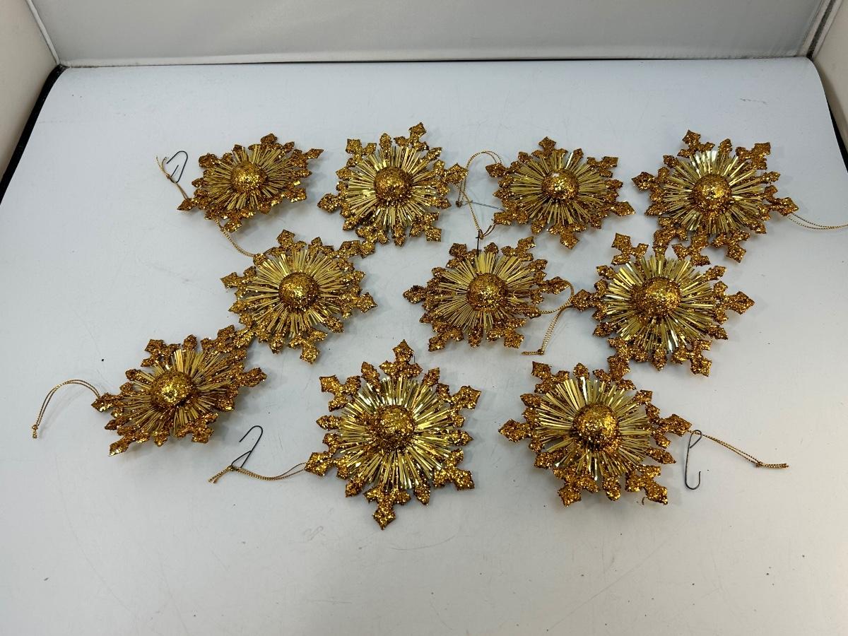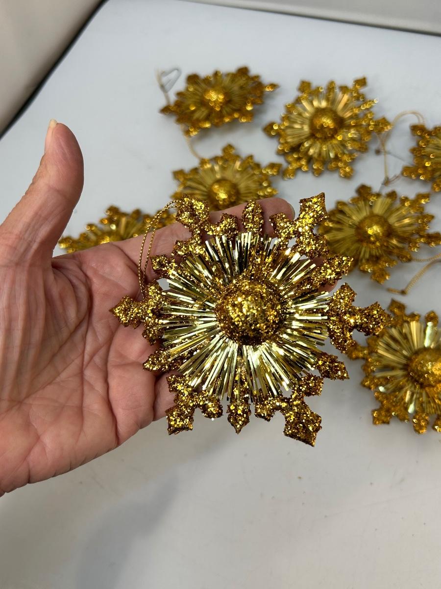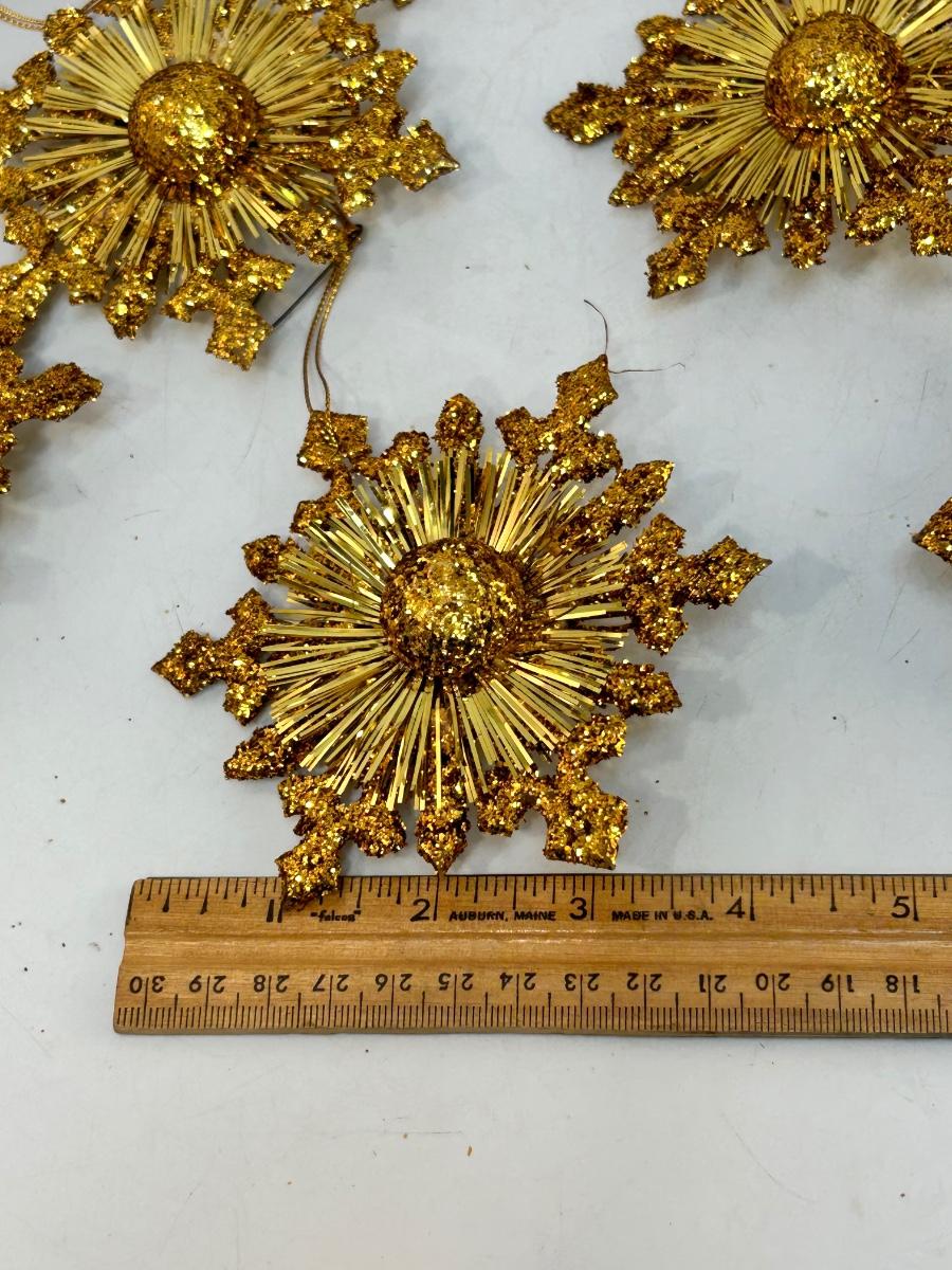 Vintage Gold Glitter Metallic Foil Star Starburst Hanging Christmas Holiday Tree Ornaments