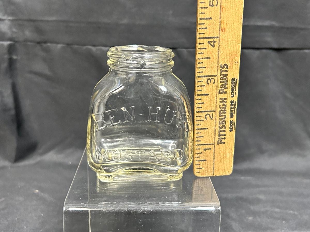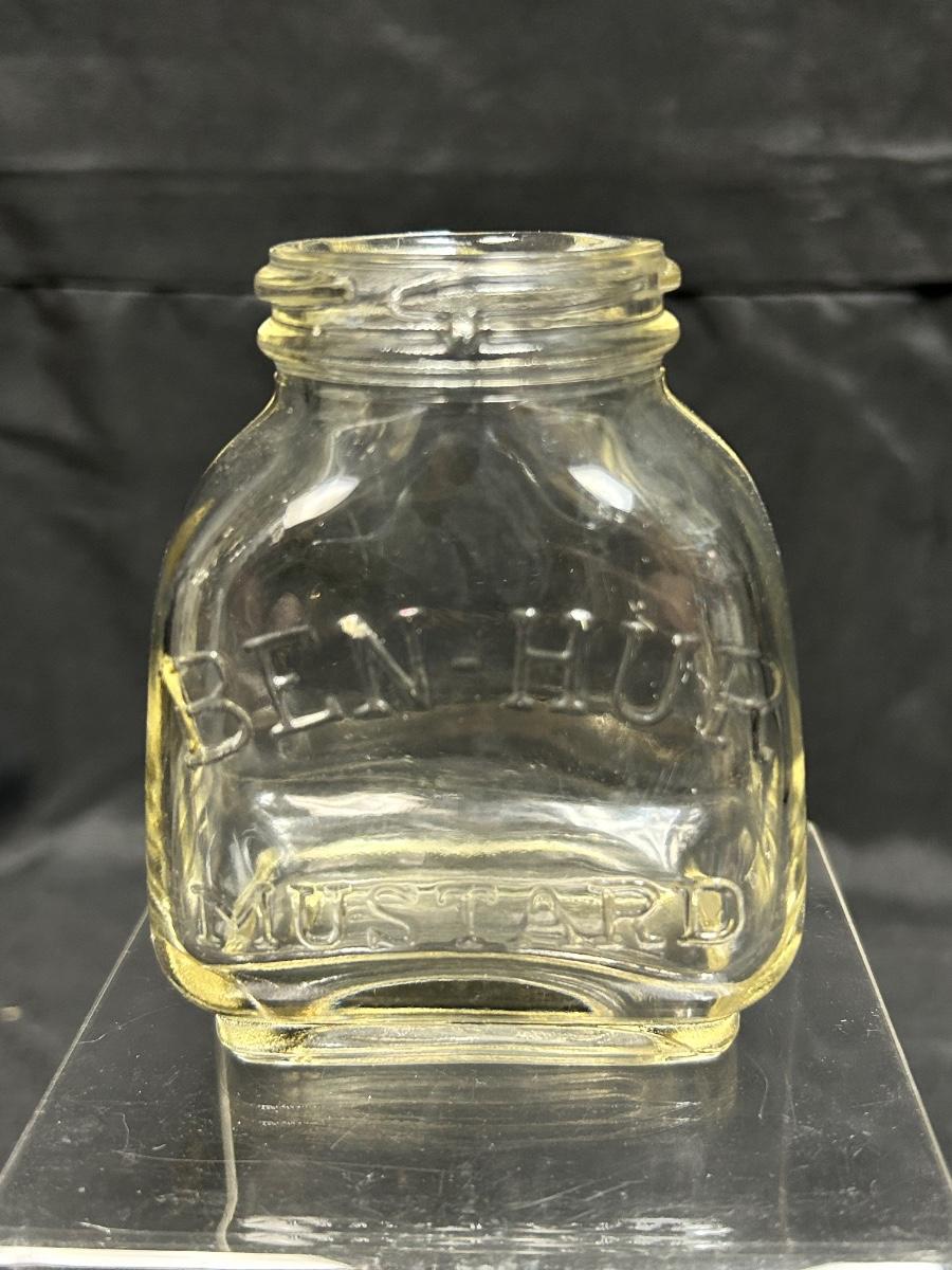 Vintage Ben-Hur Mustard Glass Jar No Lid. In good vintage condition. Unfortunately, no lid.