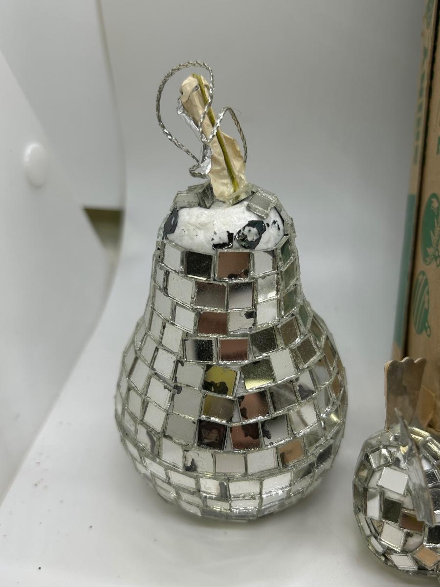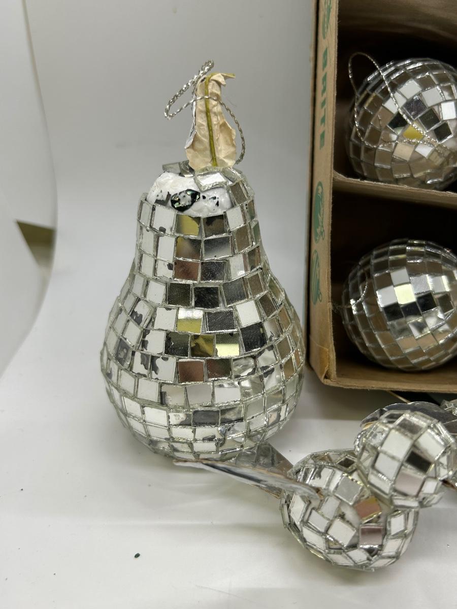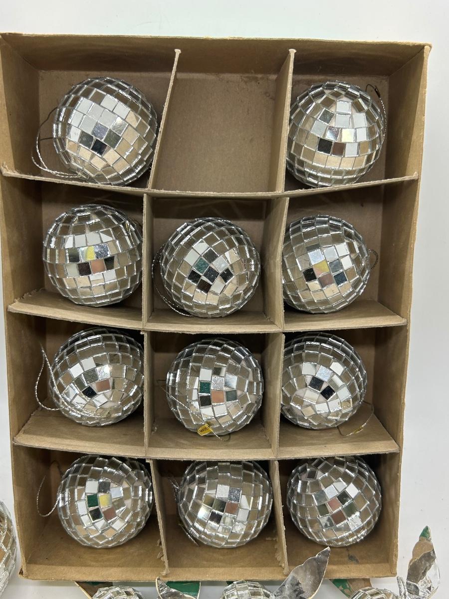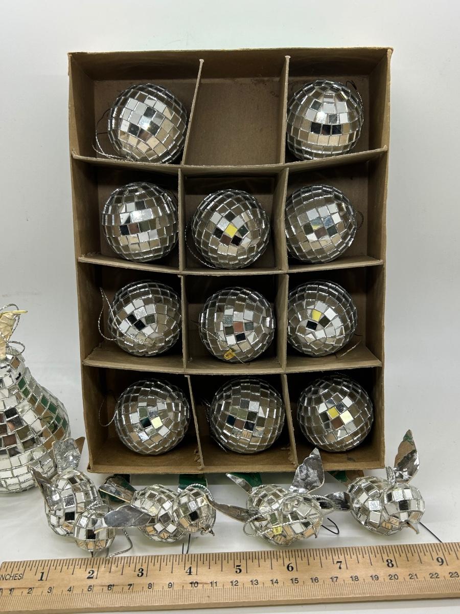 Mirror Ball Style Hanging Christmas Holiday Ornaments for Decor or Crafts. Mixed lot of styles. 11 mirror balls, 4 birds, and a pear shaped ornament. Great for adding sparkle to a tree or holiday wreath.