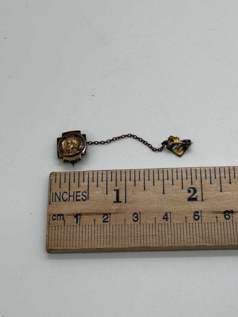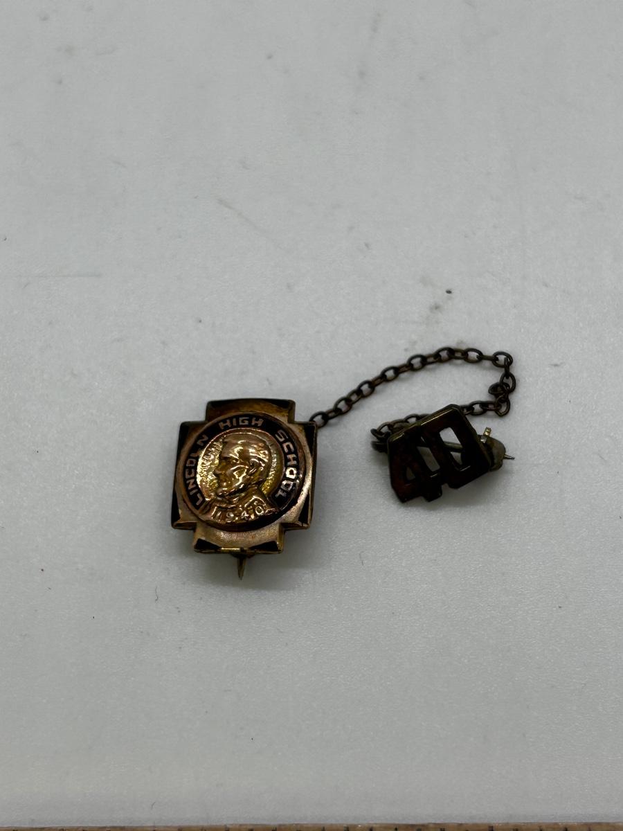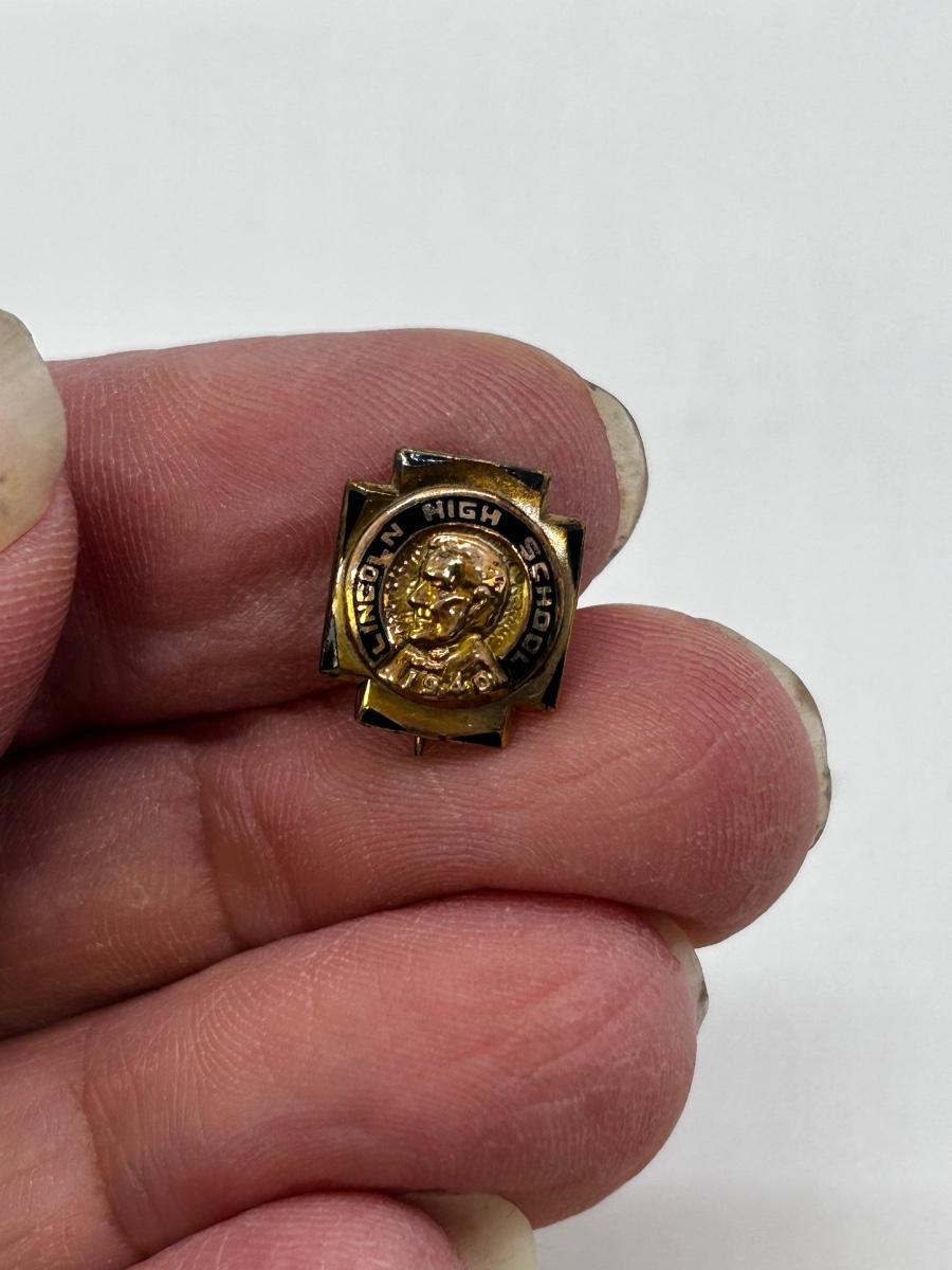 Vintage Lincoln High School Lapel Pin Graduating Year Service Pin 40. Unsure if it was graduating year of 1940 or 40 year service pin. No gold marks. There is initials on the back of pin.