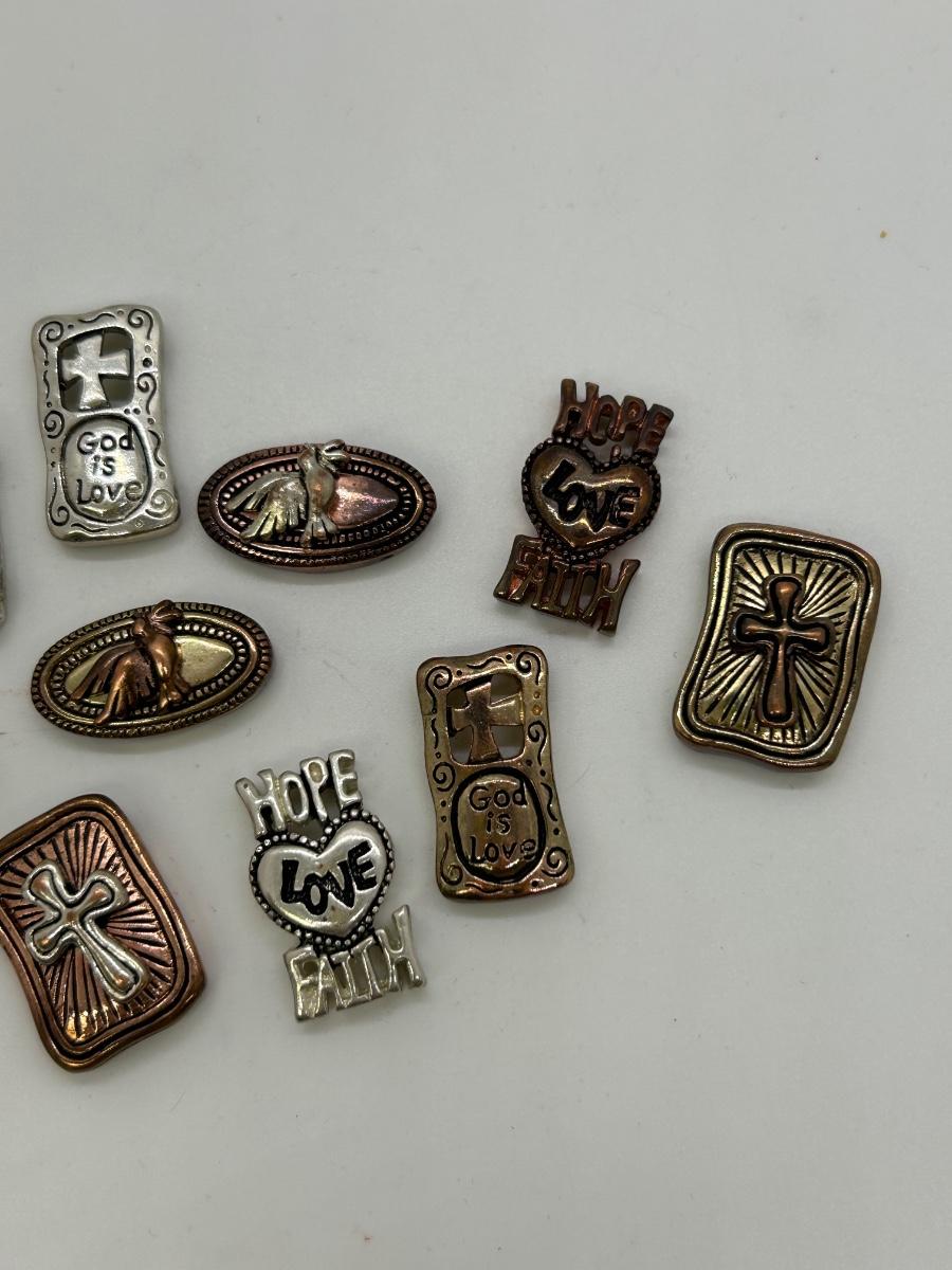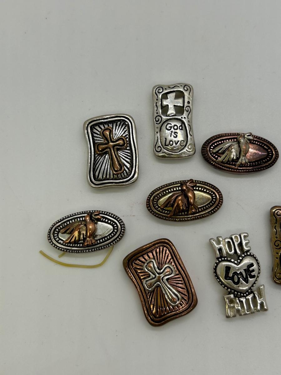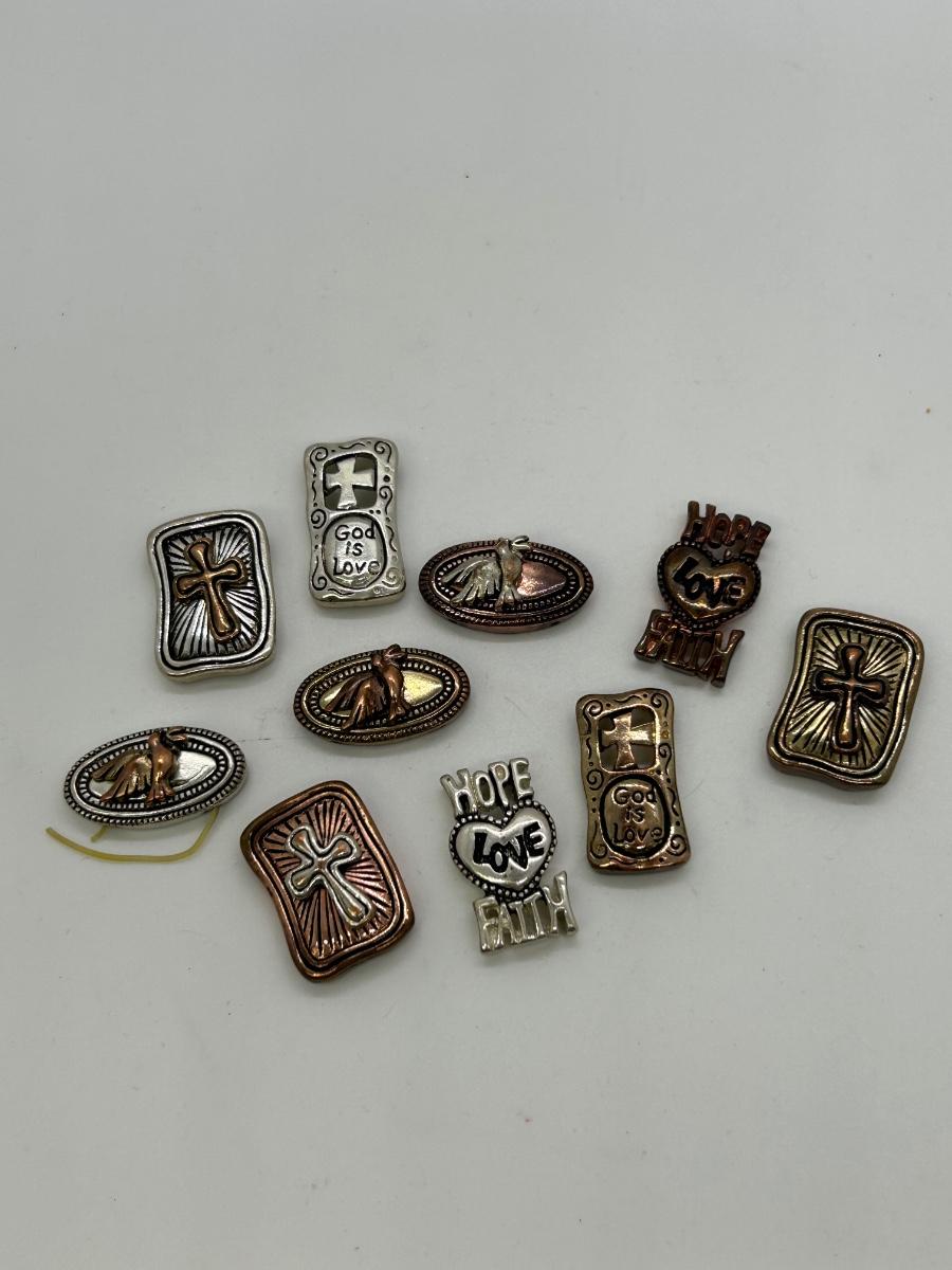 Lot of Mixed Metal Spiritual Themed Beads for Crafts and Jewelry Making. In good condition. Different patterns, in different color variations.